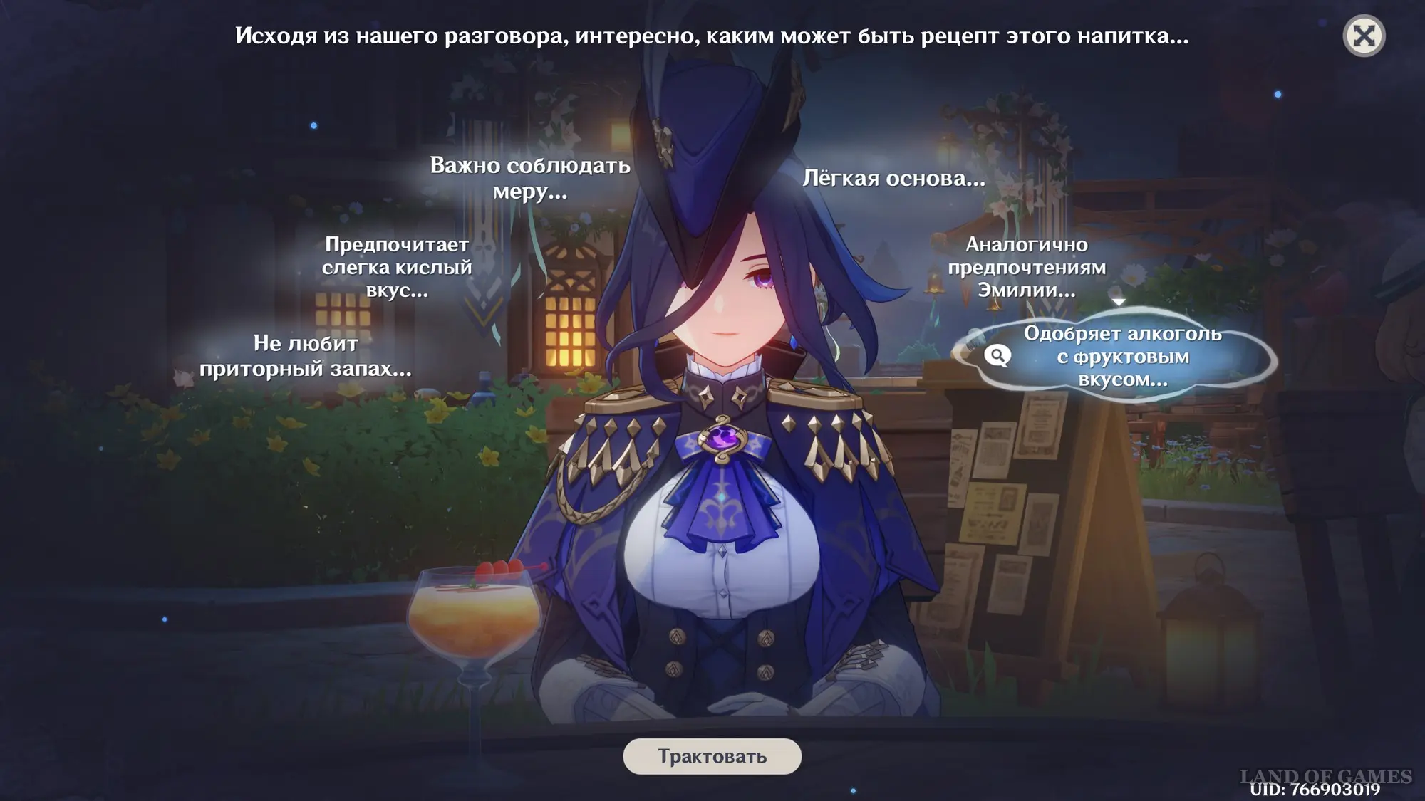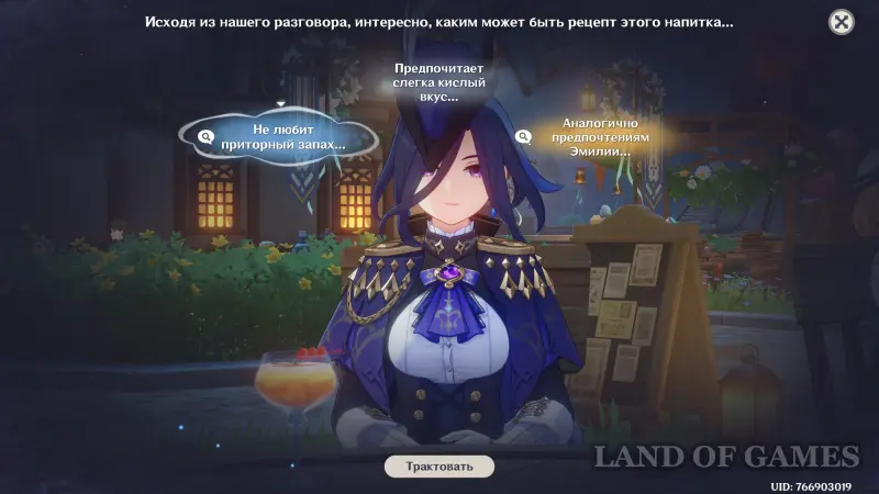 Однако некоторые подсказки не позволят вам получить точные выводы, поэтому их нужно будет сопоставлять с другими подсказками для получения новых вдохновений или тем разговора. Открыв дополнительные идеи, вы сможете изготавливать особые коктейли, способные удовлетворить гостя.