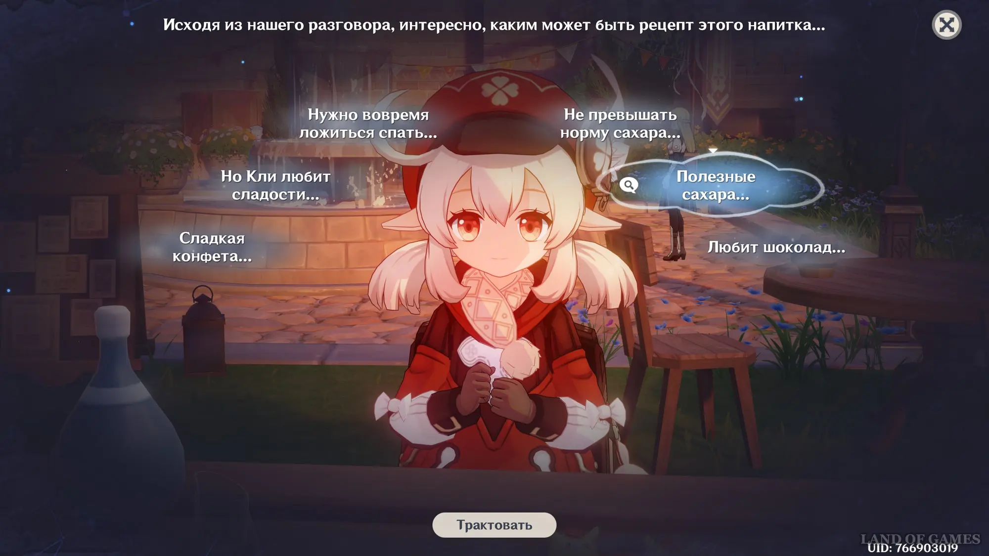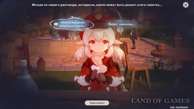 Дайте коктейль Кли, а потом поговорите с ней. Она скажет, что напиток получился отличным, но теперь ей хочется попробовать коктейль, похожий на торт. Для этого нужно разблокировать 4 запроса, сыграв в небольшую мини-игру с поиском и предоставлением выводов.