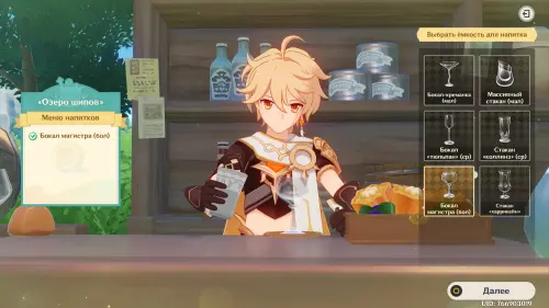 Взаимодействуйте с киоском и примитесь за прохождение второго этапа. Далее возьмитесь за приготовление напитка «Озеро шипов» для Варки: