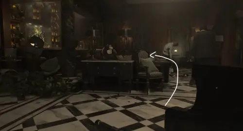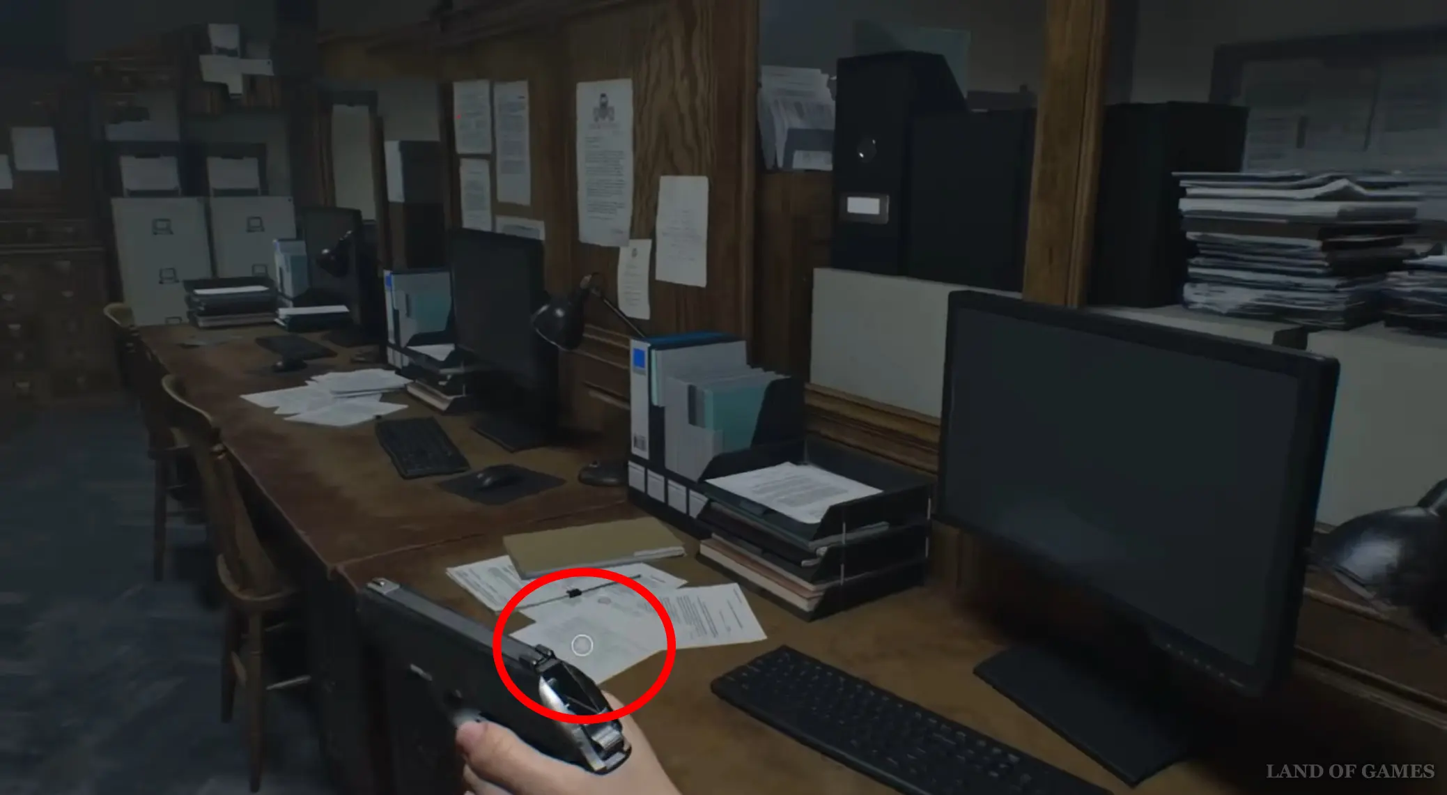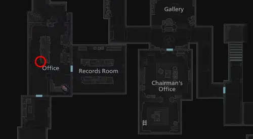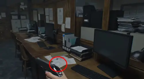 Отметим, что сам код можно отыскать на этом же этаже в локации под названием Офис, которая находится к западу от Архивного отдела. Войдите в комнату и подойдите к столу напротив двойных дверей. Здесь отыщите бумажку, на которой будет указан нужный вам пароль.