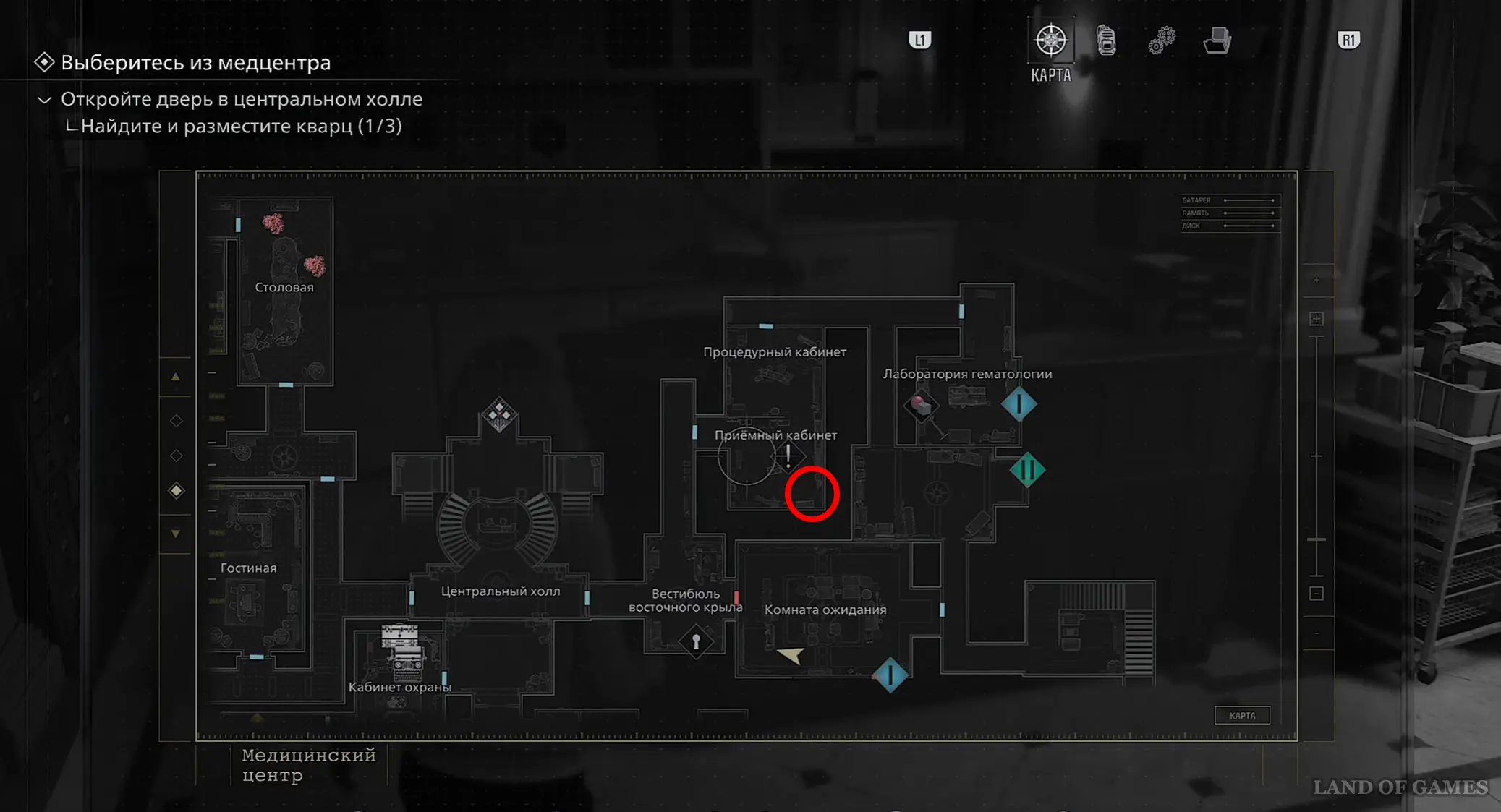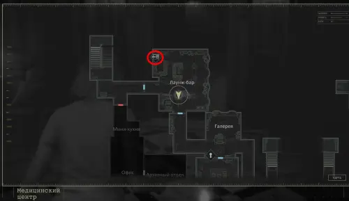 Вы сможете обнаружить его на 2-м этаже Западного крыла Медицинского центра. Вам необходимо будет отправиться сюда для нахождения лунного кварца в кабинете председателя. Будьте осторожны, так как в барной зоне бродит опасная поющая девушка-зомби и два обычных мертвеца. Убивать их необязательно, но желательно, так как с элитного врага выпадает древняя монета.