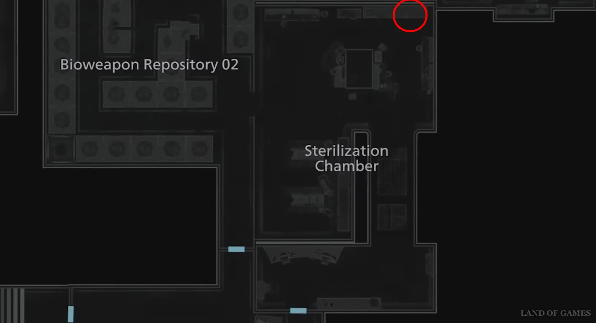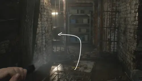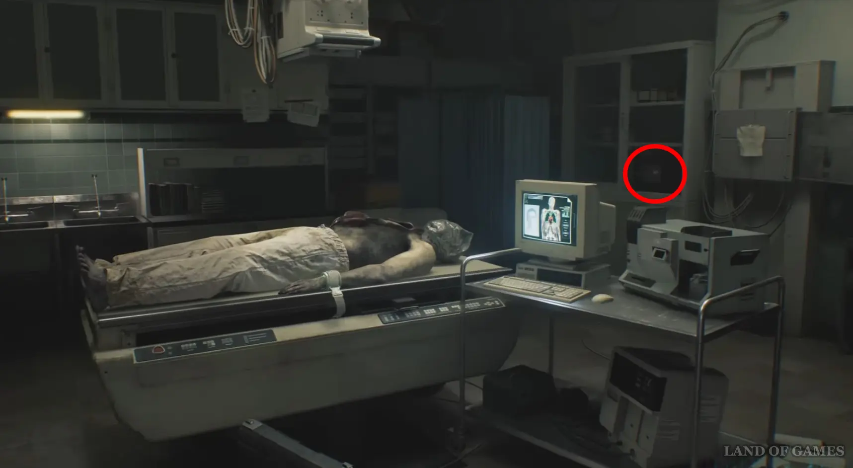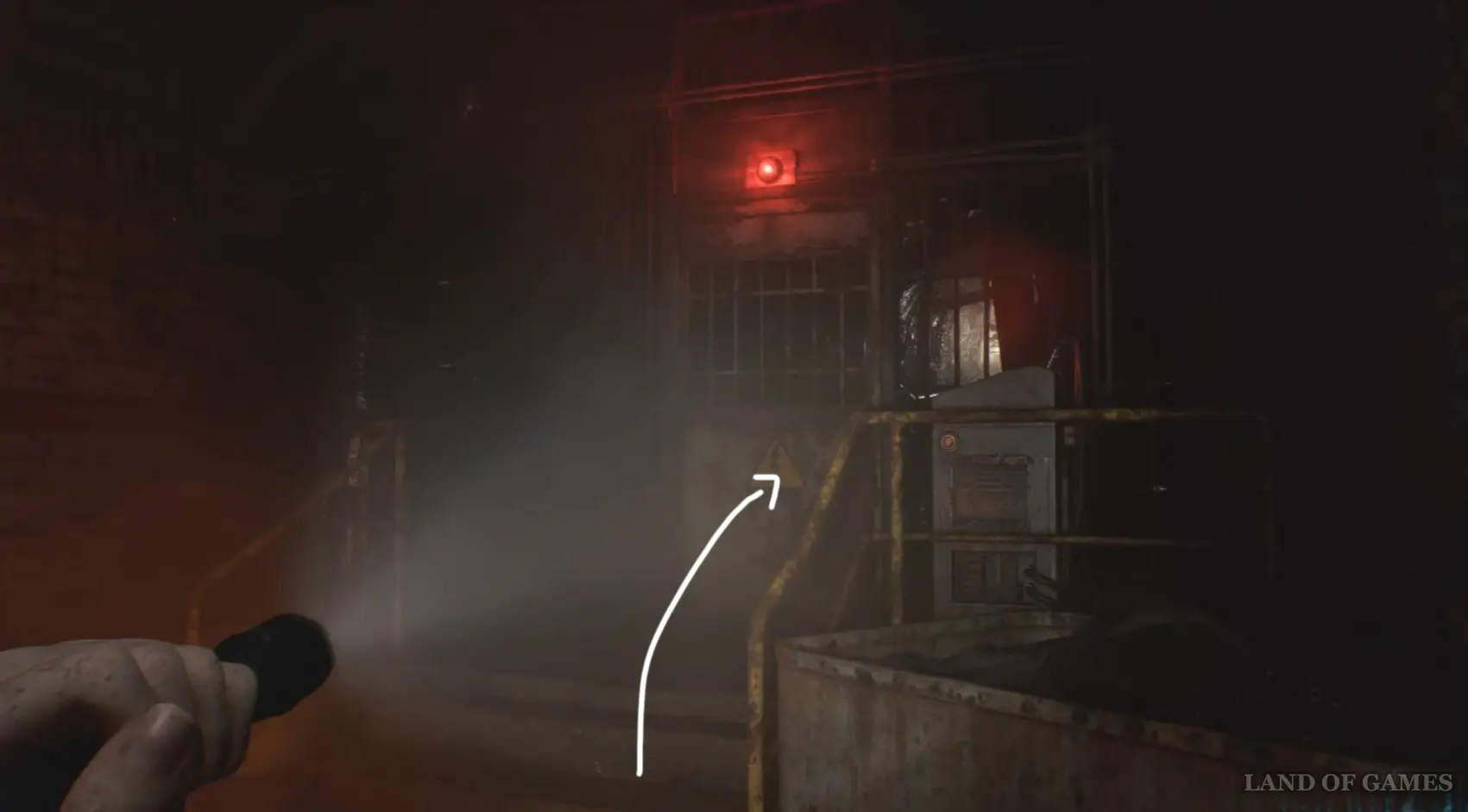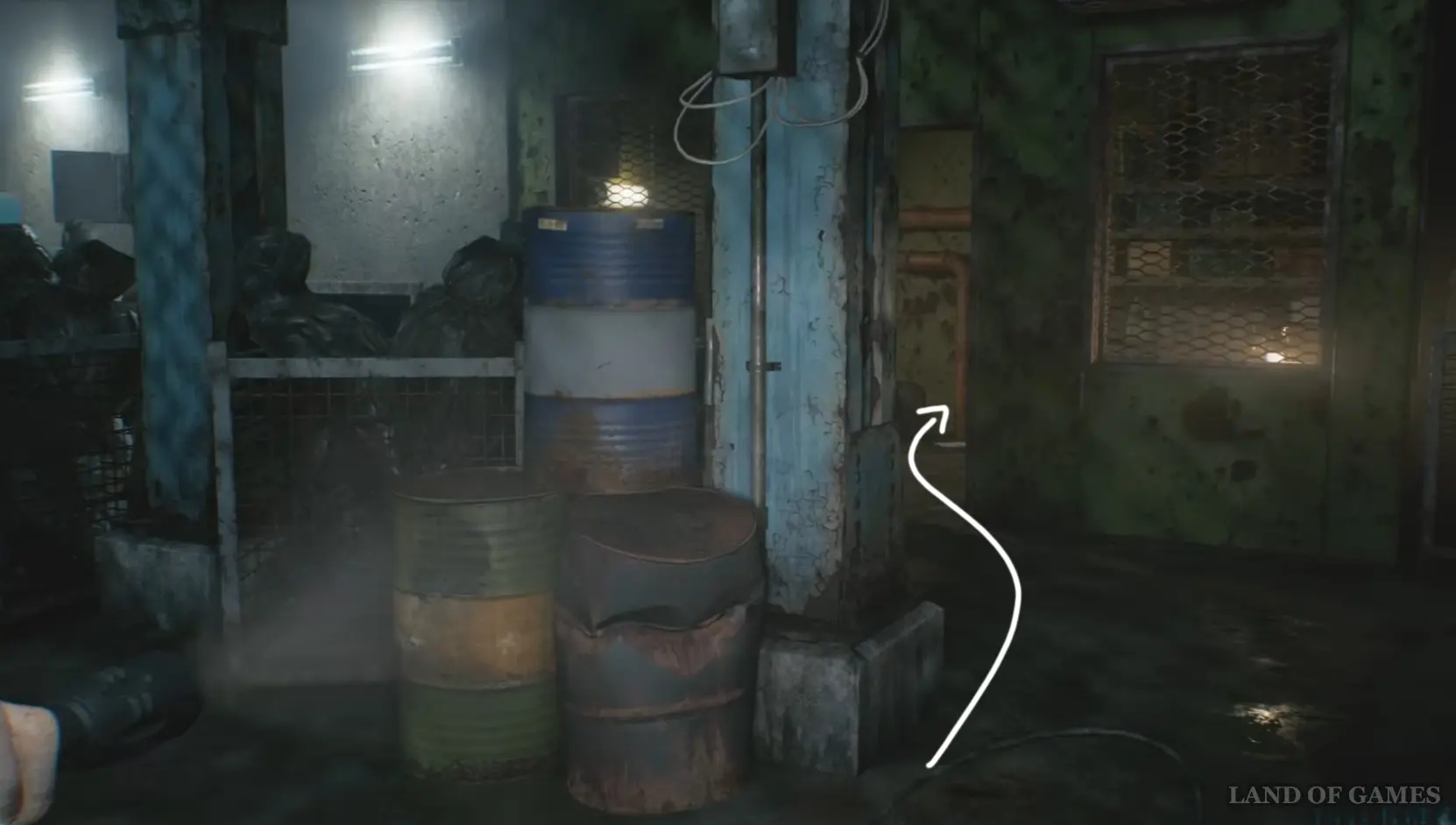 Доберитесь до Ковчега (ARC), играя за Грейс, и пройдите во вход в лабораторию с точкой сохранения. Затем сверните вправо, идите через дверь и двигайтесь до конца комнаты, чтобы повернуть в левый проход. Здесь вы впервые столкнетесь с лизуном. Пригнитесь, обойдите монстра и дойдите до сейфа, стоящего на столе.