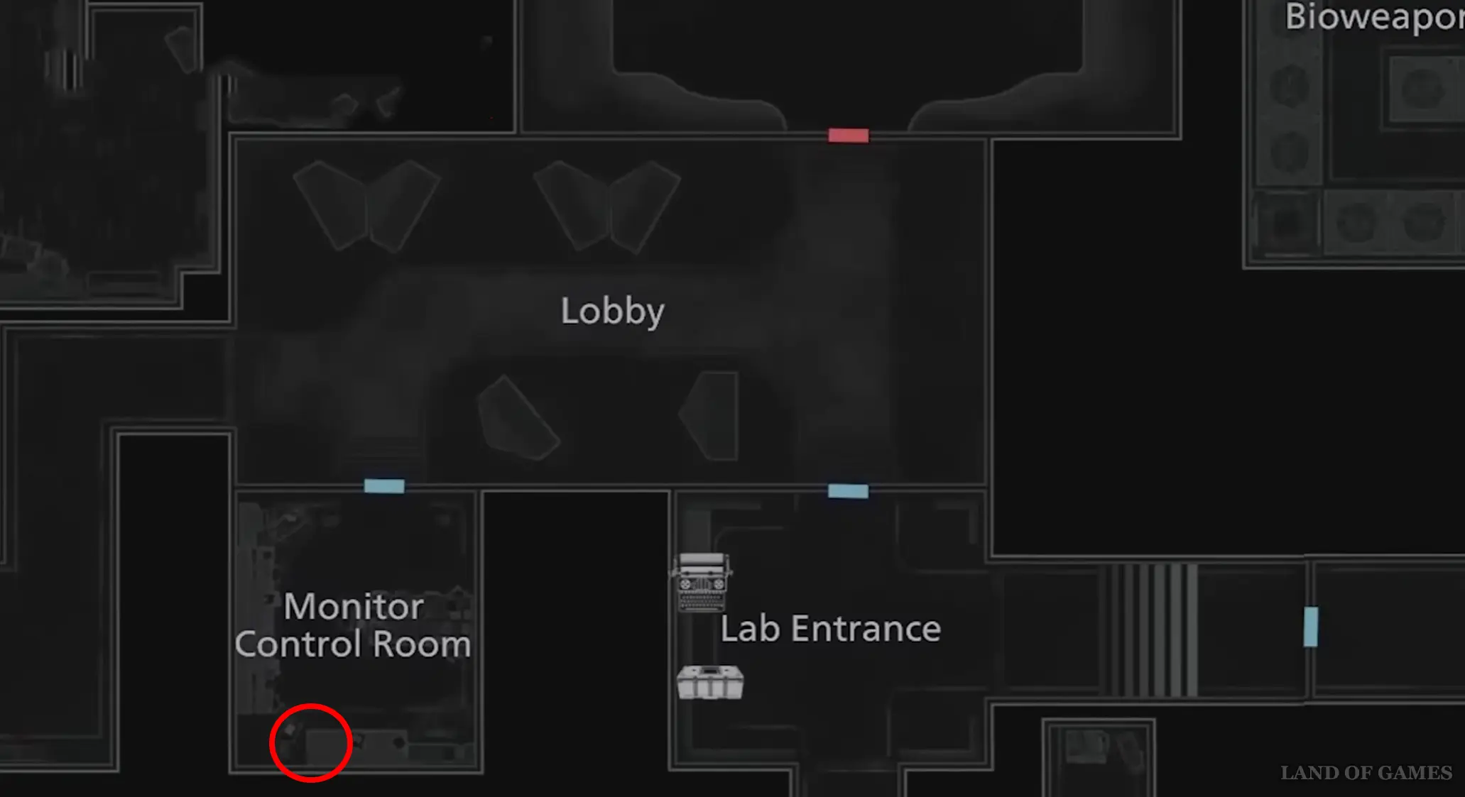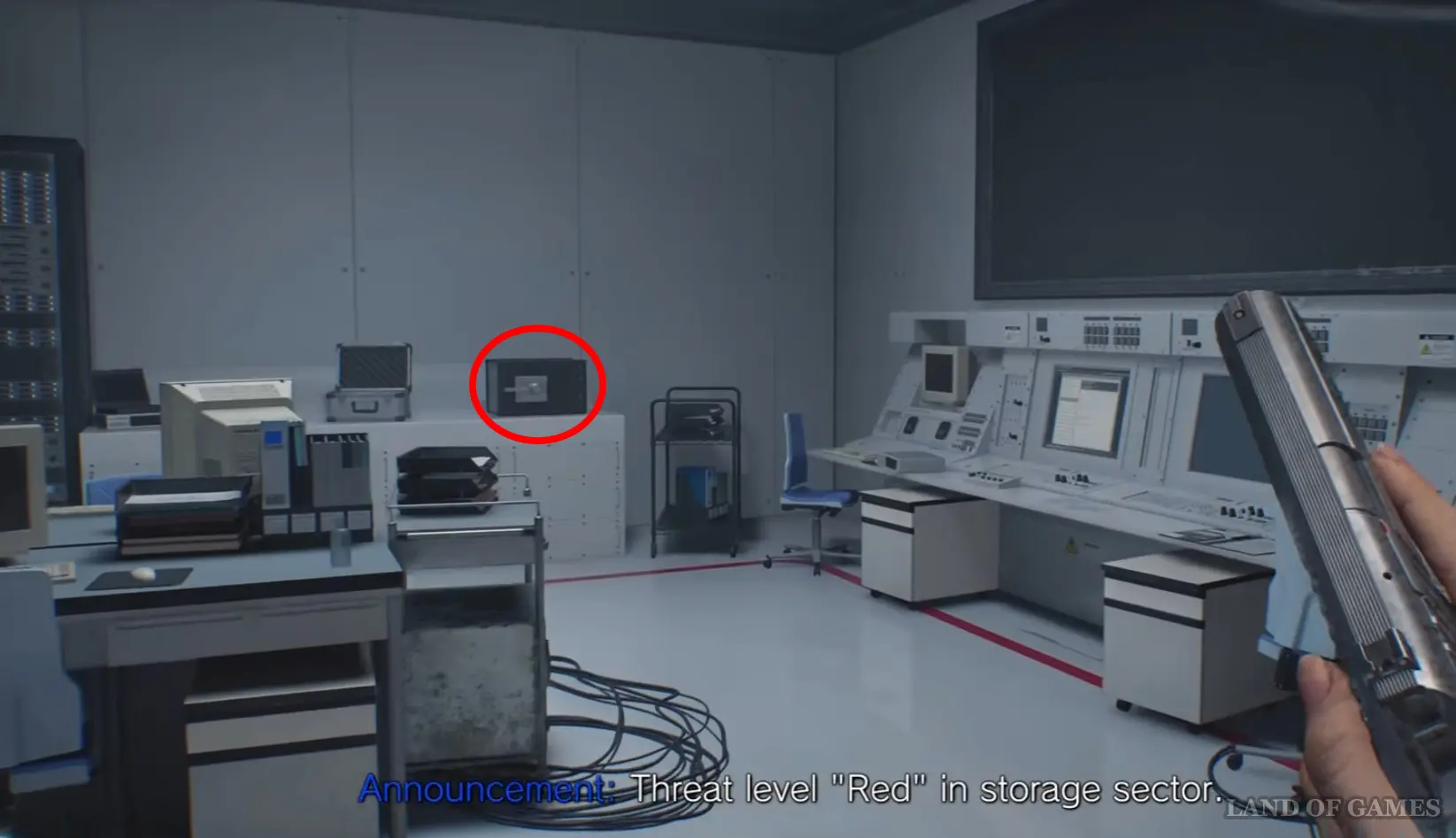 От предыдущего сейфа возвратитесь назад к входу в лабораторию, а затем пройдите через дверь на севере и войдите в лобби, а оттуда уже двигайтесь в Центральную комнату наблюдения, войдя в дверь с левой стороны. Прямо напротив входа вы увидите сейф, который будет стоять на столе.