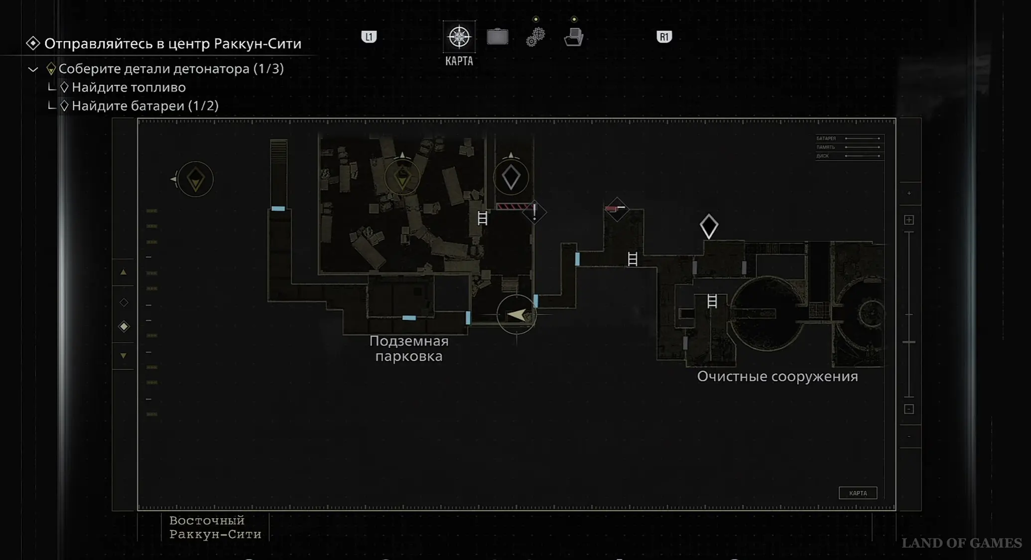 Продвигайтесь по сюжету, пока не доберетесь до Подземной парковки, где обнаружите затопленные ворота с панелью на стене, для активации которой вам потребуются две батареи. Одна из них спрятана в северо-западном углу парковки, а вторая – в Очистных сооружениях. Найдя обе, вставьте их в электрощиток и откройте врата.