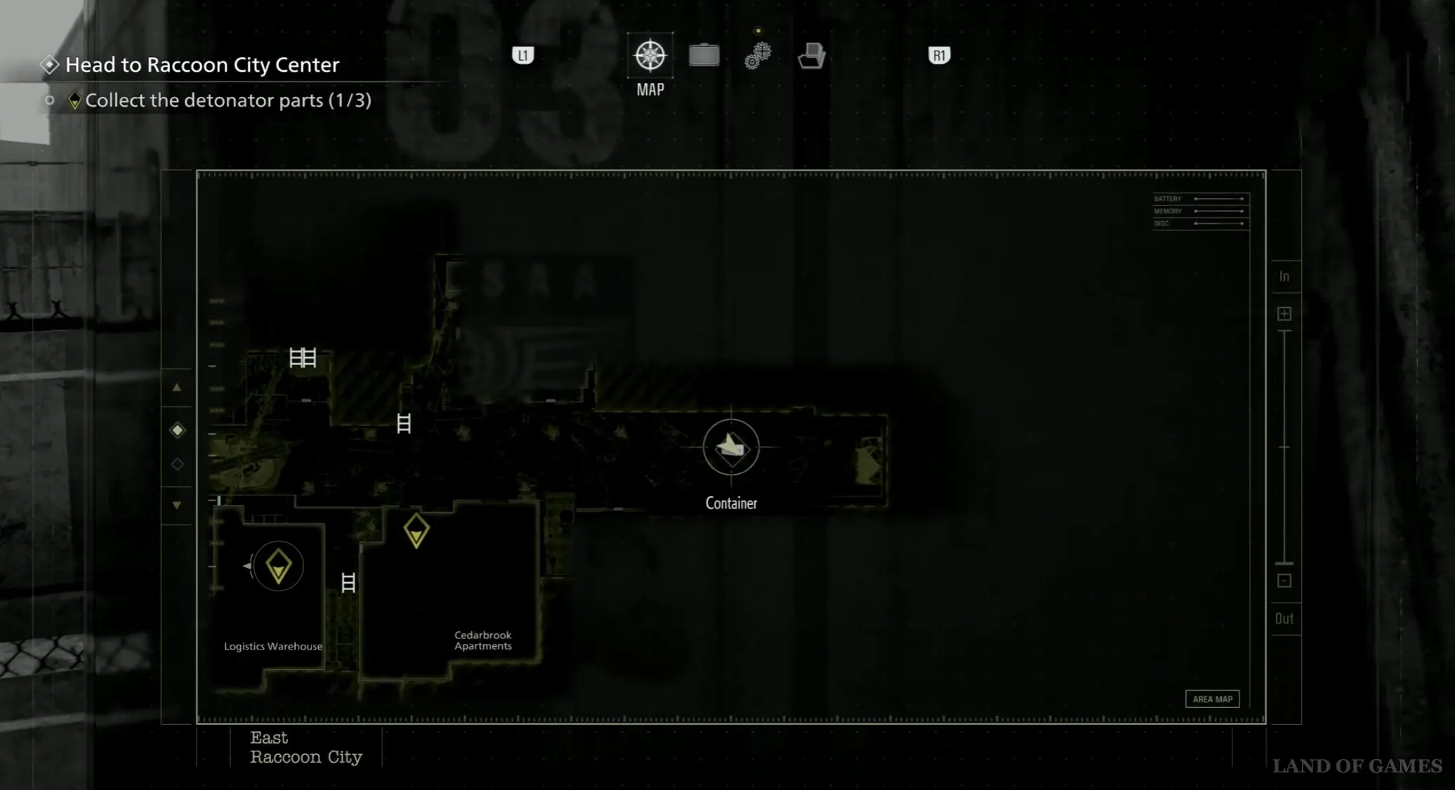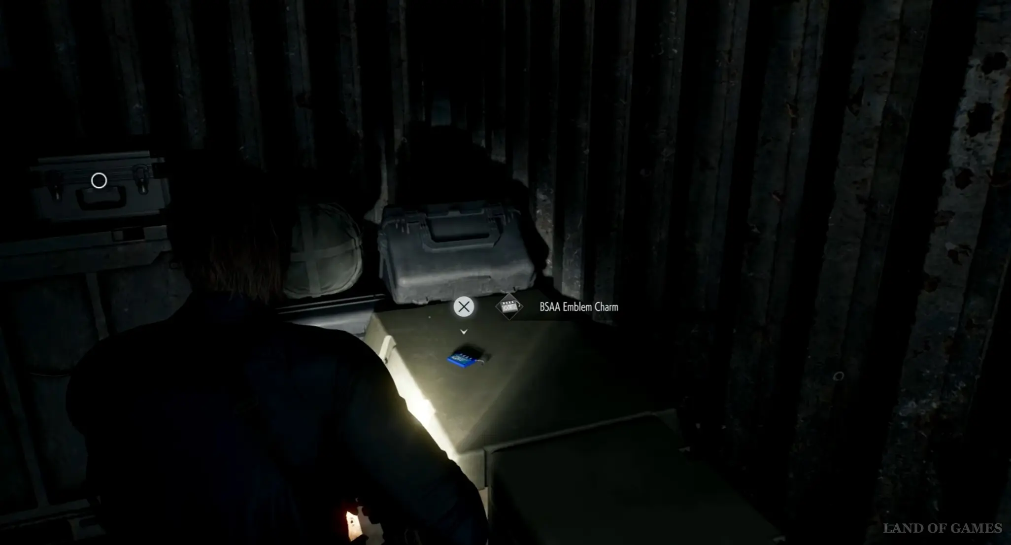Начните идти вдоль станции на восток, пока не найдете лестницу, ведущую на поверхность. Выйдите наружу, а потом сверните влево и идите вперед до самого конца. Вдалеке вы сразу же увидите очередной синий контейнер. Откройте его с помощью ключика и отыщите внутри амулет BSAA Emblem и модуль слежения (легендарный).