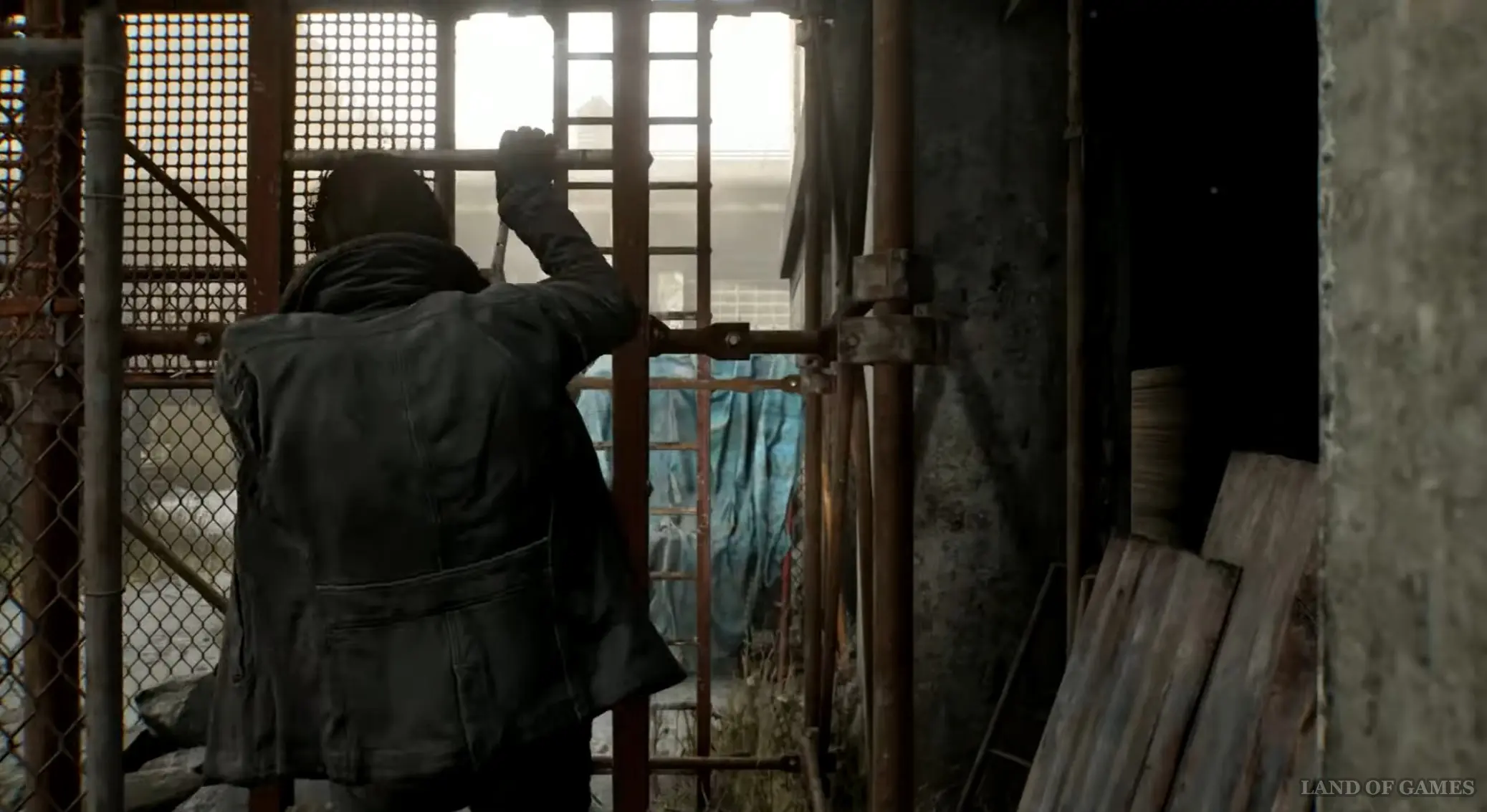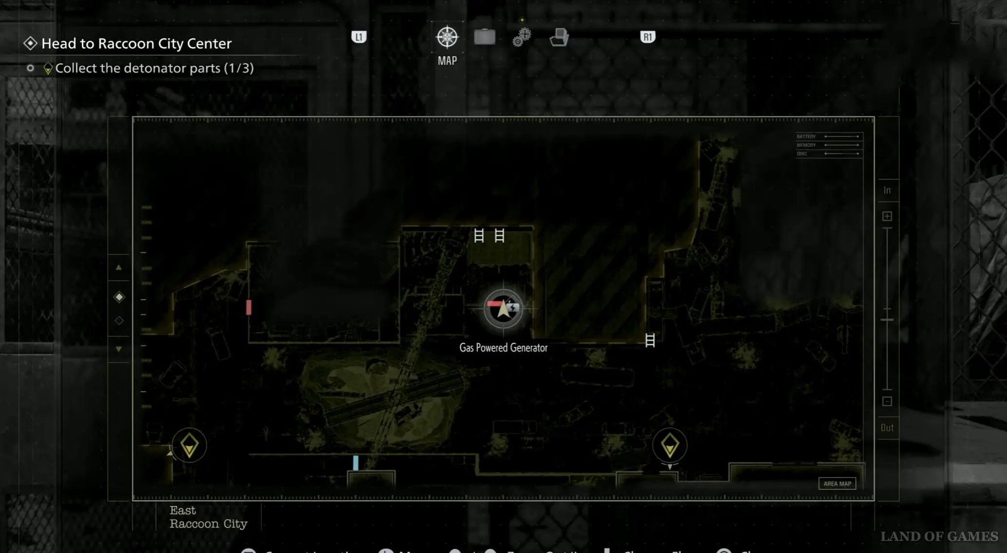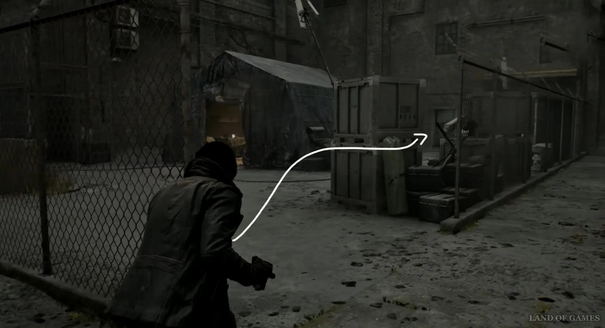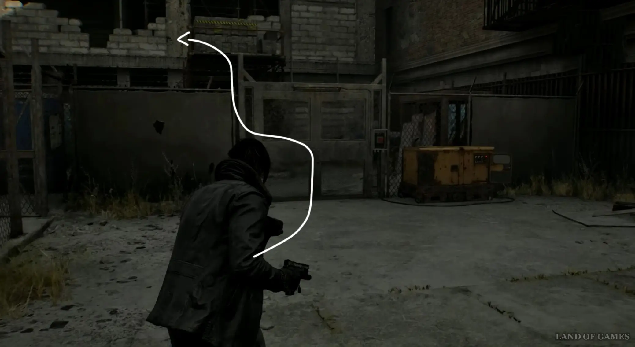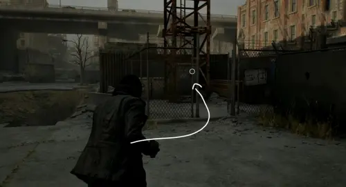 От прошлого контейнера возвратитесь назад к главной дороге, снова пройдя по импровизированному мосту, а затем тут же сверните влево, и вы найдете здесь генератор, который нужно заправить топливом (канистру с бензином можно найти на заправке, расположенной чуть к востоку). Открыв ворота, пройдите внутрь и взберитесь наверх по лесенке слева.