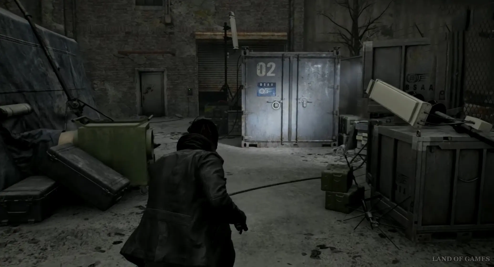 Поднимитесь наверх и выйдите наружу, а затем поверните влево и подойдите к трупам бойцов BSAA, лежащим рядом с автомобилем, для запуска новой кат-сцены. В рамках нее вы получите ключ от контейнеров BSAA, с помощью которого сможете открывать нужные вам хранилища. Так что можете теперь заняться их поиском.