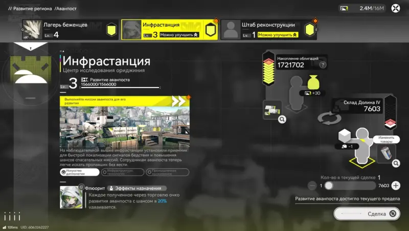 - Награда: повышает уровень аванпоста