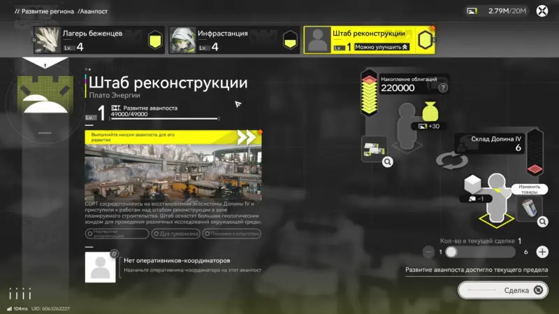 - Требования: пройдите побочный квест «Аванпост: штаб реконструкции 1».