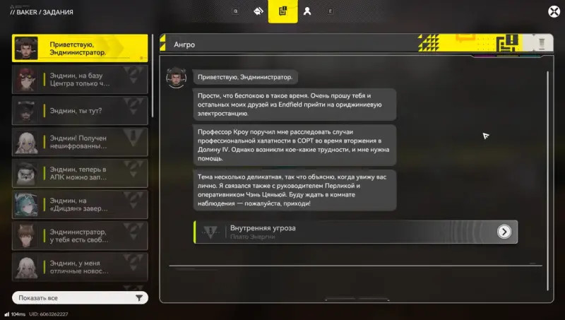 - Как начать: прочтите сообщение от нового агента «Эриксона».