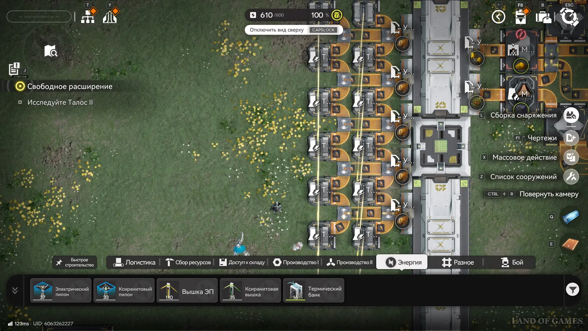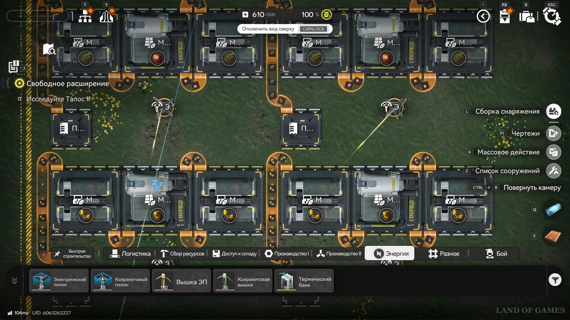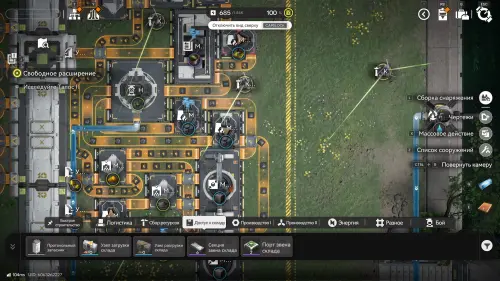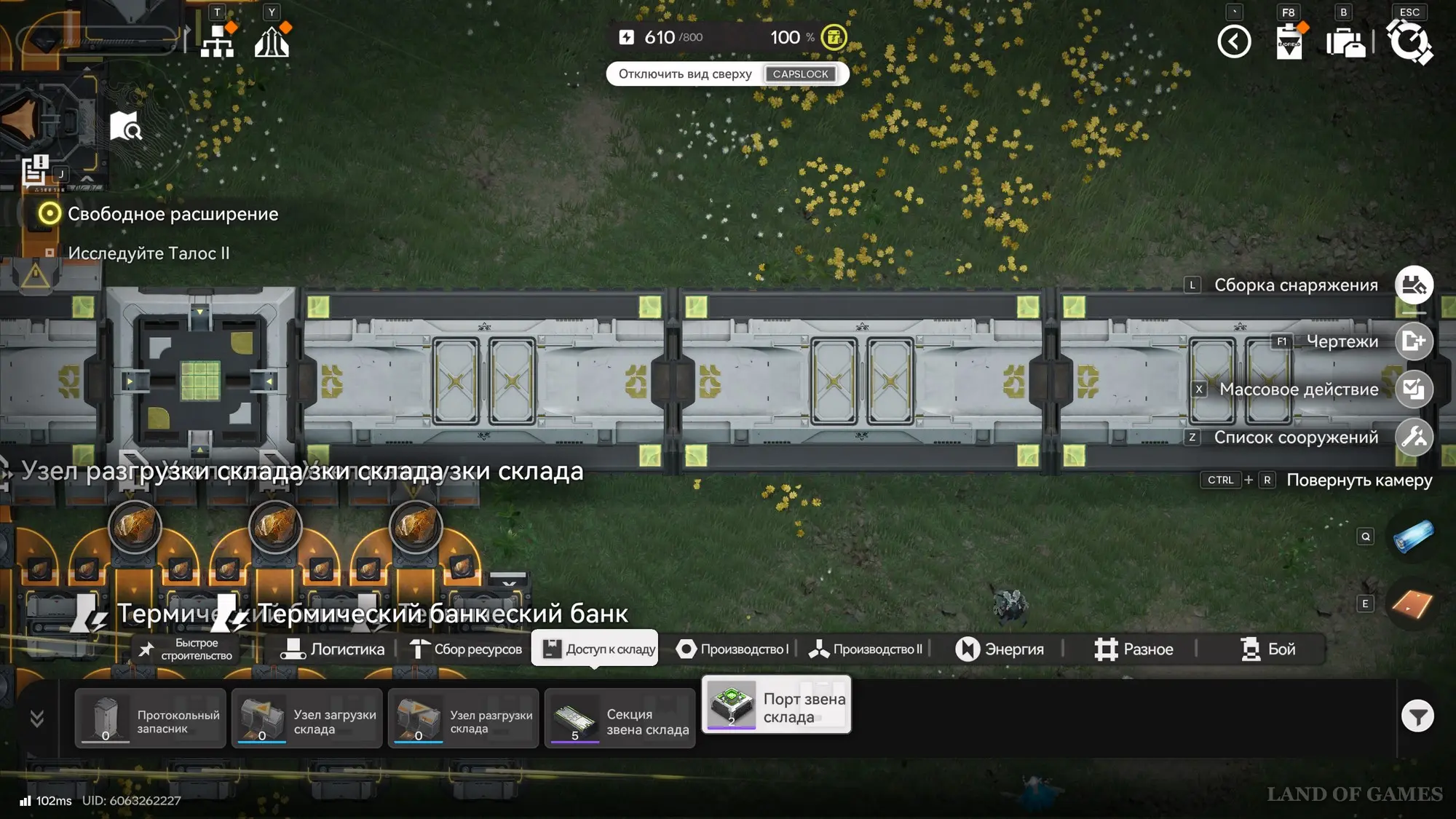 Заранее отметим, что данная конвейерная линия требует много свободного пространства и энергии, поэтому позаботьтесь о выработке большего количества электричества и расширении ключевой зоны АПК. Выполнив все условия, выберите соответствующую схему в разделе чертежей, а потом разместите производственный комплекс рядом со звеном склада и рекой, как показано на скриншоте ниже.