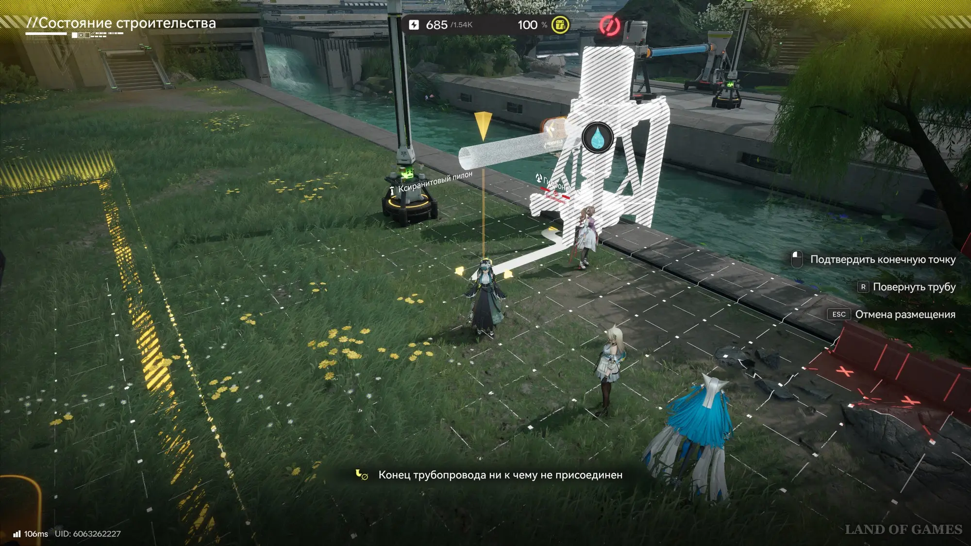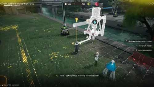 Однако это еще не все, ведь вам нужно также снабдить конвейер водой. Для этого снова подойдите к реке и проложите трубопровод от гидронасоса к трубе возле небесной кузницы, как показано на скриншотах выше.