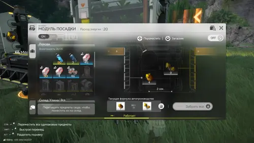 Речь идет об полностью автономной производственной цепочке, которая основывается на использовании узлов разгрузки склада (позволяет дистанционно брать нужное сырье с блока автоматизации) и протокольного запасника, который телепортирует созданные изделия на склад. Подробнее об этих технологиях мы уже рассказывали в прохождении квеста «Управляющий АПК».