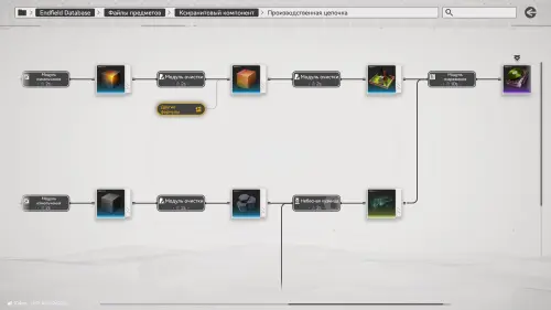 Вначале давайте взглянем на производственную цепочку ксиранитового компонента. На первый взгляд она может показаться весьма громоздкой и сложной, однако на деле все довольно легко: нижняя часть связана с изготовлением ксиранита, что мы уже изучили ранее, а верхняя – с созданием уплотненной ориджеоды, которую мы рассмотрели в гайде по кристоновым компонентам. Так что сразу переходим к непосредственно самому производству.