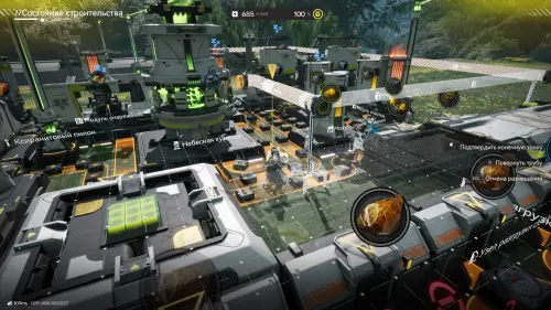 В случае отсутствия нужных модулей, вся схема будет размещена в виде голограммы. Подойдите к ней и взаимодействуйте, а затем посмотрите, каких сооружений вам не хватает. Нажмите на кнопку «Строительство» и постройте недостающие элементы. Далее вернитесь в прошлое меню и нажмите на надпись «Отправить все».
