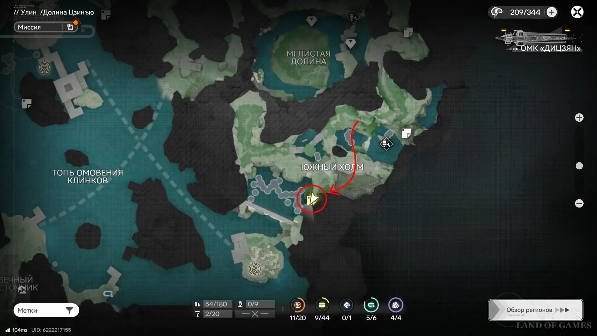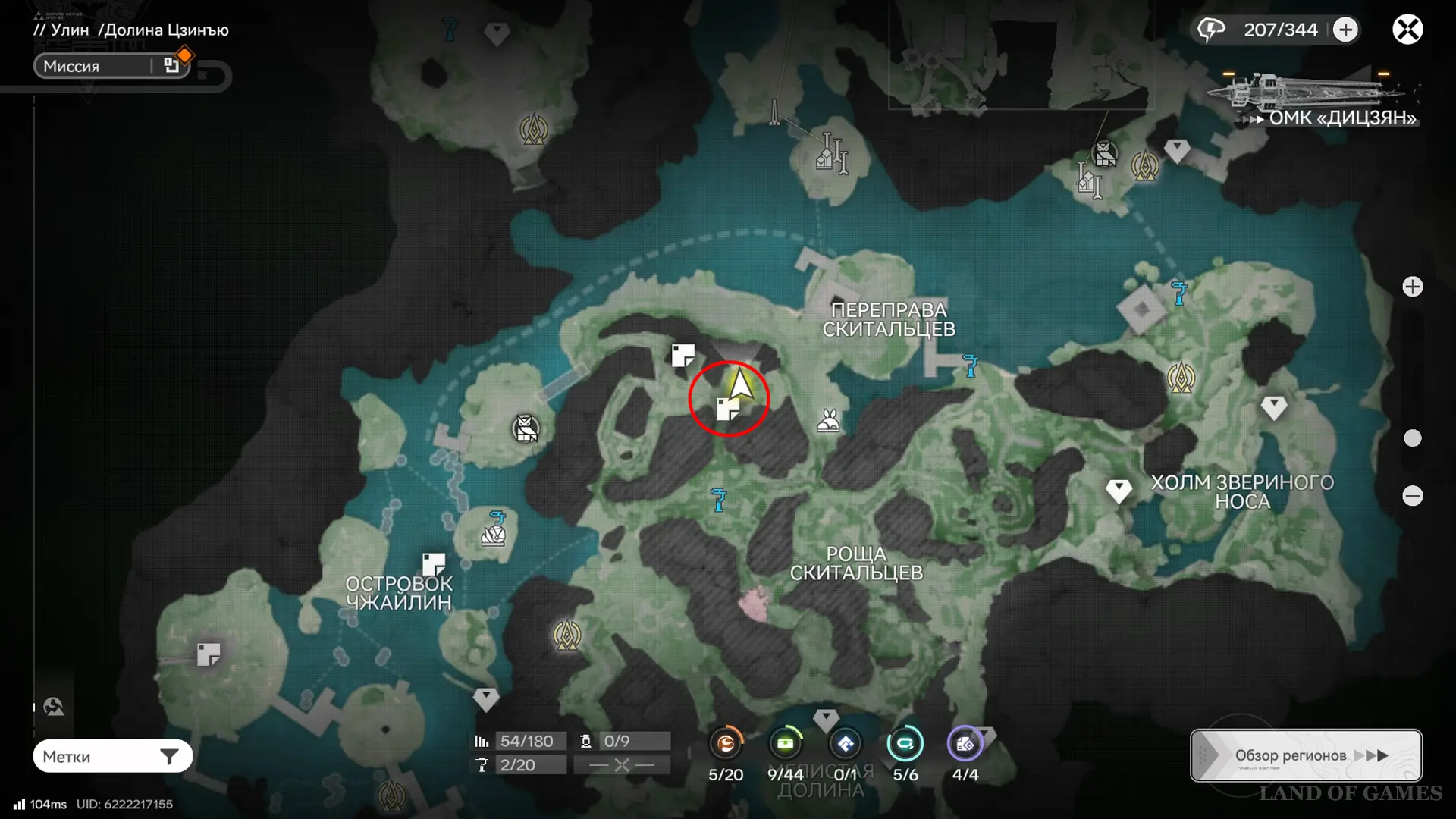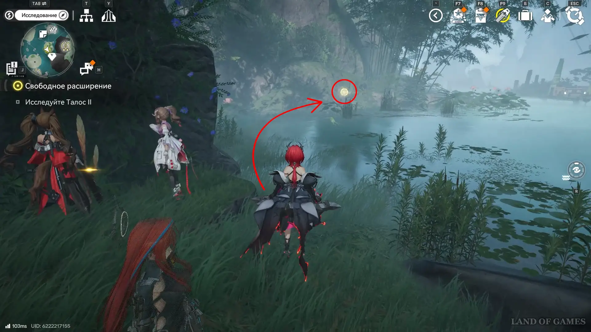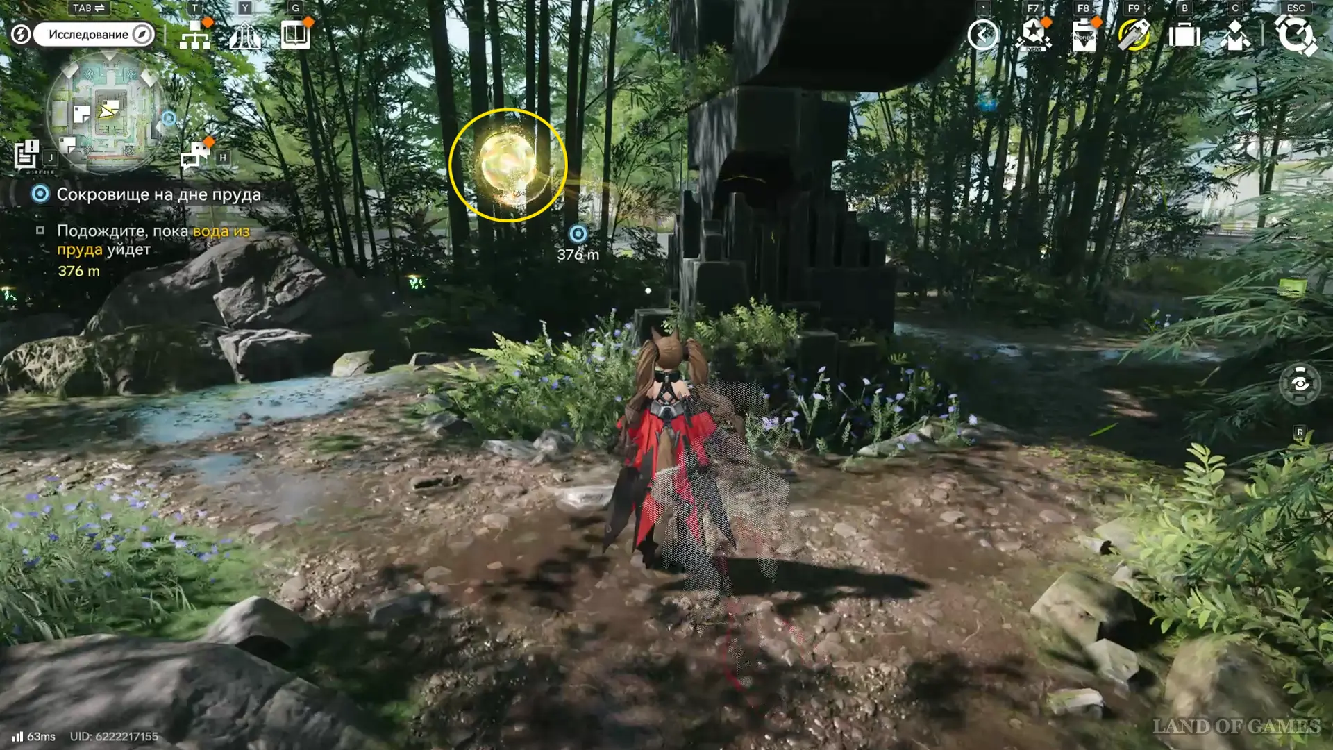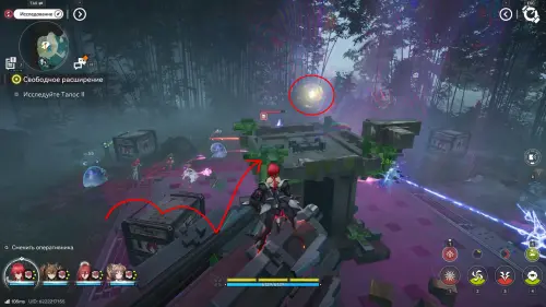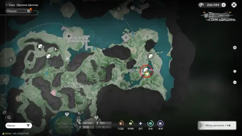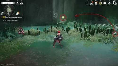 Следующая сфера находится недалеко от телепорта на севере долины Цзинъю: двигайтесь в сторону аванпоста и сверните к участку между камышами и бамбуком, а после просканируйте область.