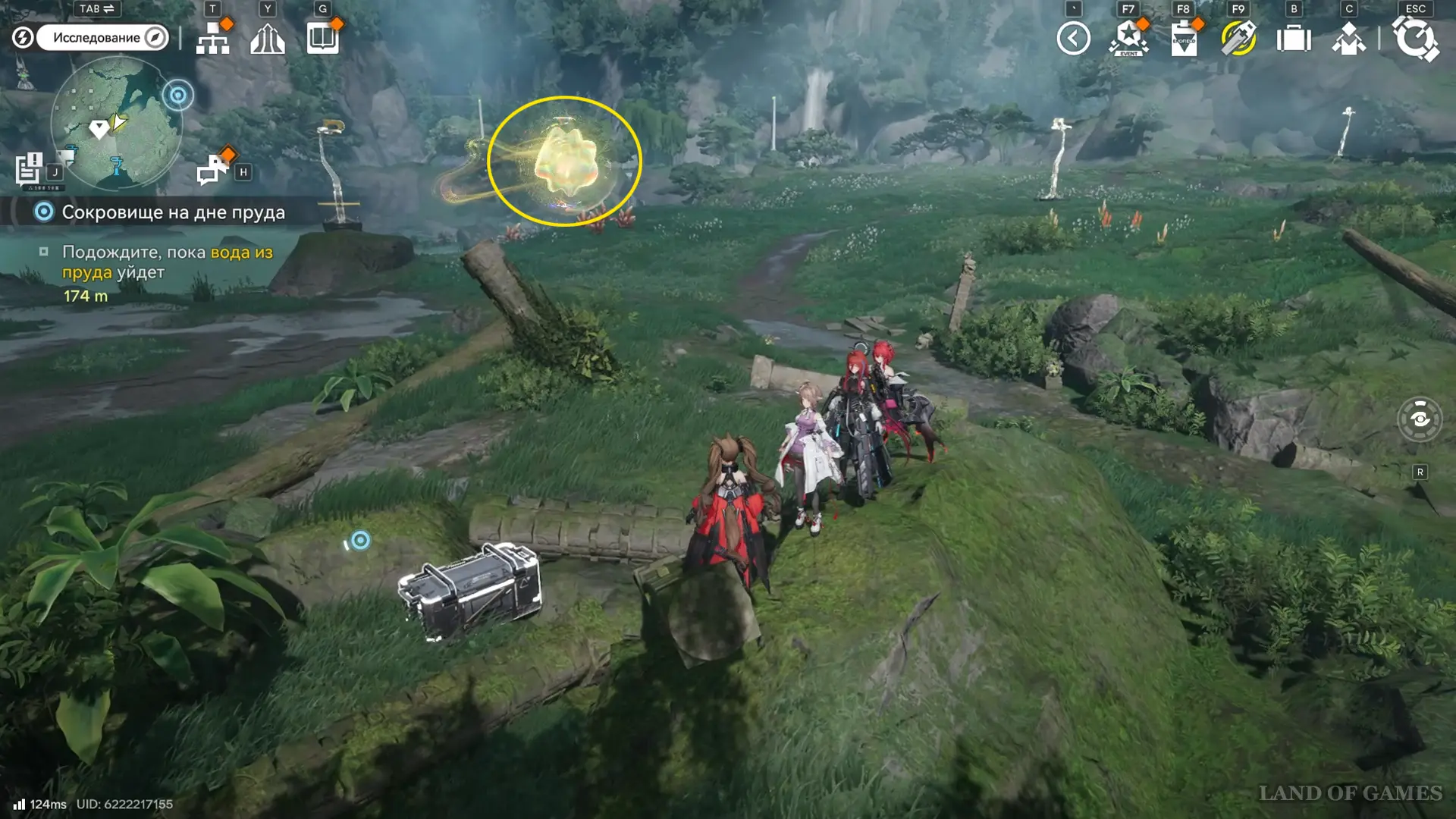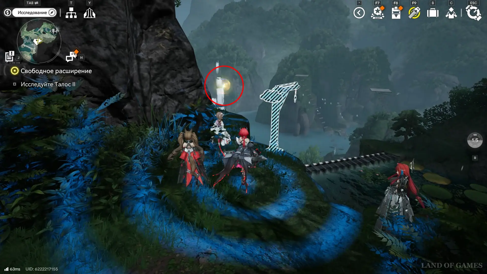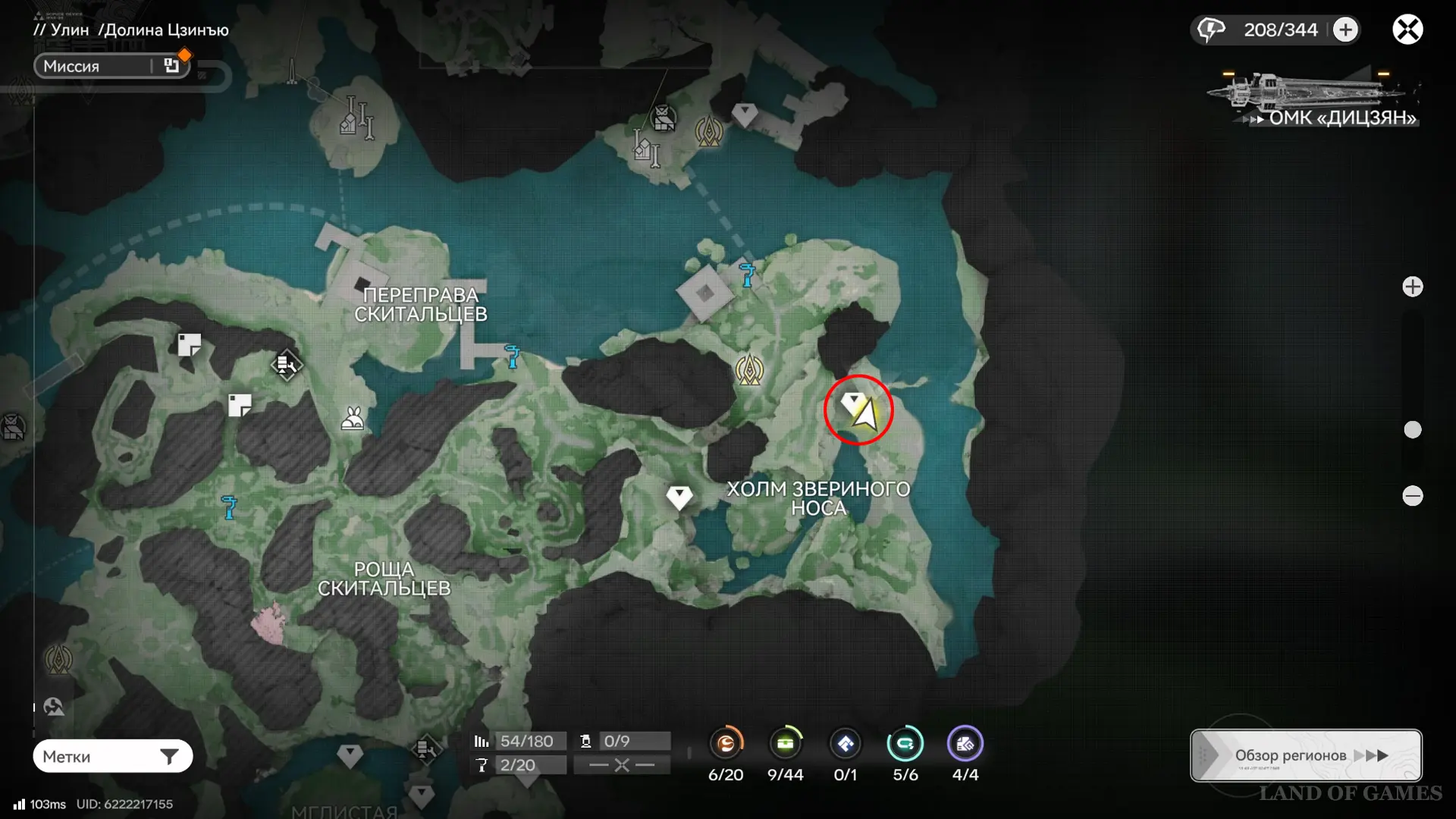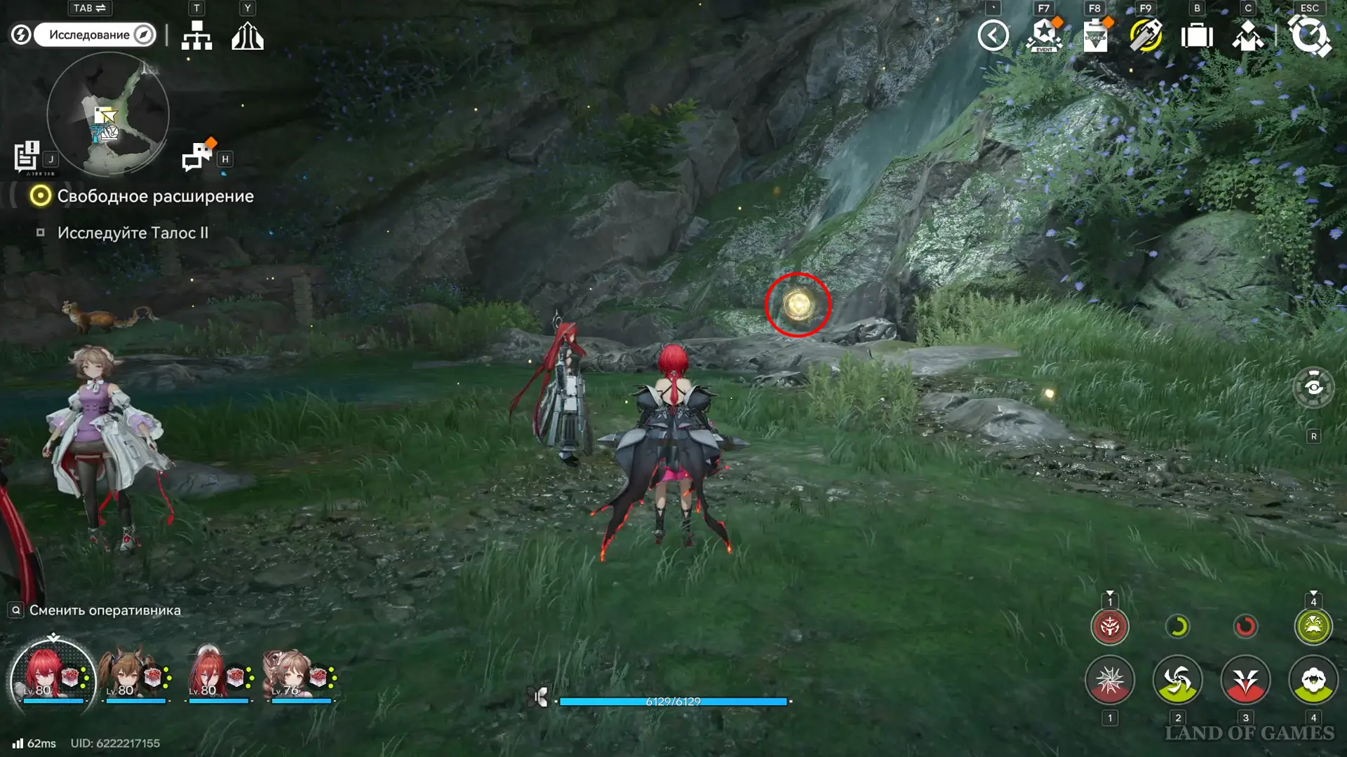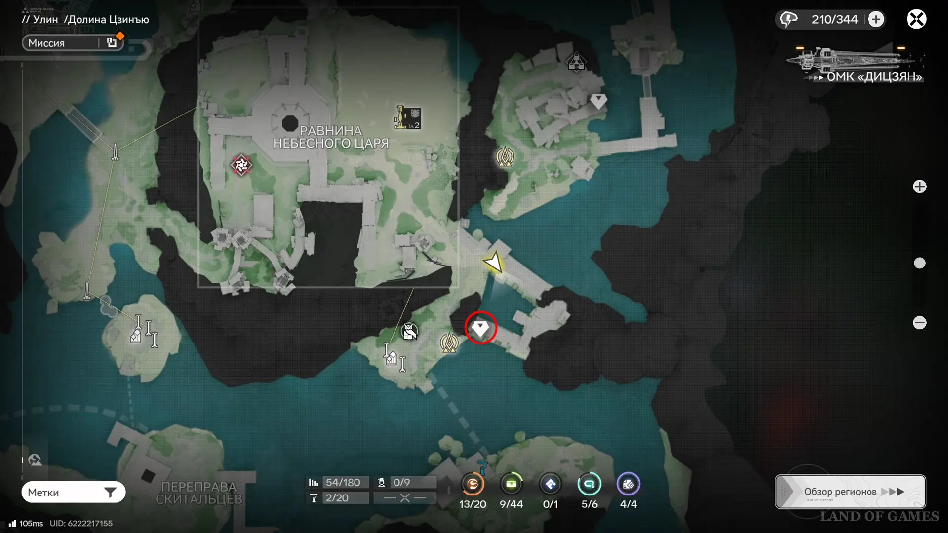 Следующая сфера находится недалеко от телепорта на севере долины Цзинъю: двигайтесь в сторону аванпоста и сверните к участку между камышами и бамбуком, а после просканируйте область.