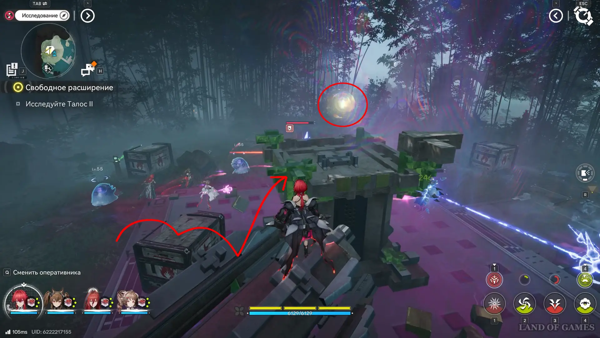 Пятый получится забрать на поляне к юго-западу от островка Чжайлин: попав сюда, используйте ящики, чтобы подняться на упавшую колонну, а с нее – к сфере в центре арены с монстрами.