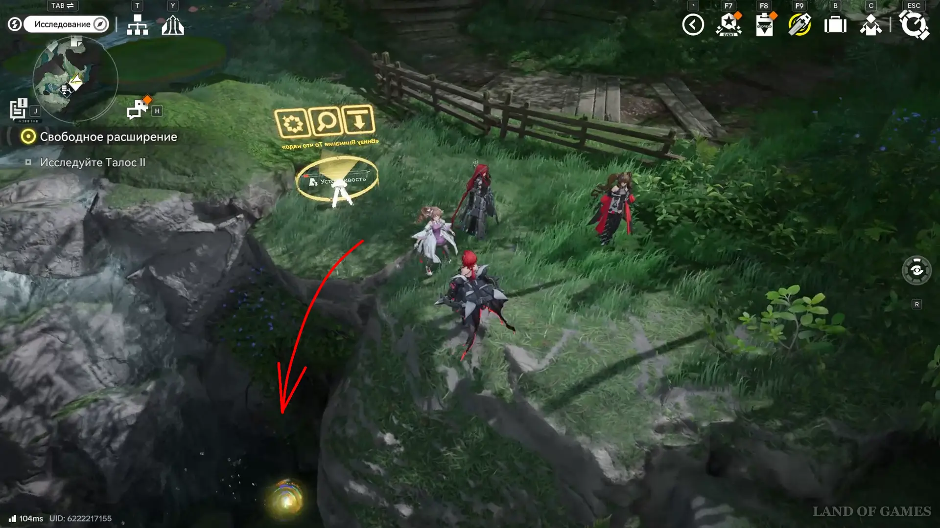Получив 10-ю сферу, поднимитесь по тропе на запад, а затем проберитесь по кувшинкам (слева от подъема) к батуту – так получится попасть в сквозную пещеру, путь через которую выведет к вертикальному зиплайну и аурилену.