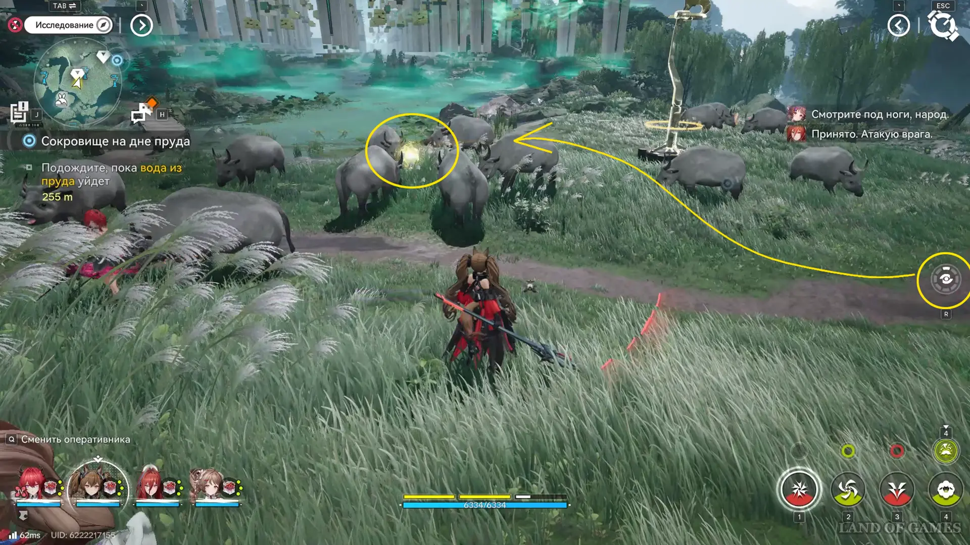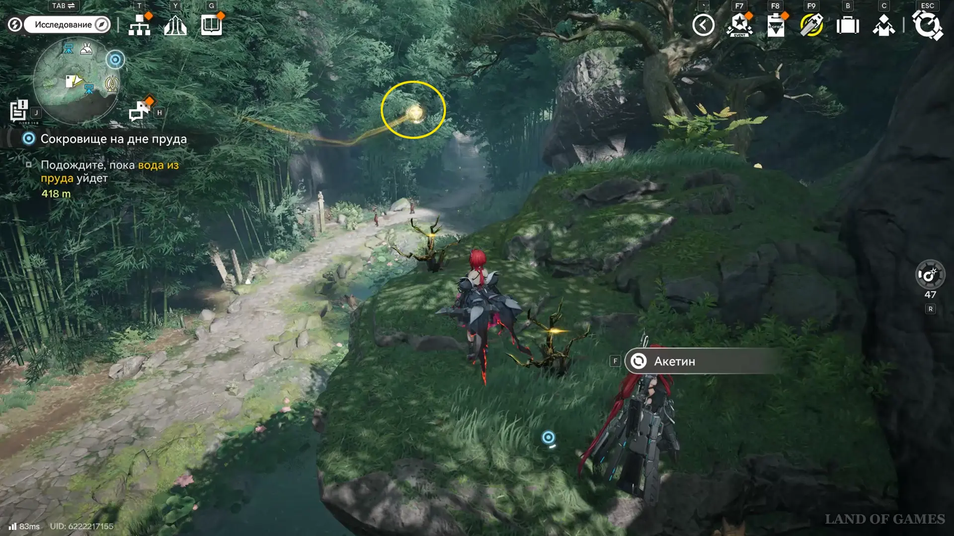 От прошлого трофея двигаемся направо, а затем в сторону переправы – второй аурилен парит в инвизе около выгнутого дерева.