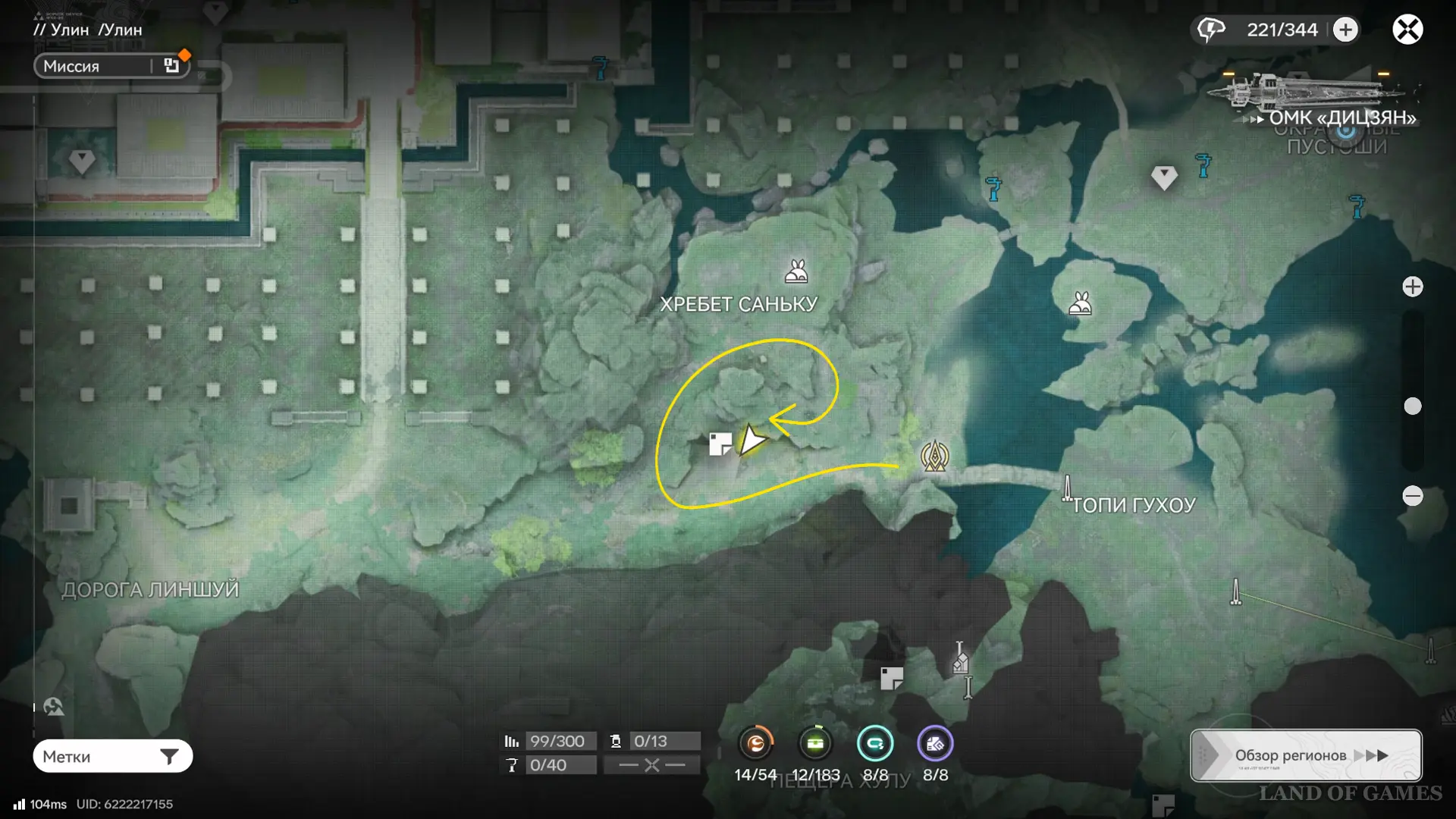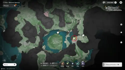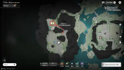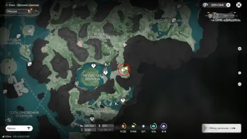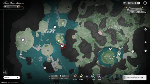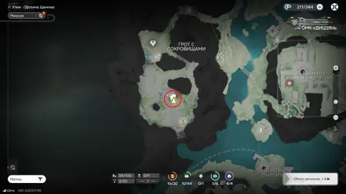 Переместитесь к ТП на западе топи Гухоу, следуйте по тропе и поднимитесь к Хребту Саньку. От редкого месторождения сверните вправо и пройдите вдоль края скалы к отмеченной на карте точке — там можно подобрать парящую сверху сферу.
