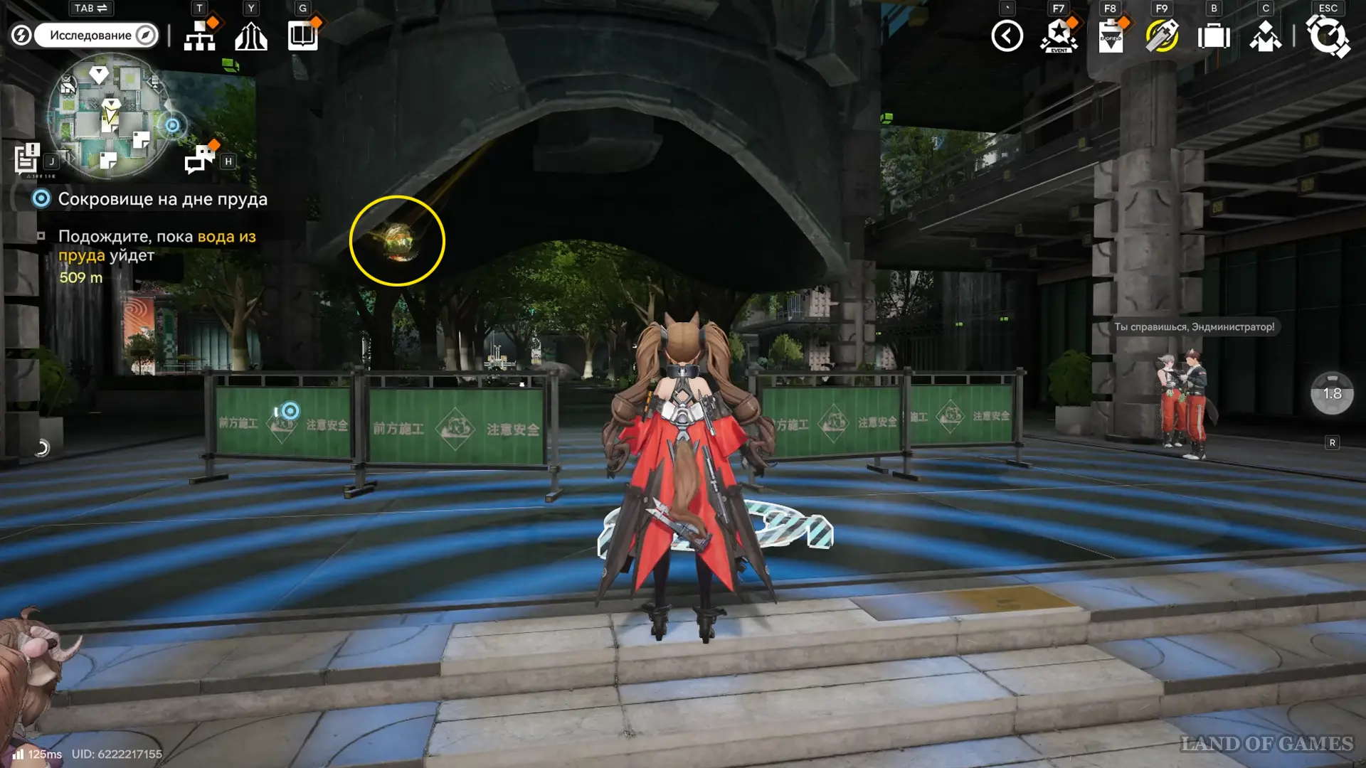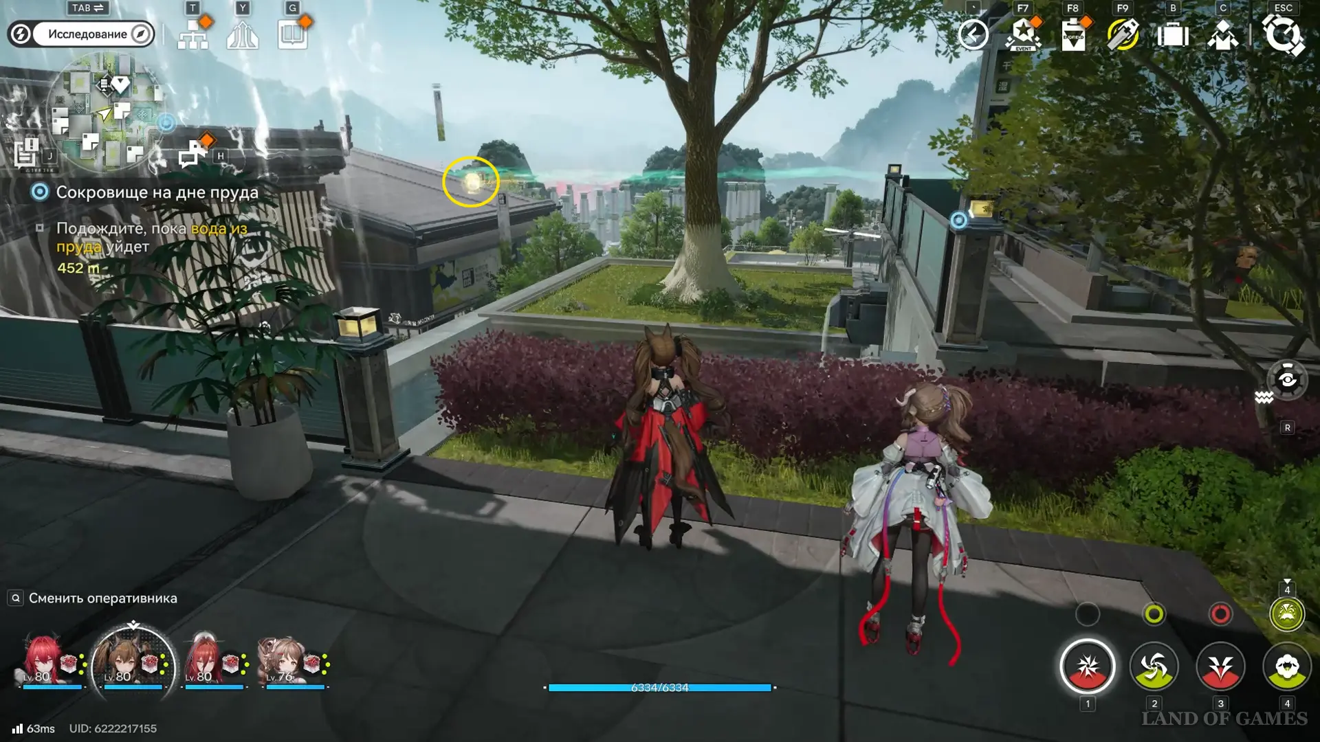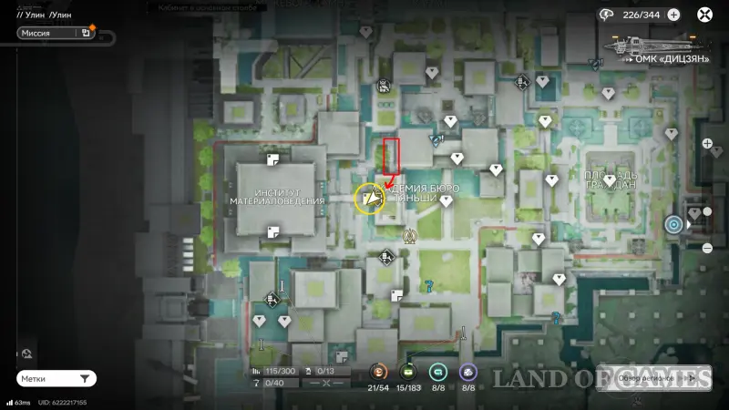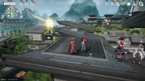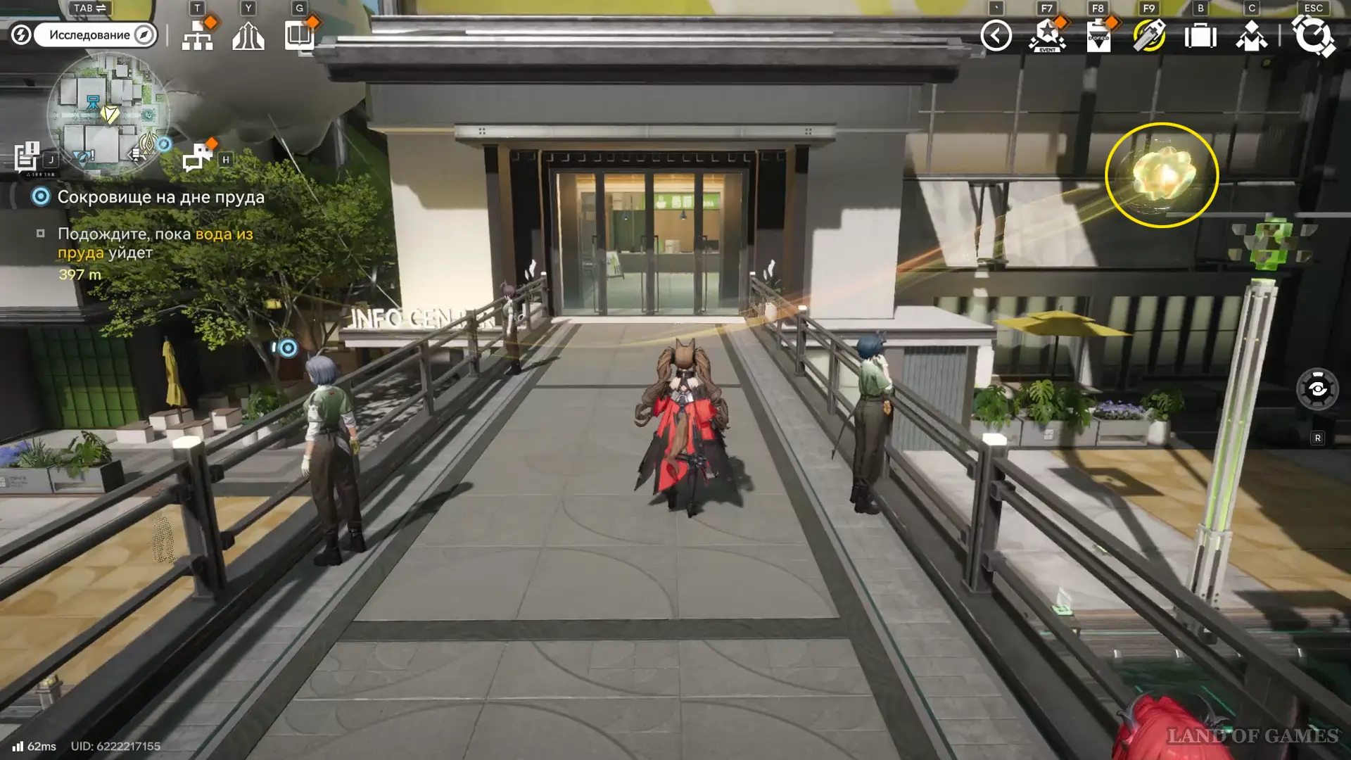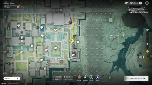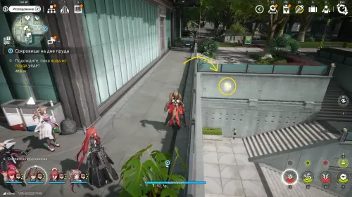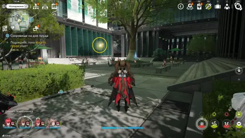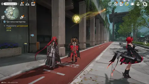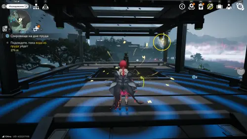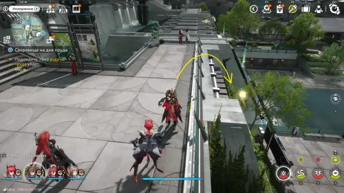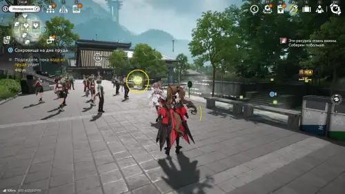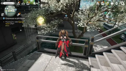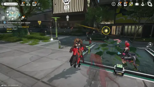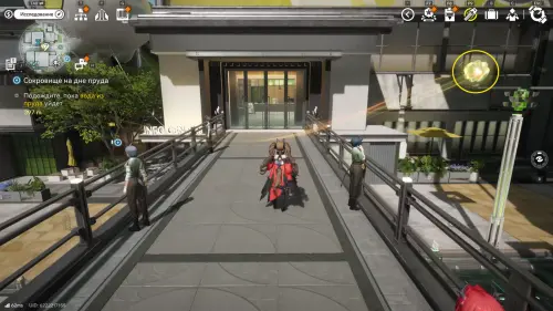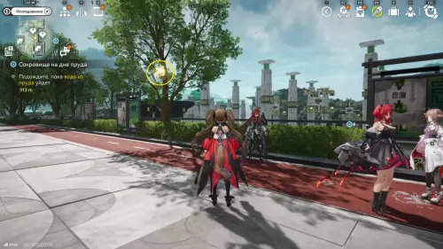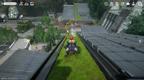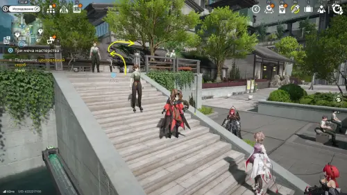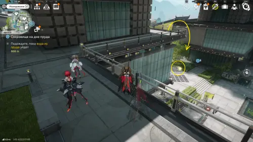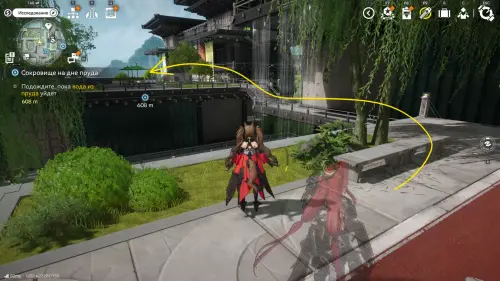 Теперь выберите телепорт около Академии бюро Тяньши (юго-запад города), оттуда бегите к юго-западному углу парка и пройдите во дворик с деревом и лавочками — парящую тут сферу нужно настигнуть, иначе она не прекратит улетать.