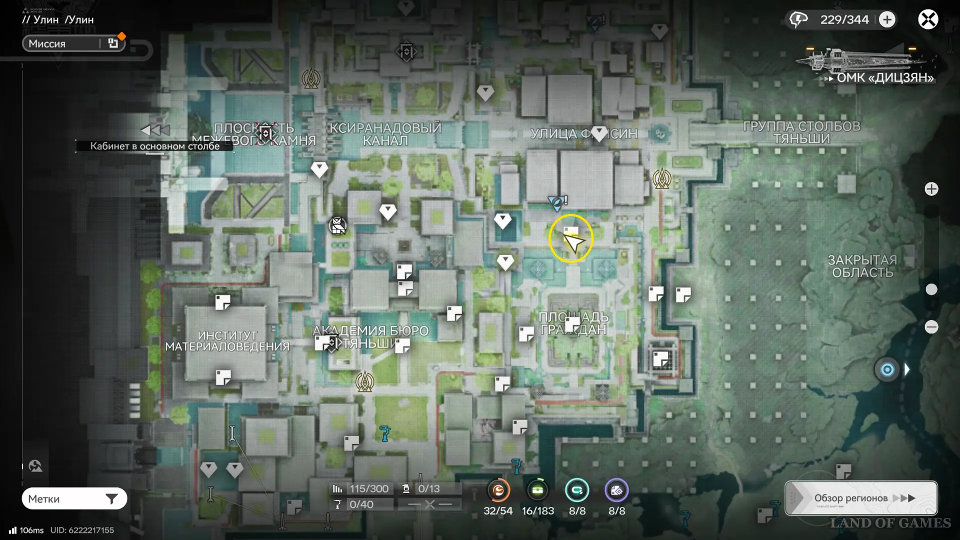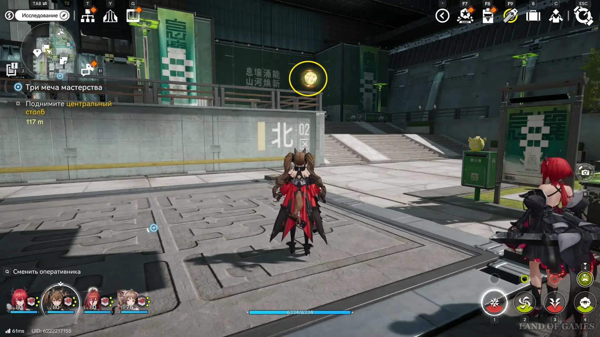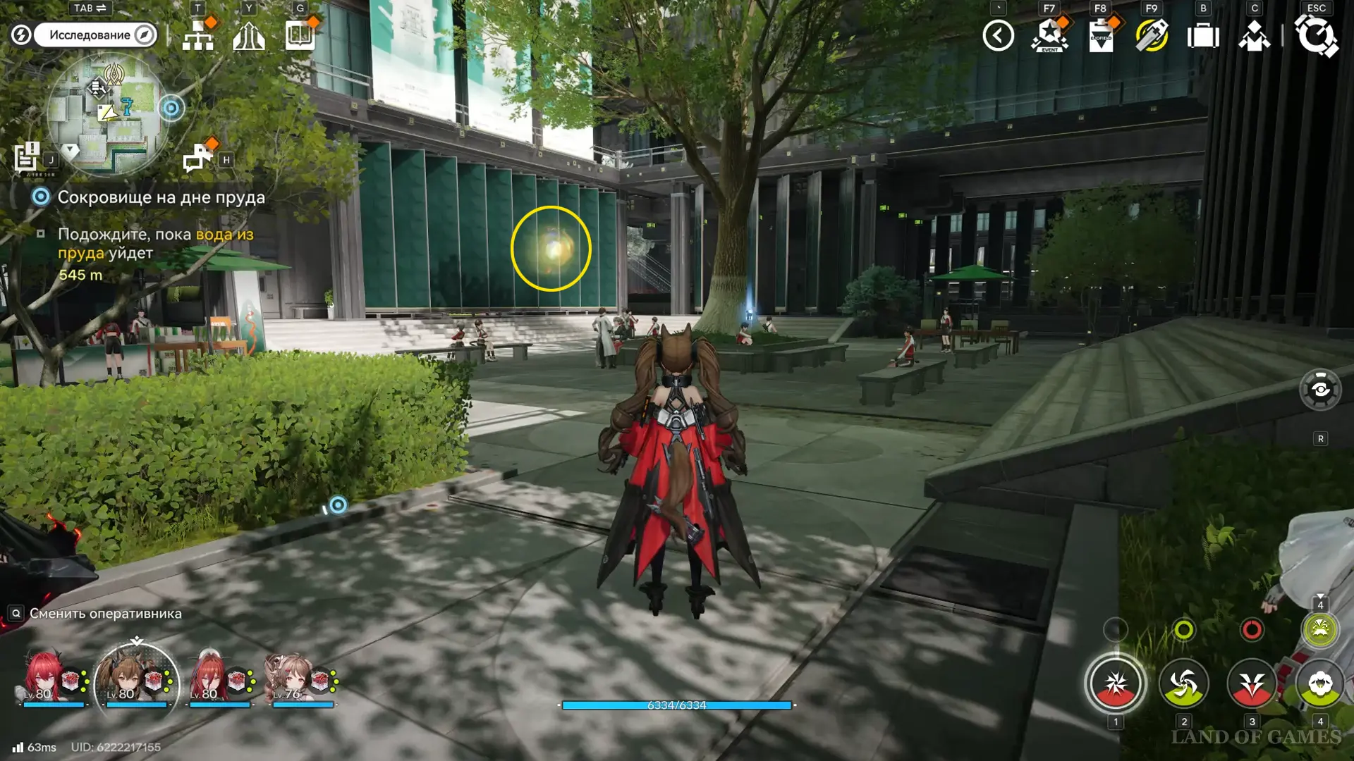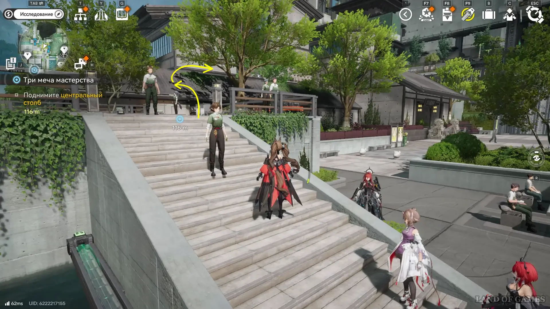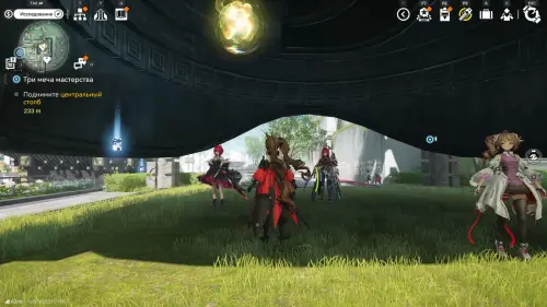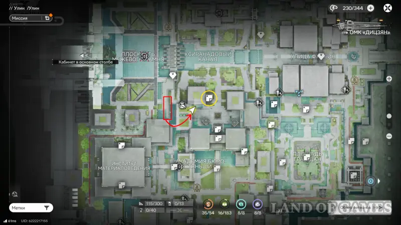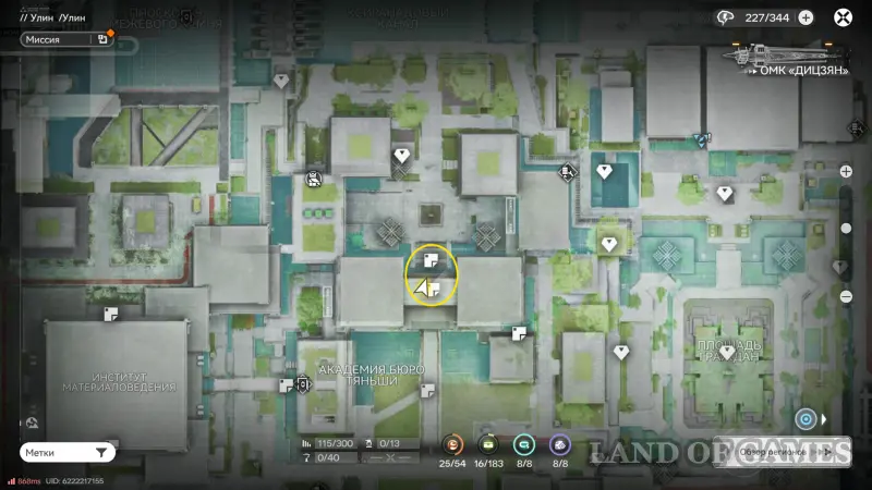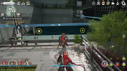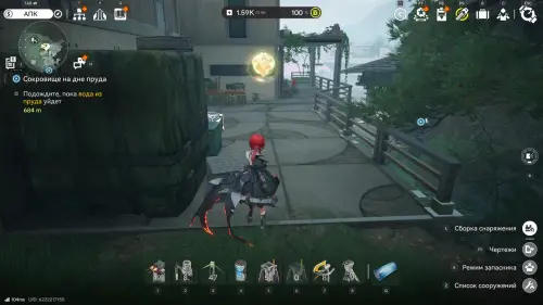 Теперь выберите телепорт около Академии бюро Тяньши (юго-запад города), оттуда бегите к юго-западному углу парка и пройдите во дворик с деревом и лавочками — парящую тут сферу нужно настигнуть, иначе она не прекратит улетать.
