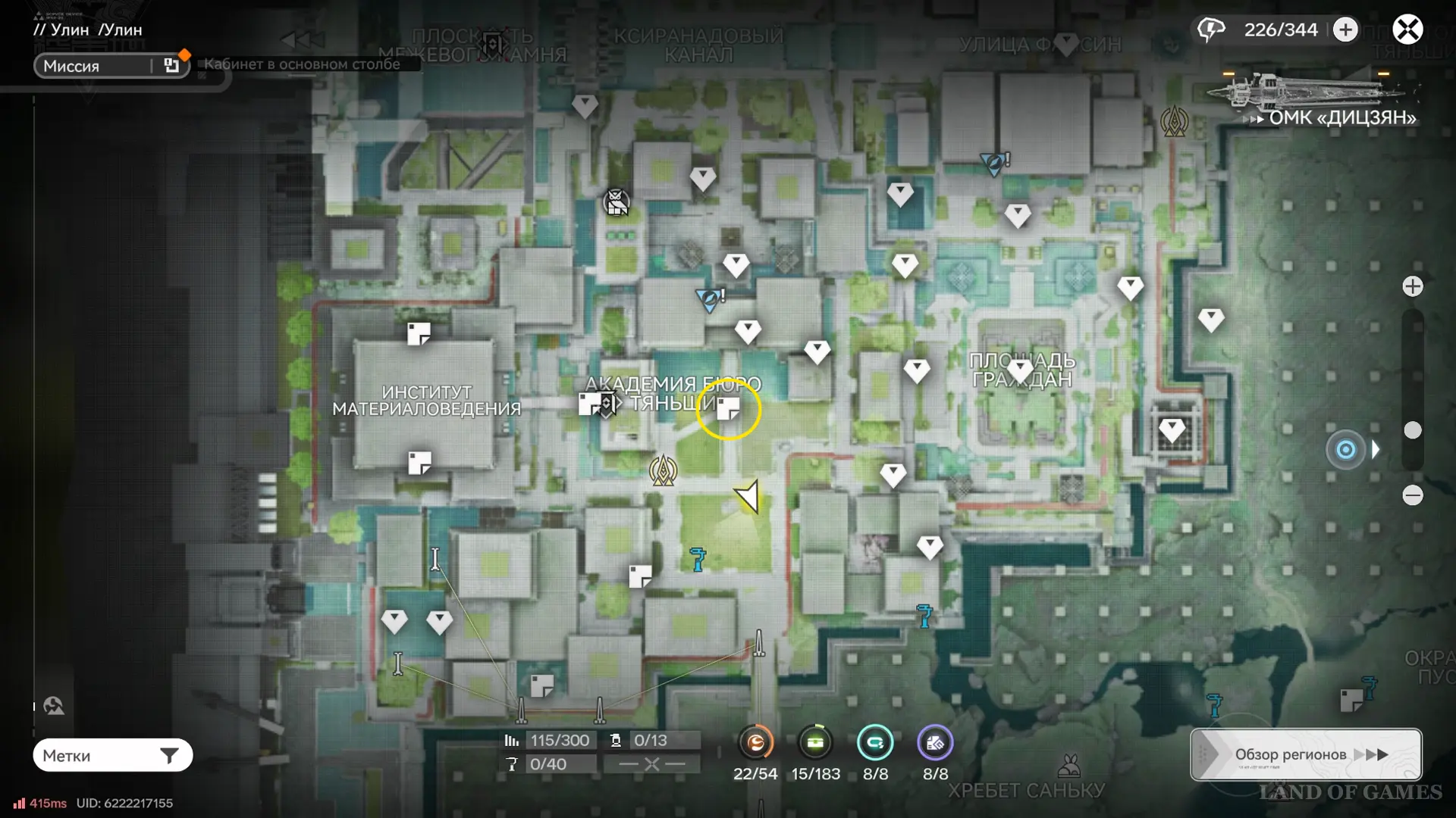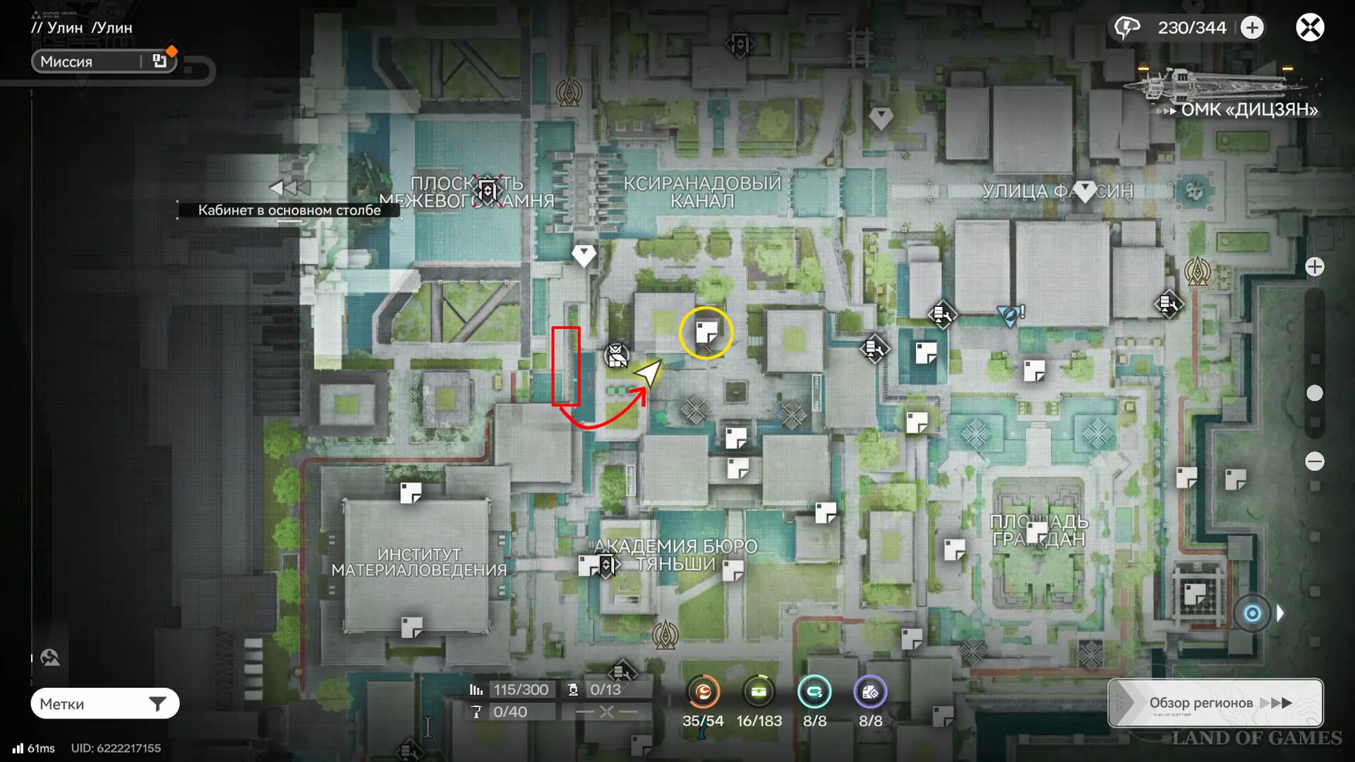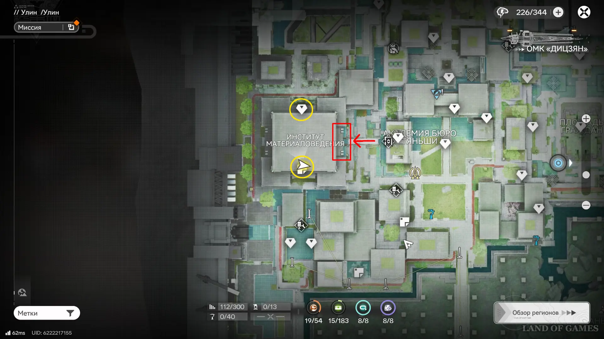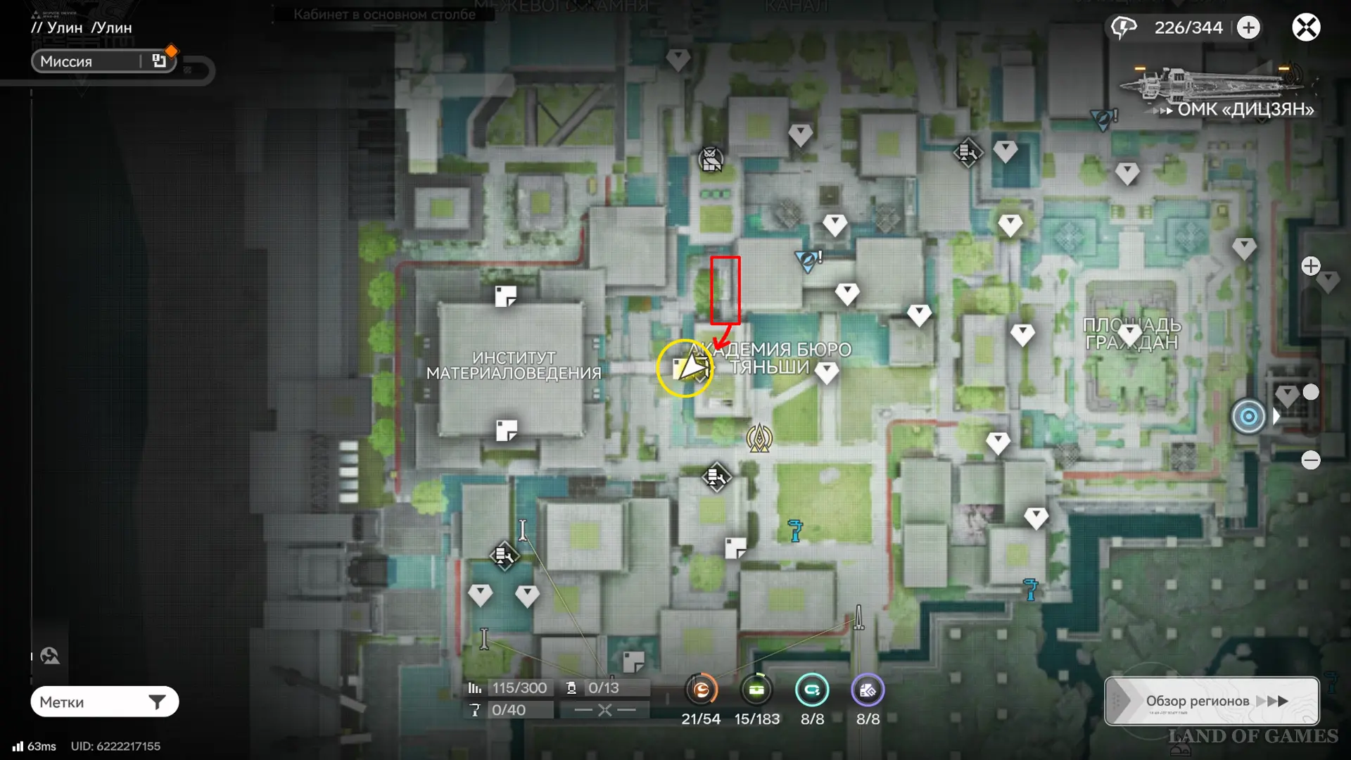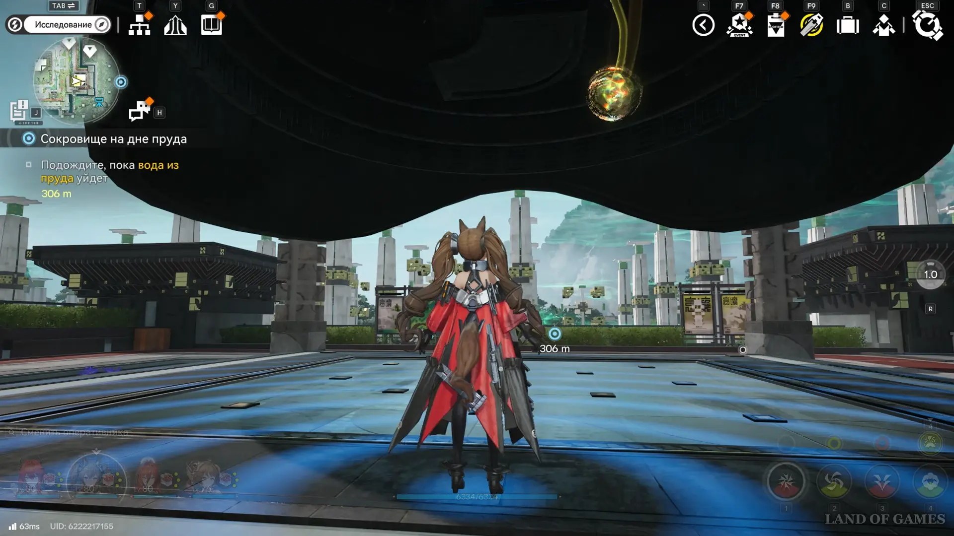 Теперь выберите телепорт около Академии бюро Тяньши (юго-запад города), оттуда бегите к юго-западному углу парка и пройдите во дворик с деревом и лавочками — парящую тут сферу нужно настигнуть, иначе она не прекратит улетать.
