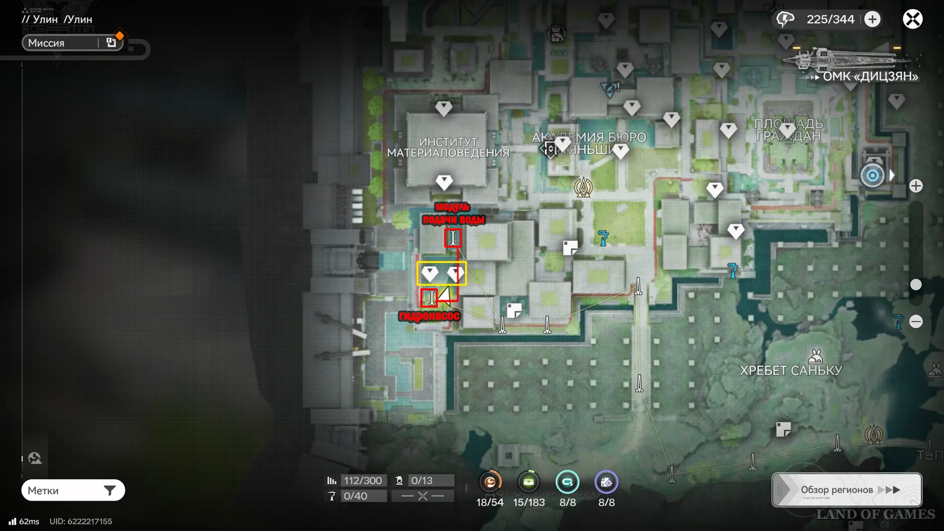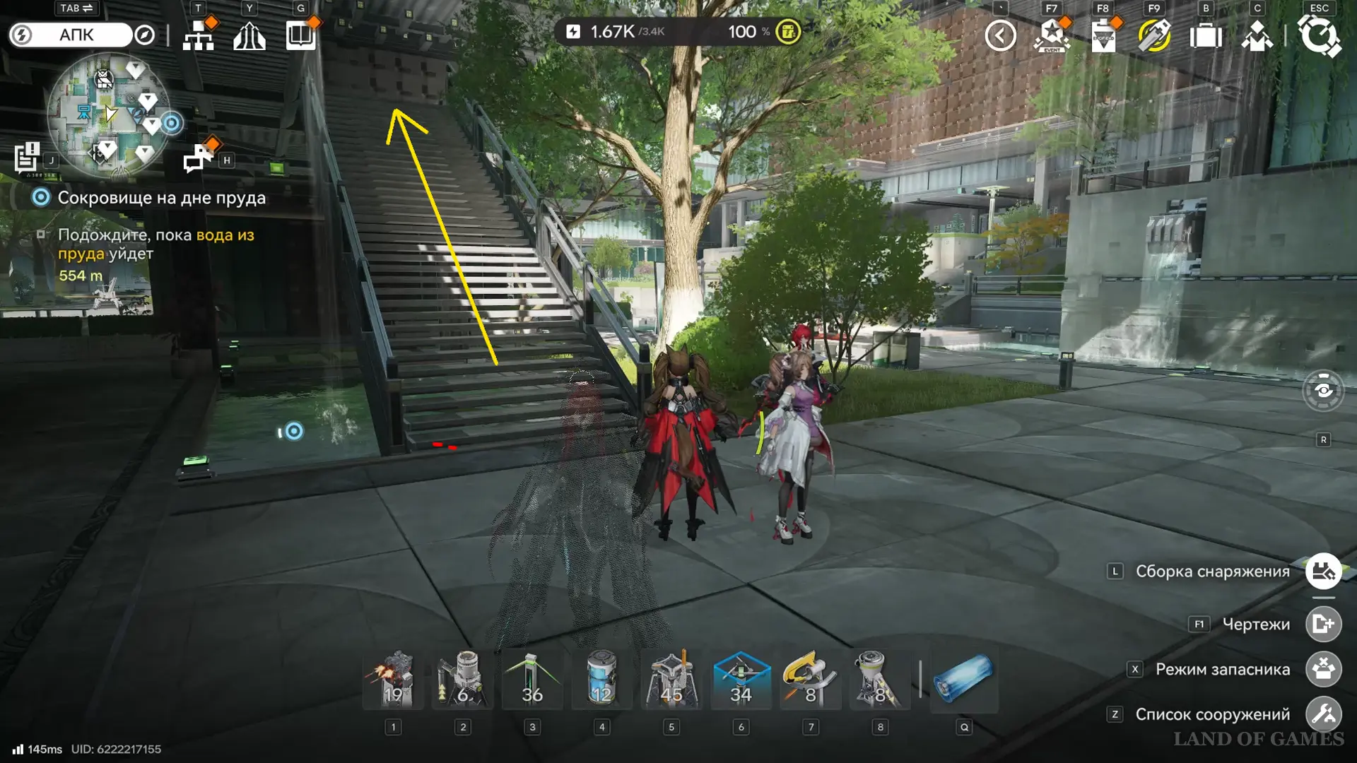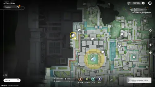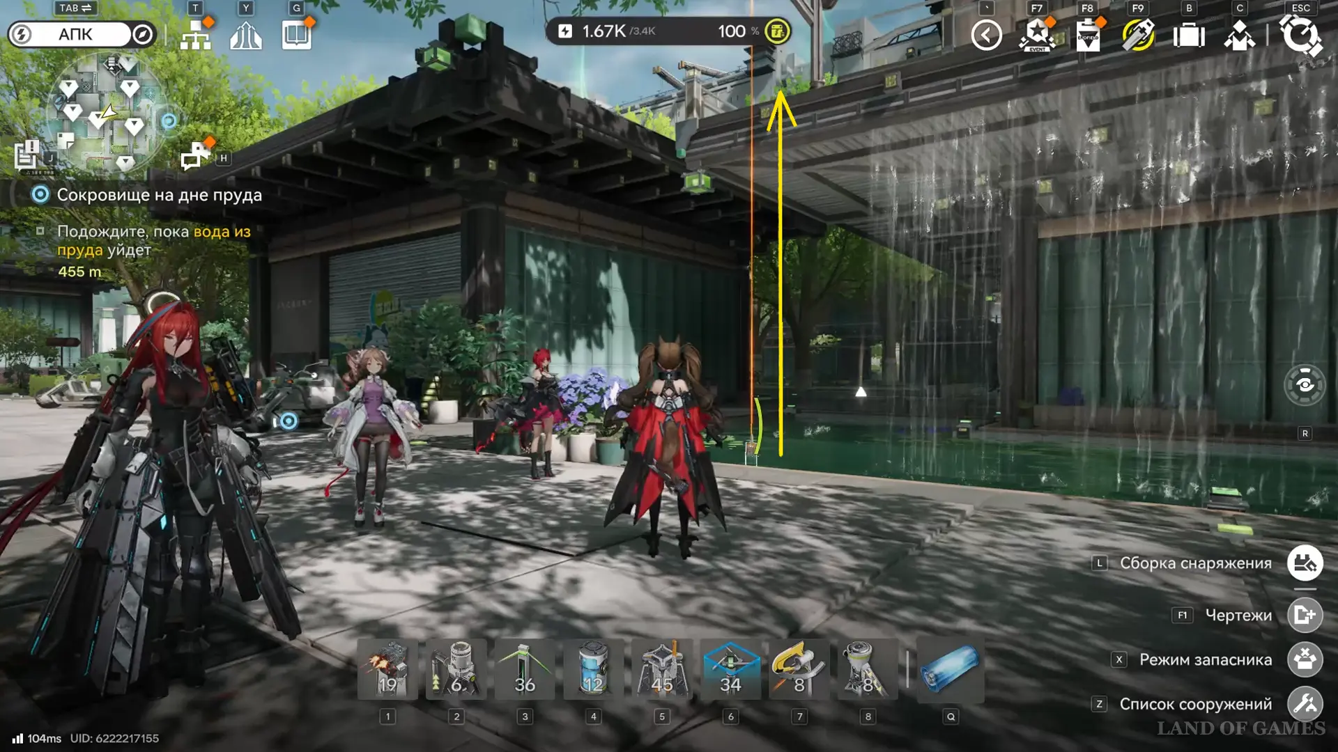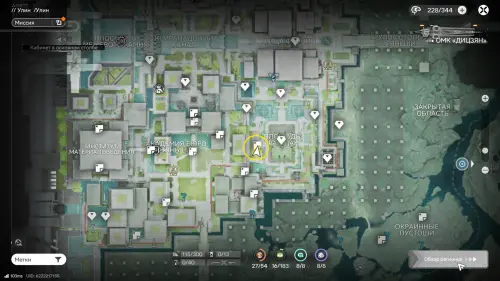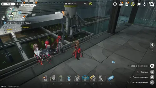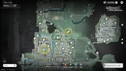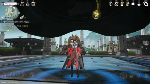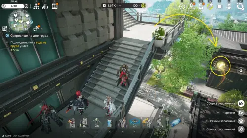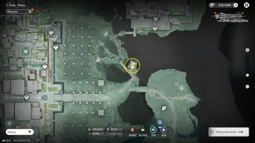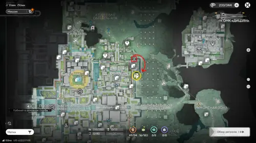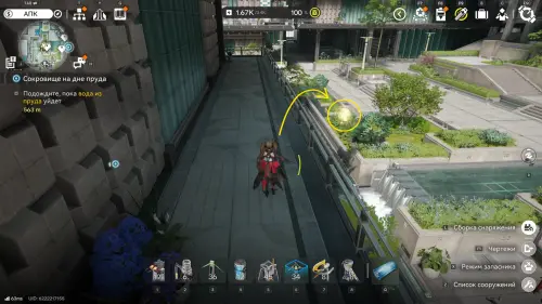К югу от Института материаловедения расположен двор с искусственным водоемом. На его дне спрятаны плиты и два аурилена. Если решать головоломку так, как задумано разработчиками, установите гидронасос у воды, а затем проведите от него трубу к модулю подачи, который нужно разместить неподалеку (точки установки отмечены на карте). Осушив область, вы сможете спокойно собрать трофеи.