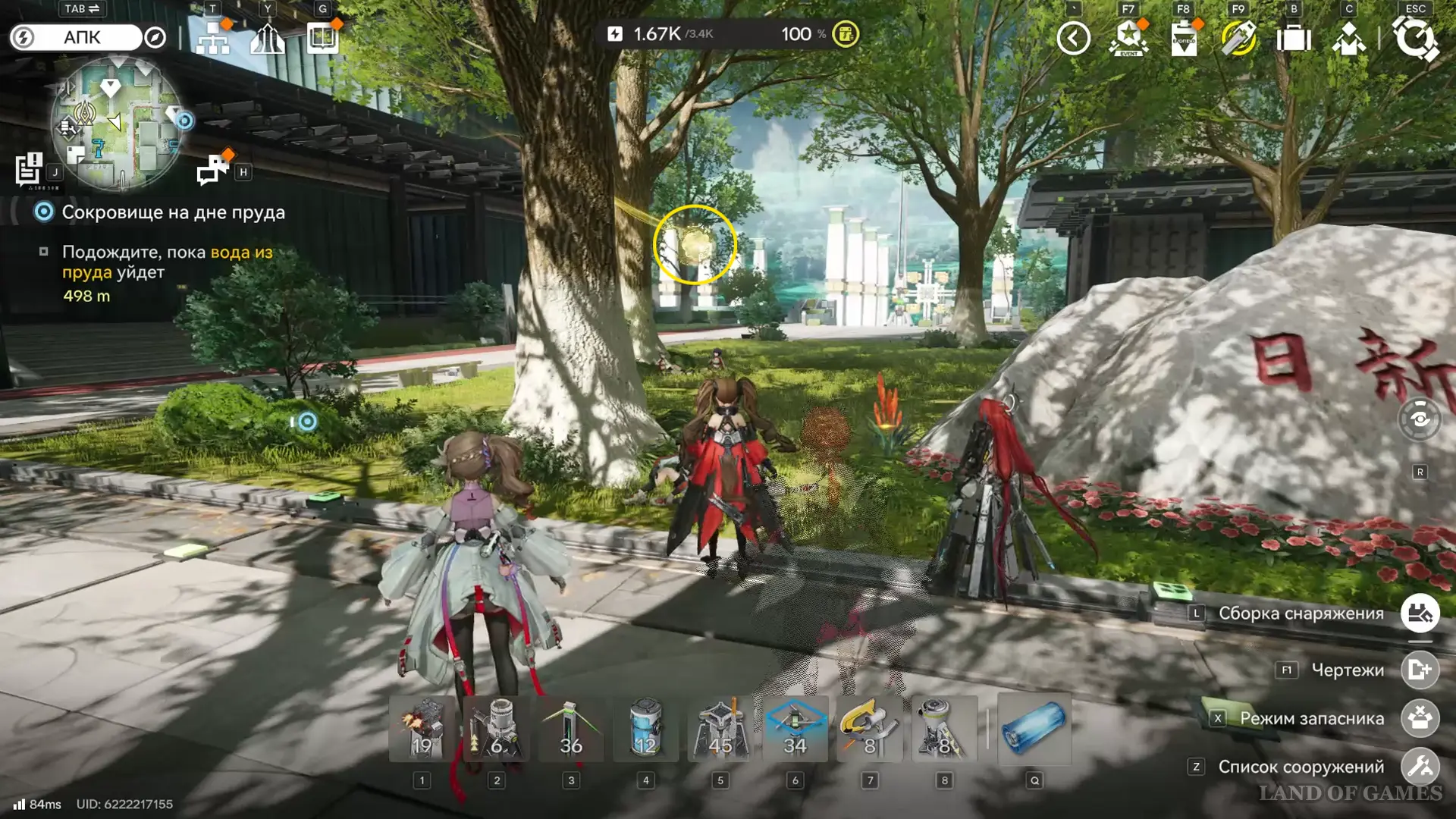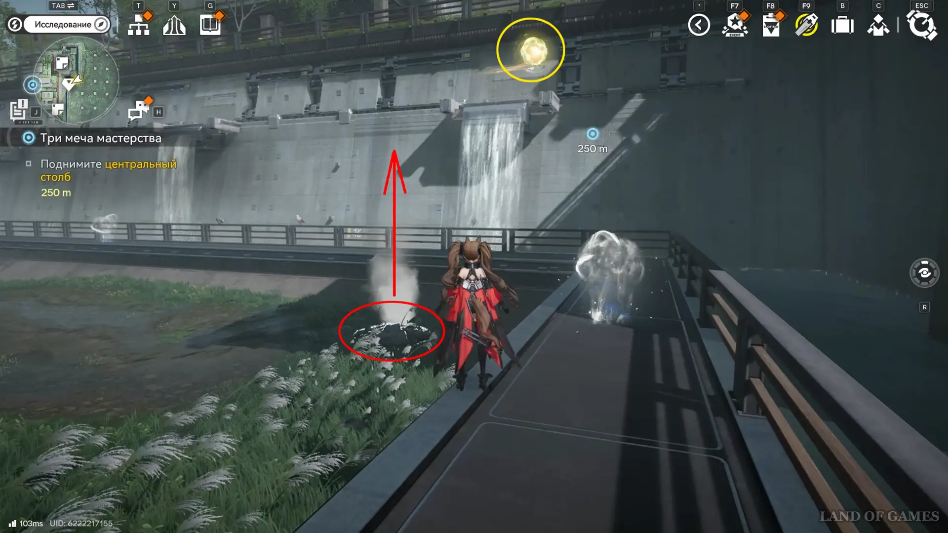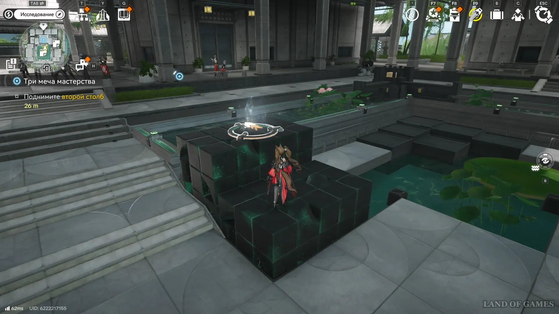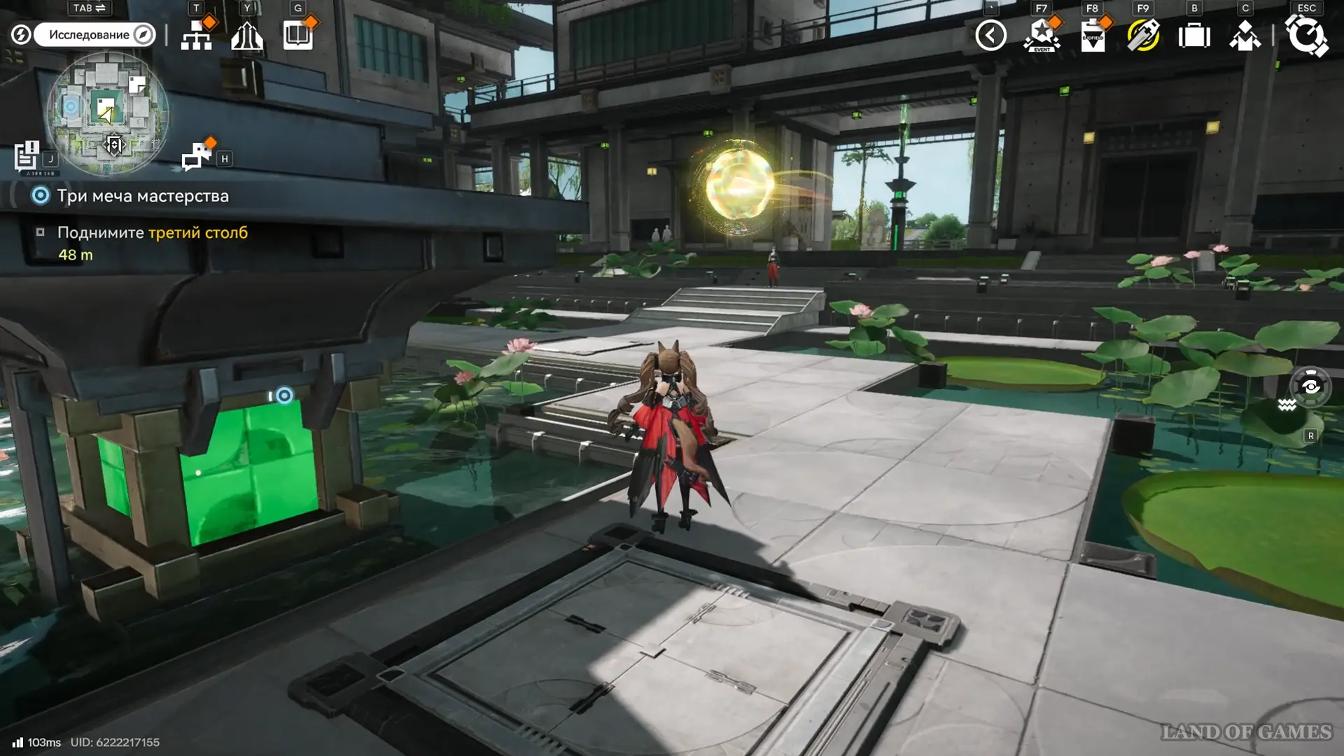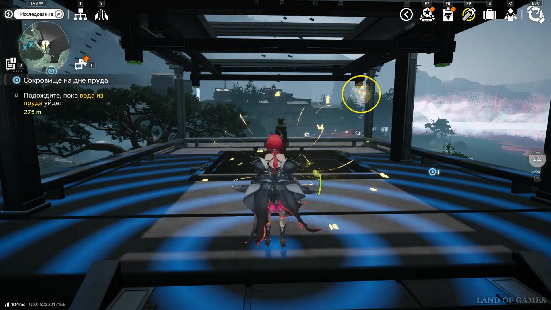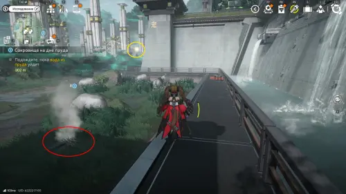 Решение второй головоломки восстановит тропинку на южной половине пруда, где можно дождаться парящей вокруг оружейных столбов 33-й сферы.