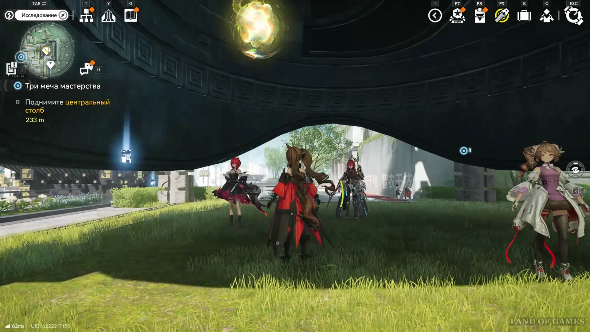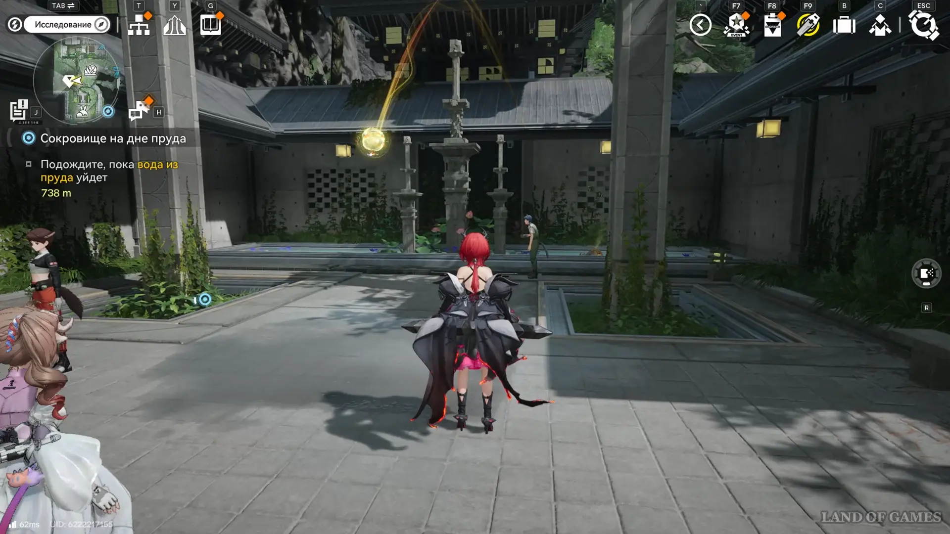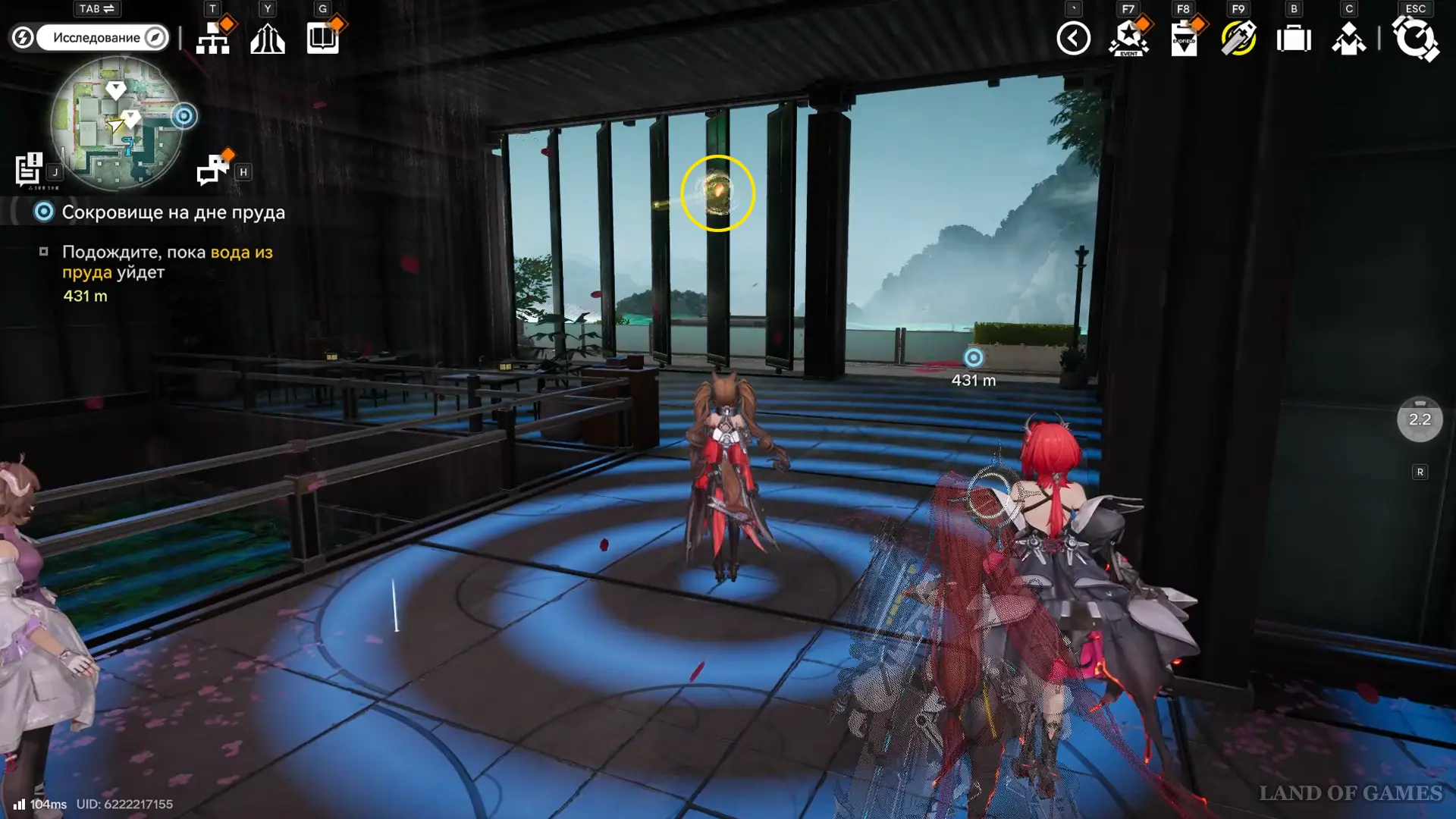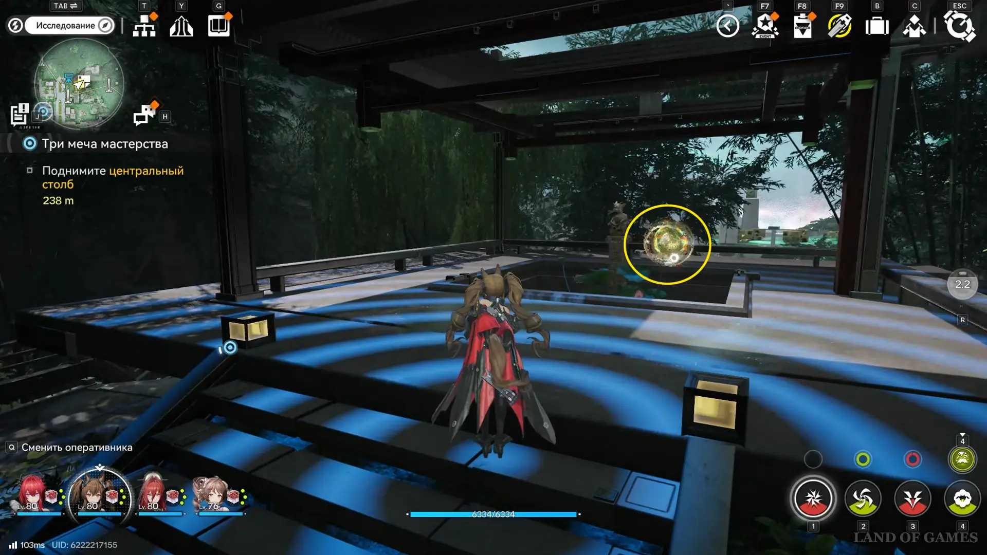 Решение второй головоломки восстановит тропинку на южной половине пруда, где можно дождаться парящей вокруг оружейных столбов 33-й сферы.