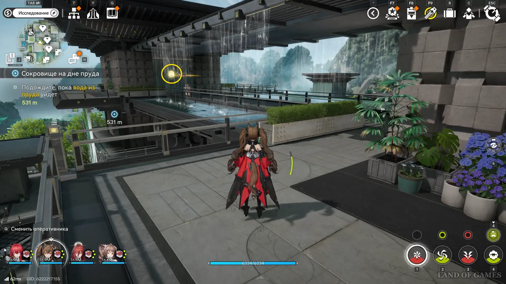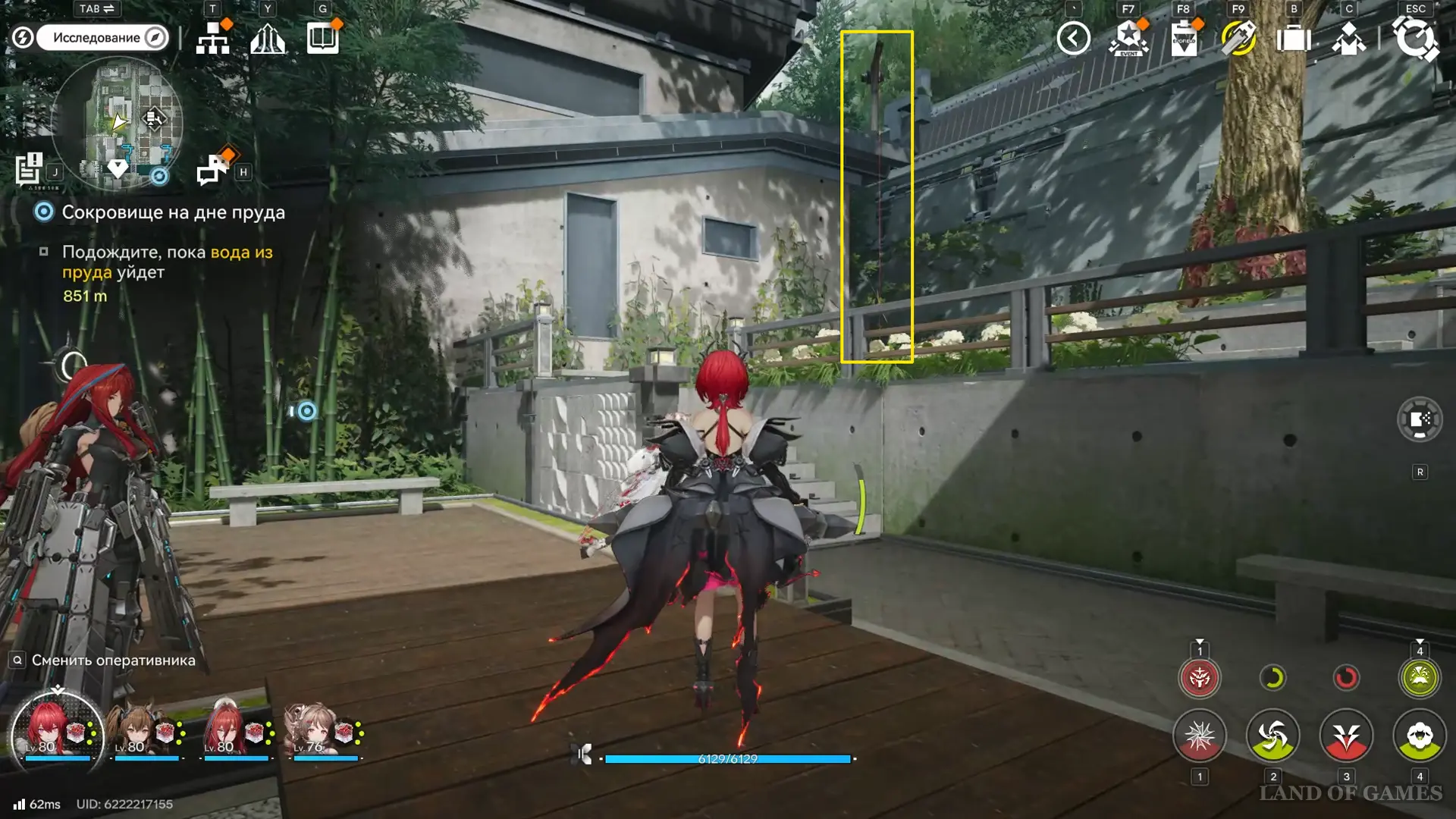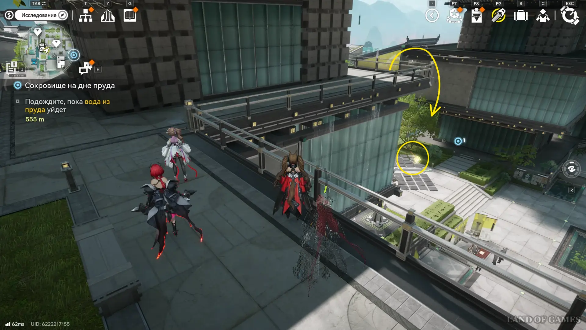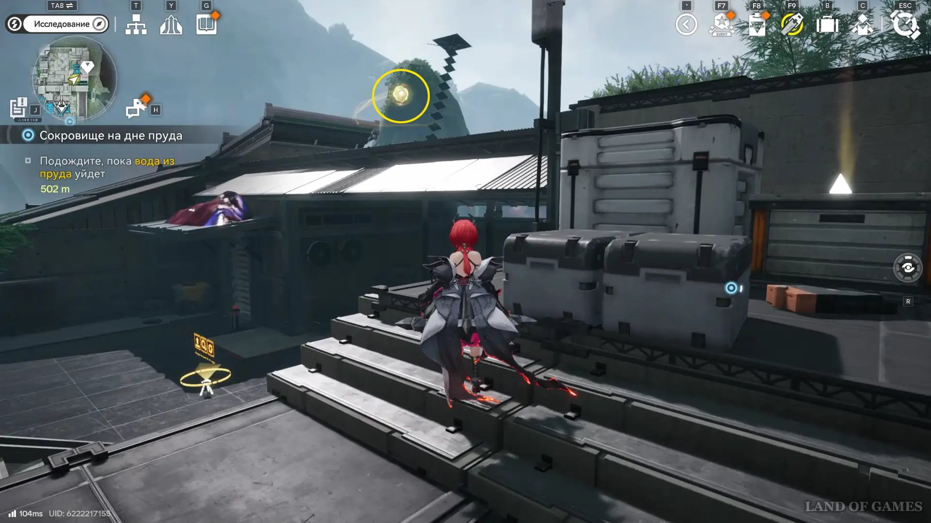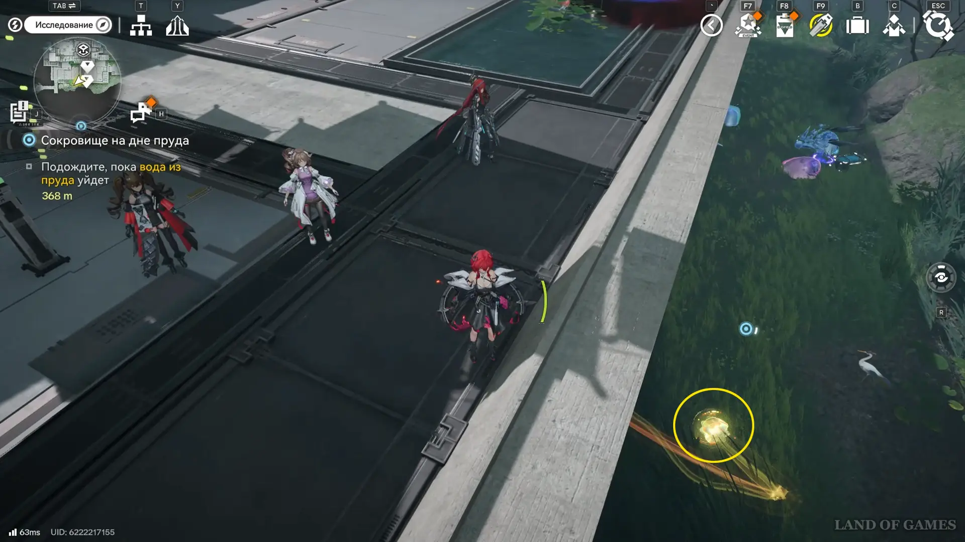 Решение второй головоломки восстановит тропинку на южной половине пруда, где можно дождаться парящей вокруг оружейных столбов 33-й сферы.