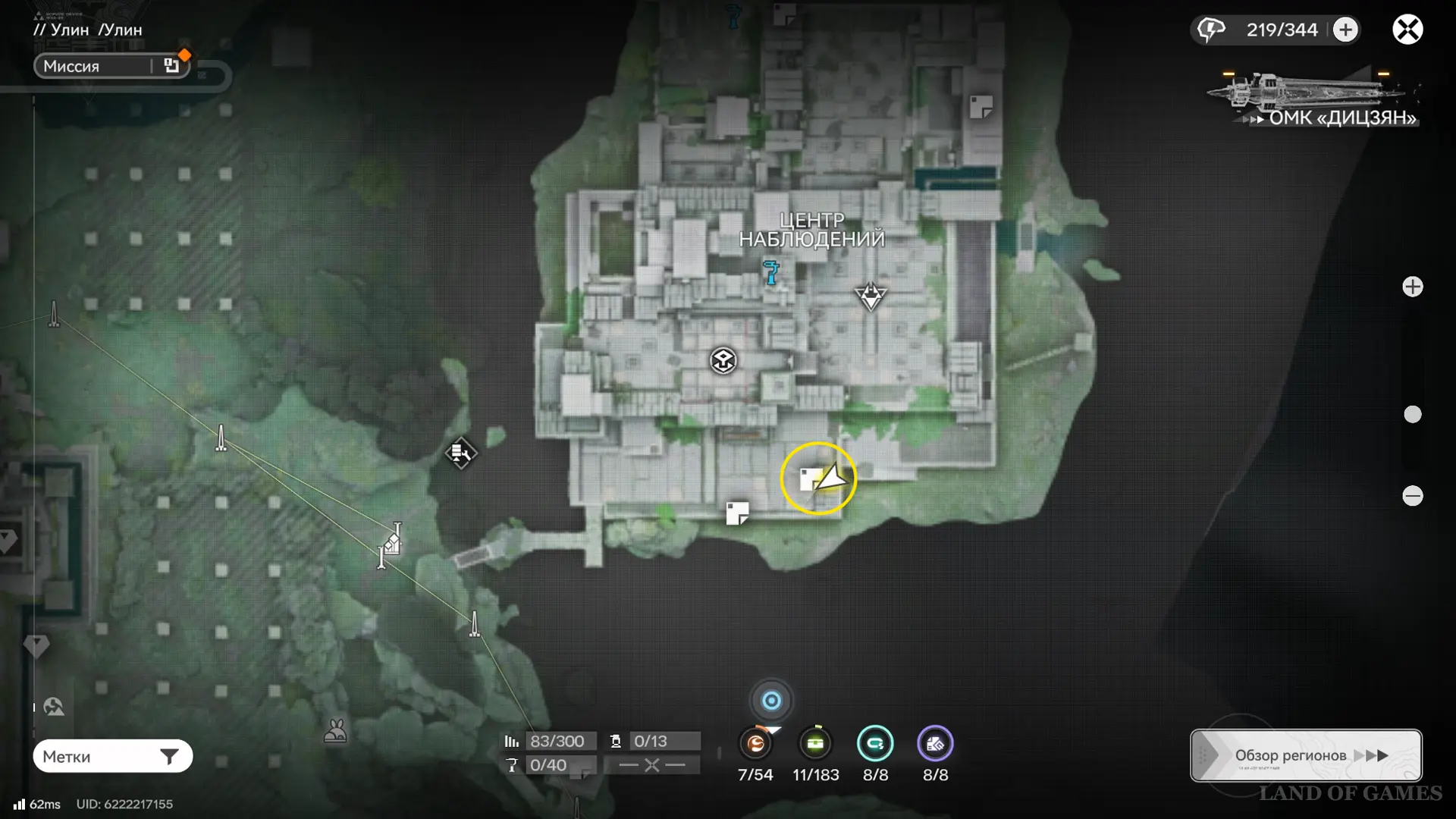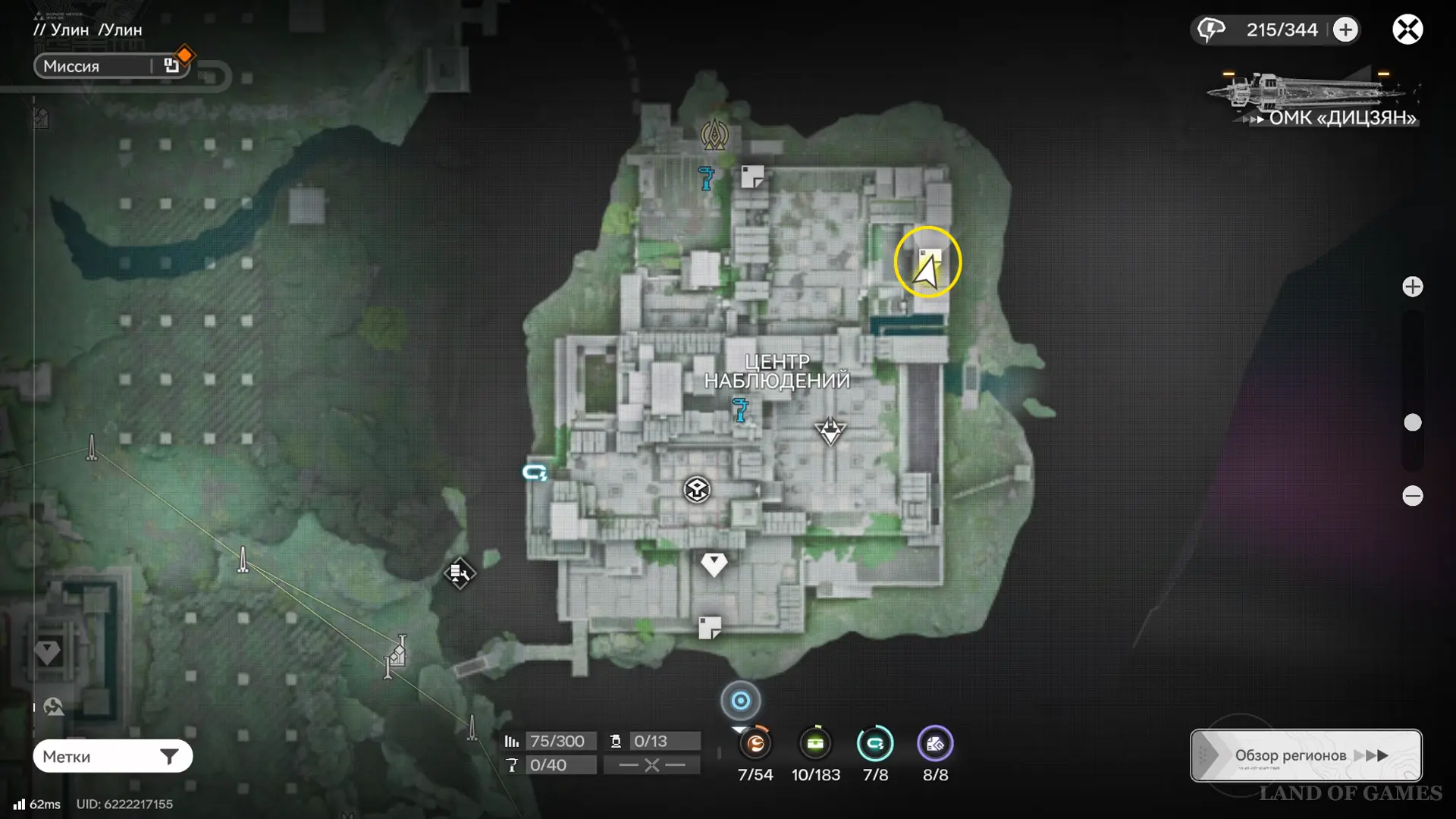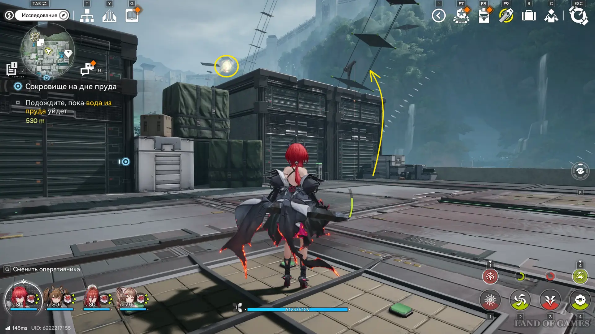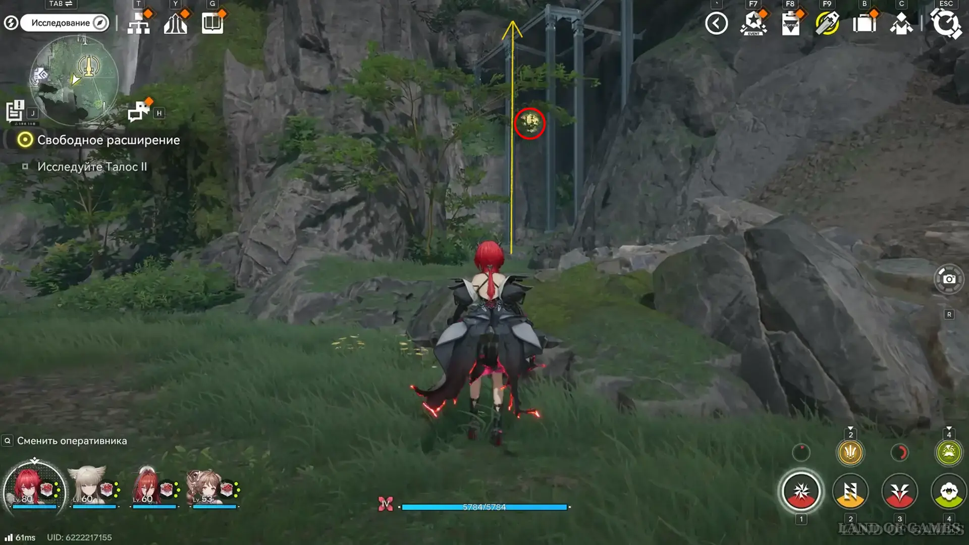 Пройдите на площадку перед проходом в зону 2 на севере Центра наблюдений и поднимитесь на железный выступ с зиплайном в месте, отмеченном на карте выше — здесь парит 48-й аурилен.