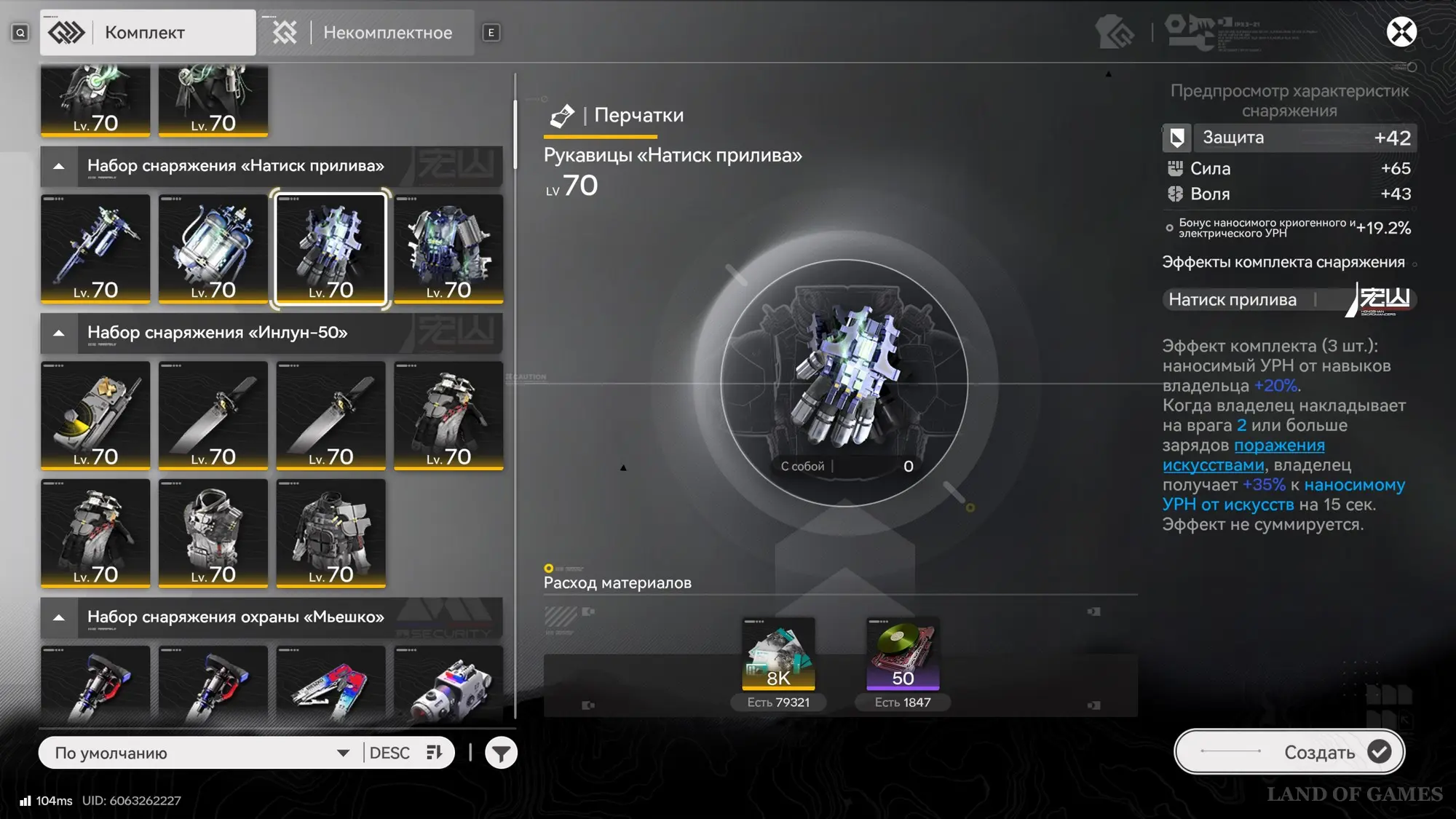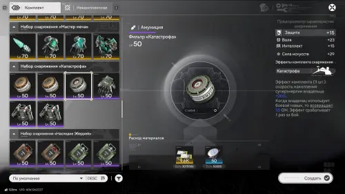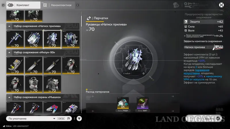 В отличие от того же Genshin Impact, все характеристики снаряжения фиксированы, а их значения не меняются при создании. То есть у Рукавиц «Натиск прилива», к примеру, всегда будет присутствовать параметр «Воля» в атрибутах, а его показатель равен «+43» после крафта.