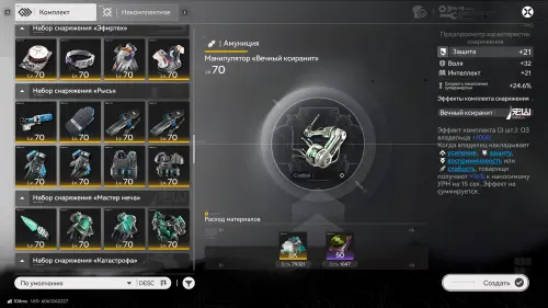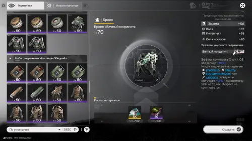 Для их покупки также потребуются облигации Долины (до 50-го уровня) или облигации Улина (70 уровень). Имея на руках все необходимые материалы, откройте основное меню (ESC), а затем нажмите на панель «Сборка снаряжения» в правой части экрана, выберите нужный вам элемент экипировки и нажмите кнопку «Создать». При достаточном количестве ресурсов вы мгновенно изготовите желаемый предмет.
