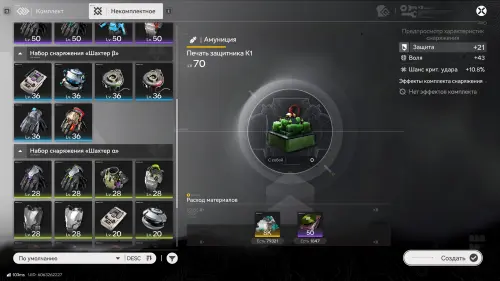 Далее в зависимости от уровня создаваемого снаряжения вам понадобятся разные компоненты, а именно: