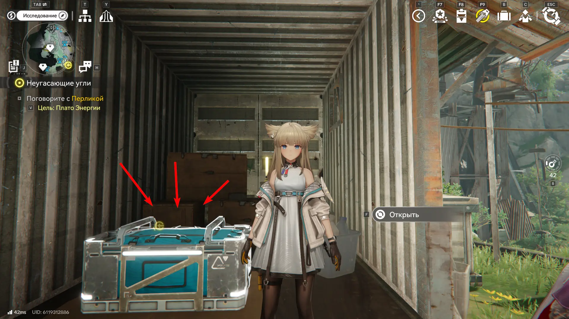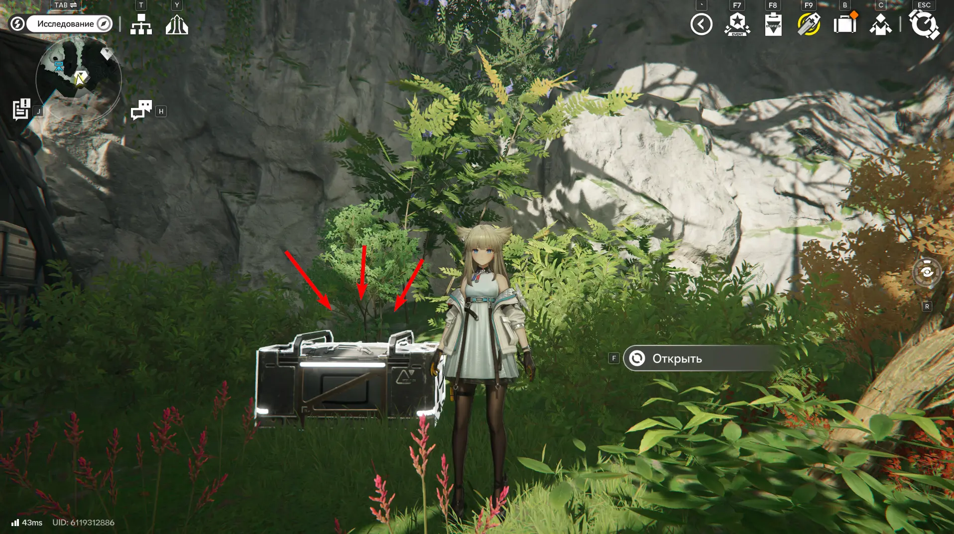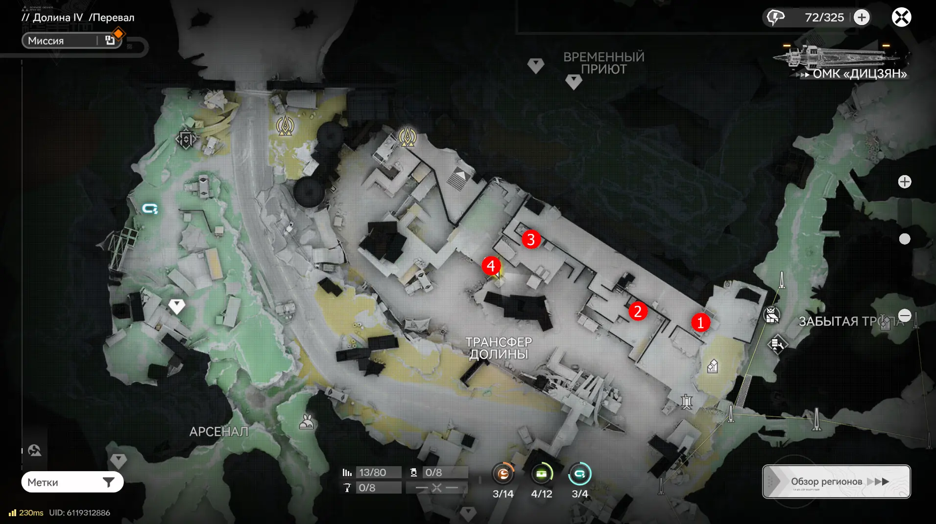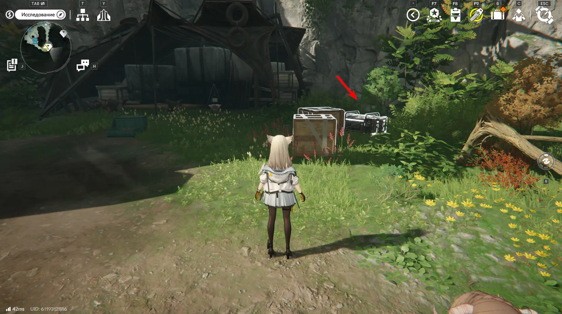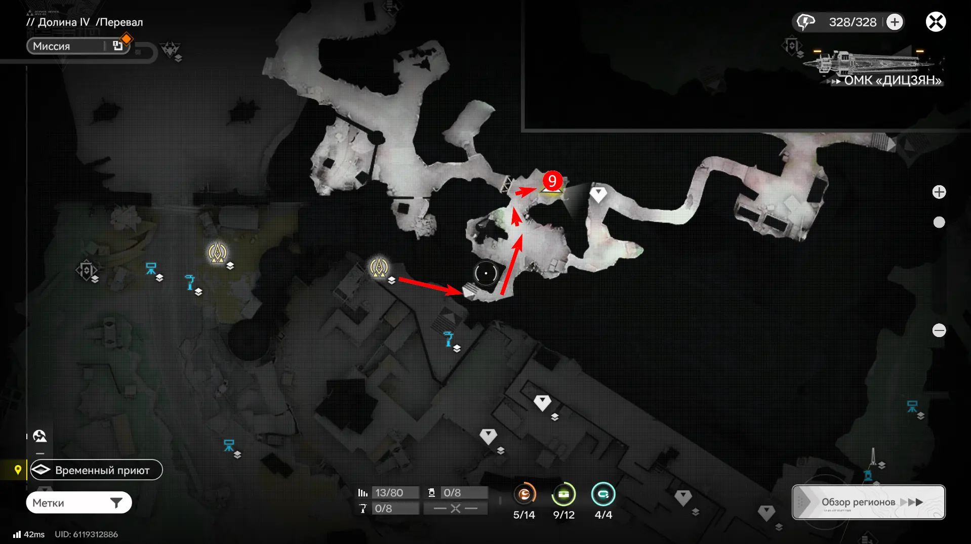 Всего на территории можно отыскать 12 ящиков ресурсов разной ценности, которые отмечены на карте порядковыми номерами. Собирать их можно в любой последовательности, но стрелками указан кратчайший маршрут. О том, как отыскать каждый из сундуков с ороберилами, расскажем далее.