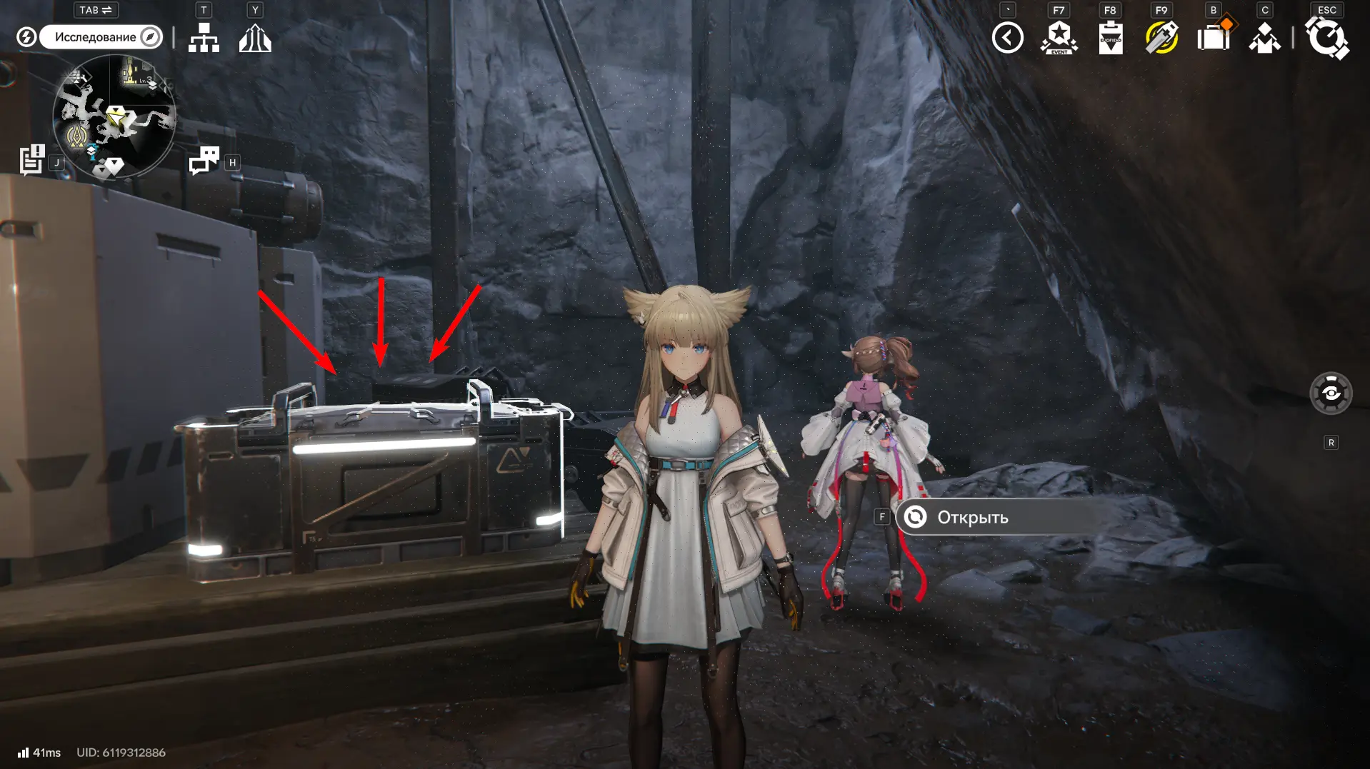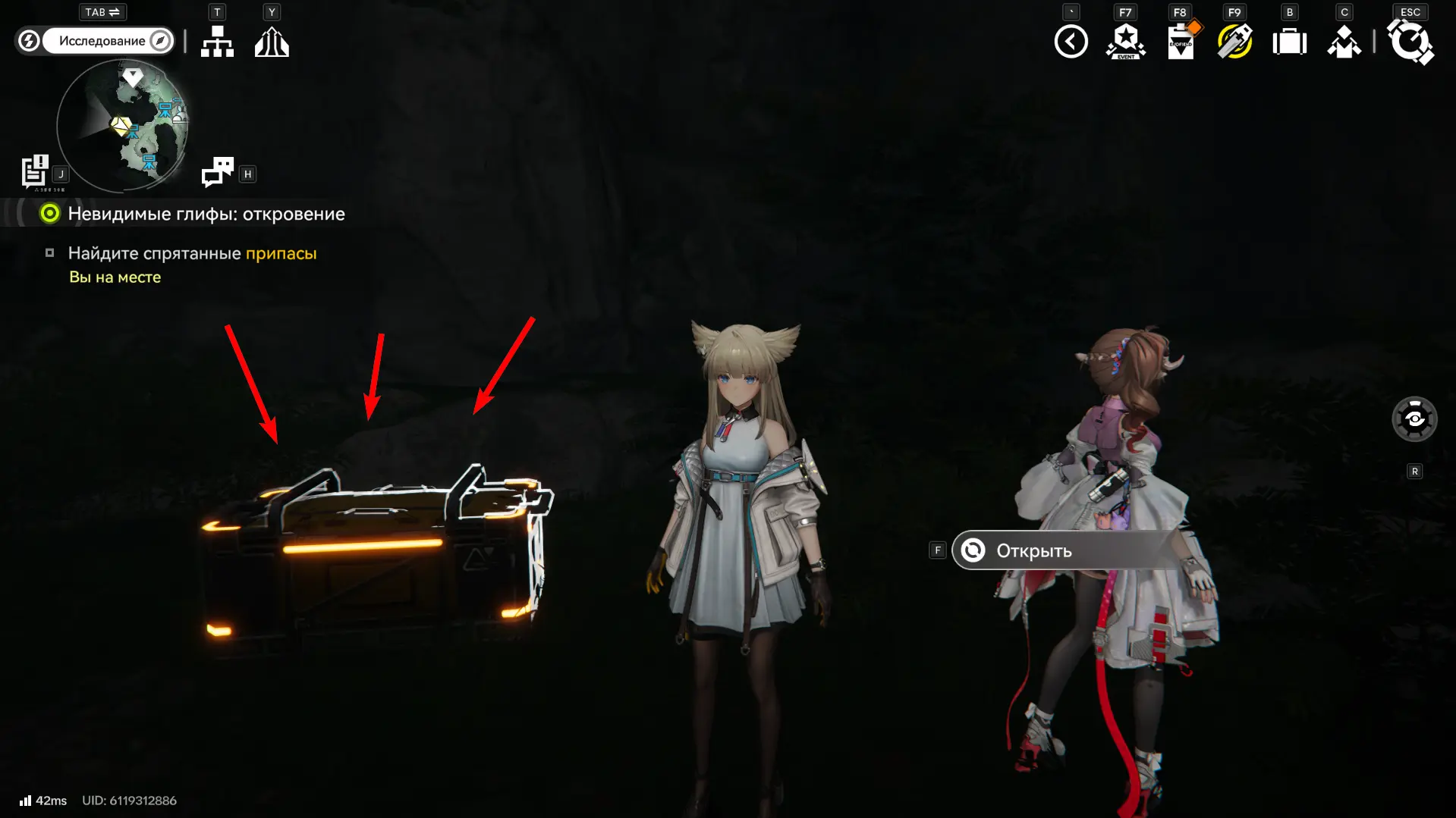 Этот сундук можно получить, если пройти третий квест из цепочки «Невидимые глифы». После исследования пещеры в Береговом лагере отправляйтесь в Арсенал и бегите к указанной точке на карте в пещерах на западе локации.
