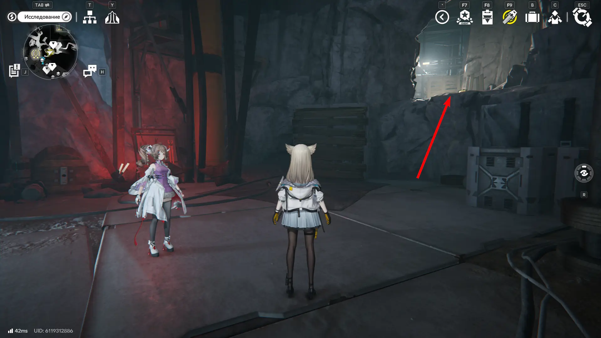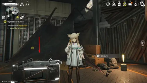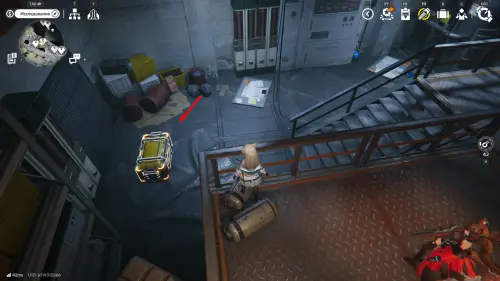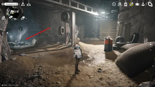 Вернитесь к развилке и в этот раз идите направо. По контейнерам поднимитесь чуть выше, а от взрывчатки поворачивайте левее, в небольшую пещерку со всяким мусором. Там, возле черных мешков будет стоять еще один обычный ящик с припасами.