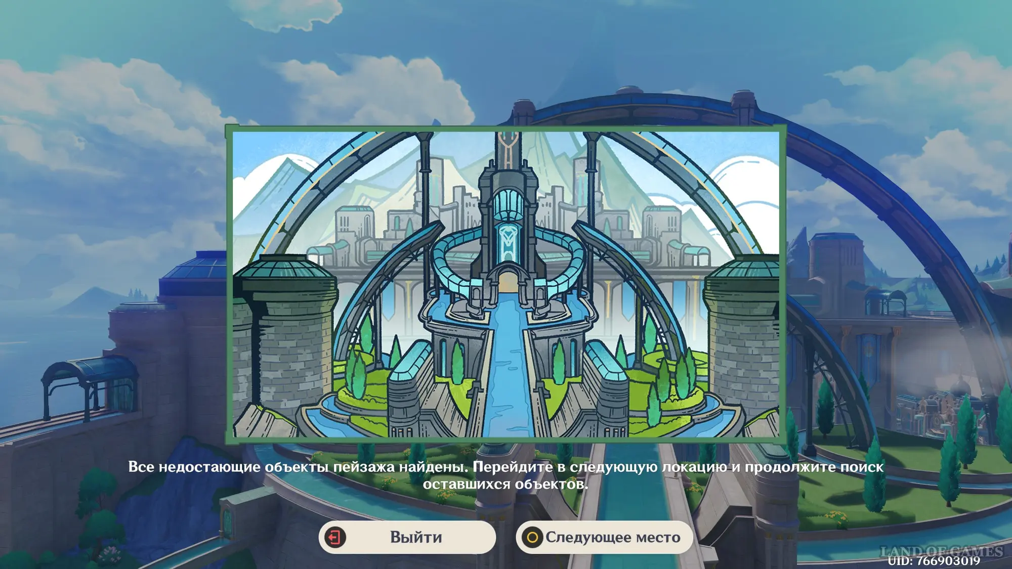 В конце поверните камеру влево в сторону второй башни со стеклянной крышей, и сделайте ее снимок. Поздравляем, вы нашли все недостающие объекты, поэтому можете переходить к следующему месту.