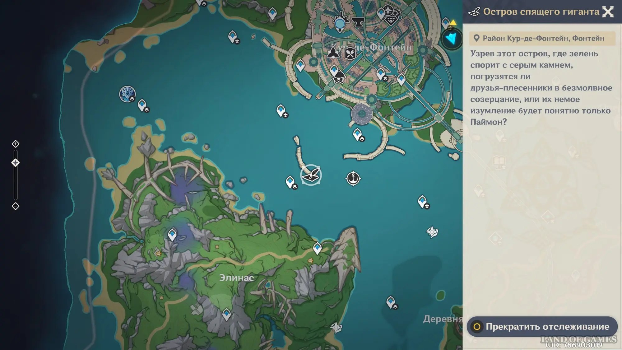 Телепортируйтесь к подводному телепорту южнее столицы региона, а затем всплывите, поднимитесь на каменную постройку с тотемом, встаньте в подсвеченном месте и начните любоваться красотами. Вначале поверните камеру к утесу с правой стороны, чтобы запечатлеть его.