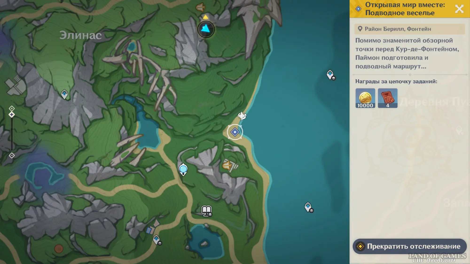 Отправляйтесь на восточный пляж Района Берил и пройдите к квестовому маркеру для начала нового ролика. Поговорите с мелюзиной, после чего этот небольшой квест подойдет к концу, и у вас откроется доступ к новому испытанию. Речь идет о фотоохоте, в рамках которой вам необходимо будет фотографировать различных существ Фонтейна, как наземных, так и подводных.