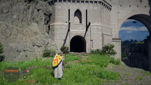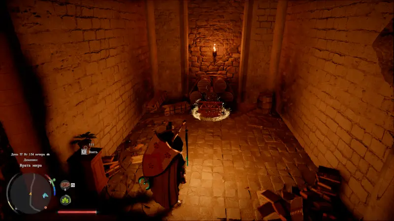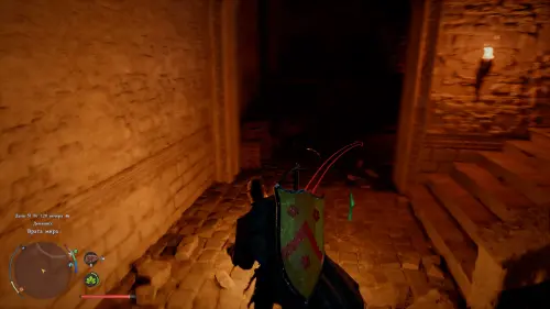 Рисунки на фрагменте указывают, что сокровища спрятаны в одной из башен Врат мира. Когда окажетесь рядом с локацией, отправляйтесь не к главной башне, а к боковой — вход в нее находится чуть ниже справа. К нужным воротам ведет дорога от Западного лагеря Врат мира.