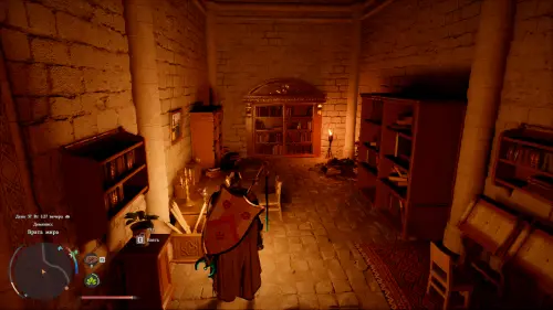 Войдите в башню, сразу сверните налево, пройдите мимо лестницы наверх и спускайтесь вниз. В конце лестницы поверните налево и снова спускайтесь вниз, пока не окажетесь в комнате с книжным шкафом у дальней стены. Идите прямо на шкаф, который на самом деле является скрытой поворотной дверью в следующую комнату.