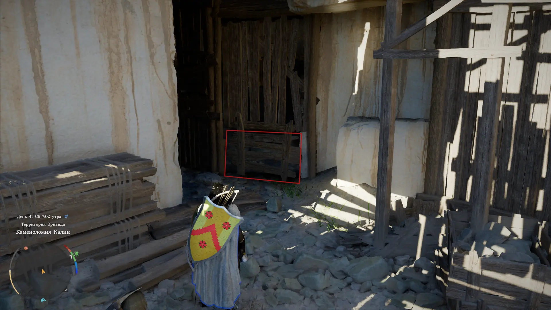 Отправляйтесь на Каменоломню Калин, расположенную к северо-востоку от Эрнанда. Пройдя через большие ворота, поверните налево. В дальнем углу вы найдете вход в небольшую пещеру: сломайте доски, присядьте и войдите в нее. Внутри рукотворной пещеры находится сундук с фрагментом карты клада 6, указывающим на местоположение сокровищ.