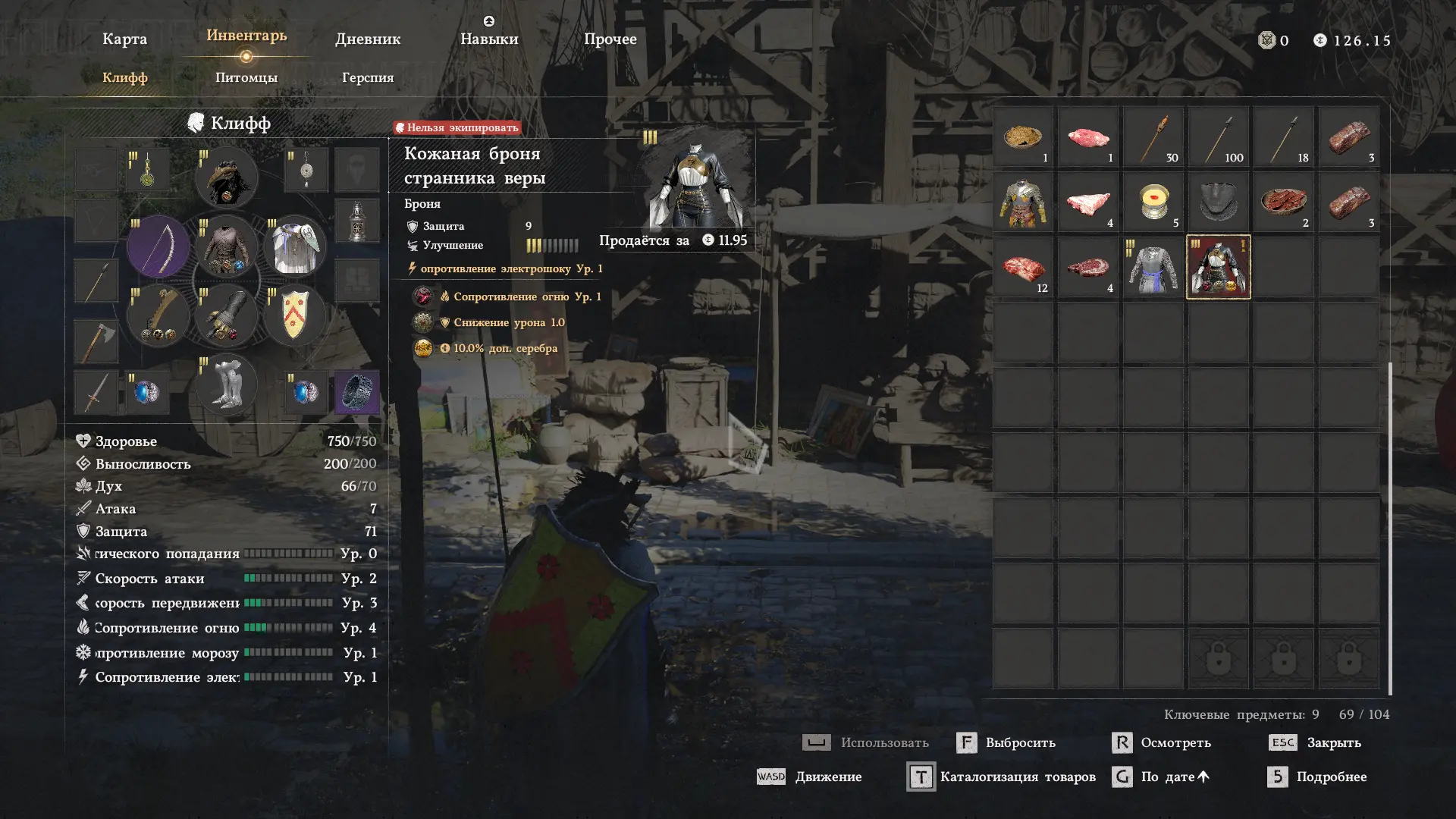 В сундуке, находящимся за поворотной стеной, спрятана Кожаная броня странника веры и Улучшенный болюс пальмары, с помощью которого можно воскресить своего персонажа с полным уровнем здоровья прямо посреди битвы. Кожаная броня дает сопротивление огню и электрошоку первого уровня, снижение урона 1.0 и +10% доп. серебра.
