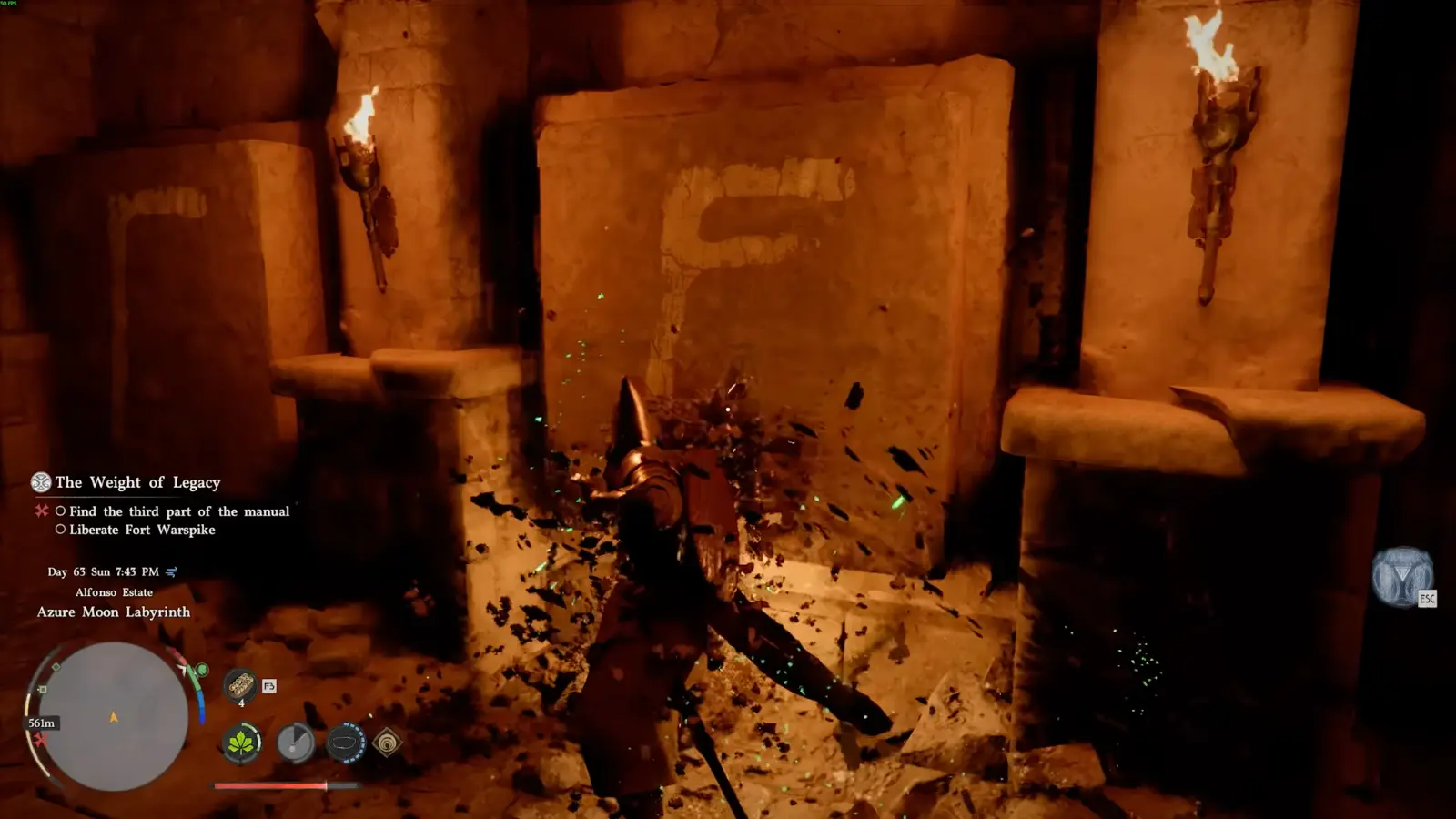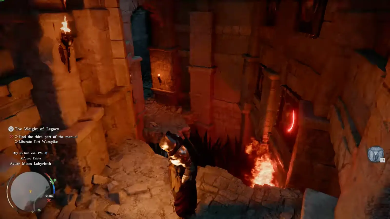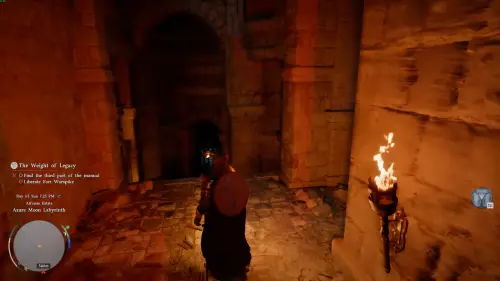 После этого будьте готовы к внезапной опасности: на одном из участков потолок обрушится. Это развилка с факелом справа. Способ не получить урон здесь также есть, для этого быстро войдите в область обрушения перед проходами и либо отскочите назад, либо пробегите в арку направо.