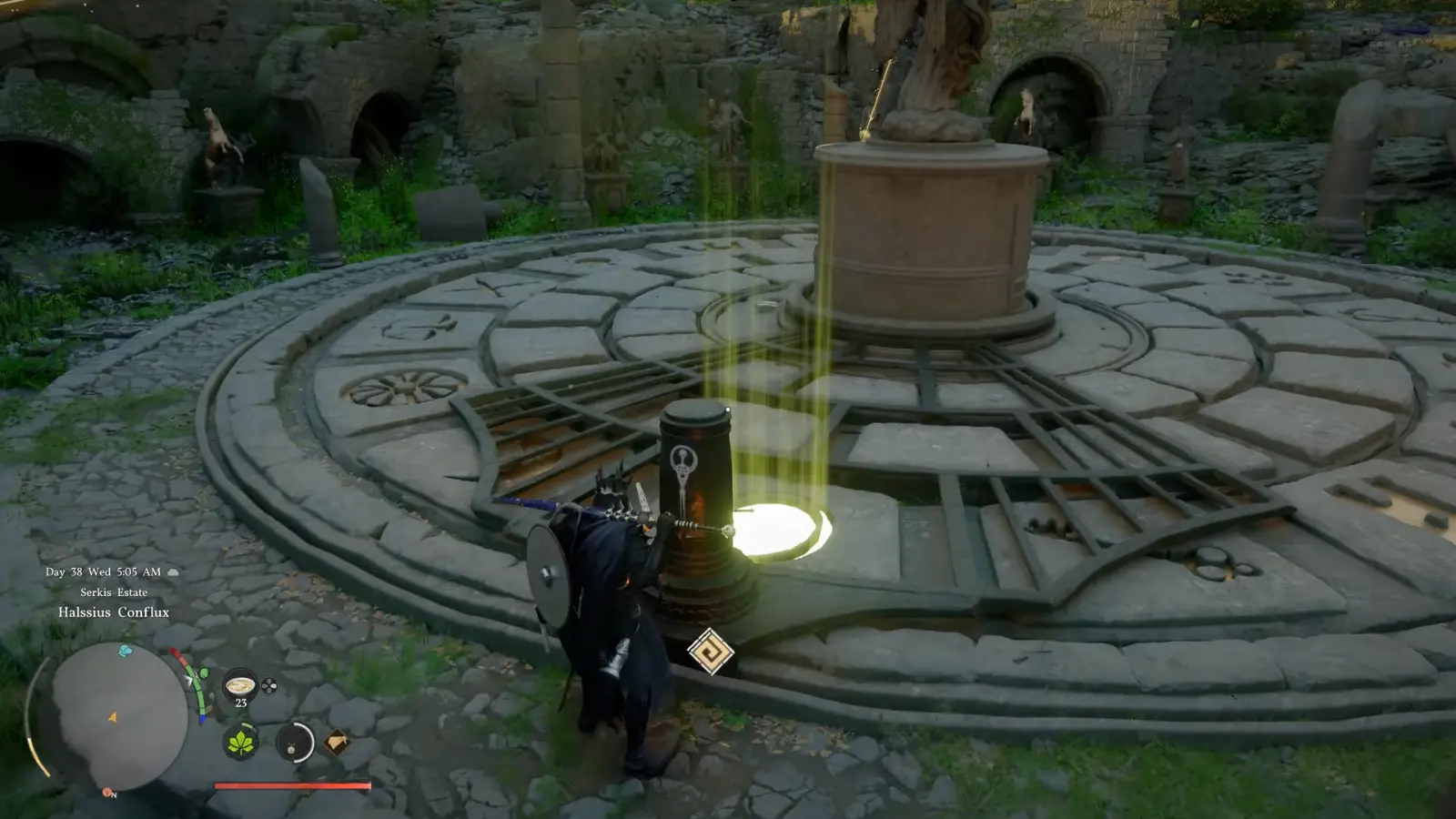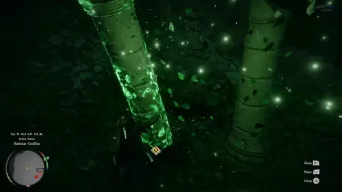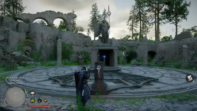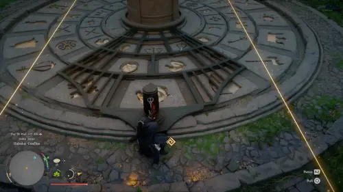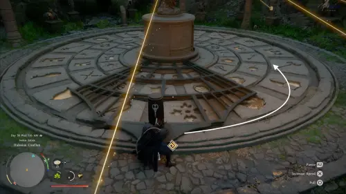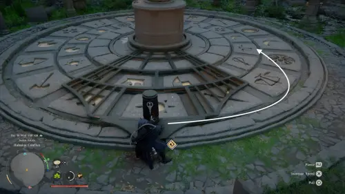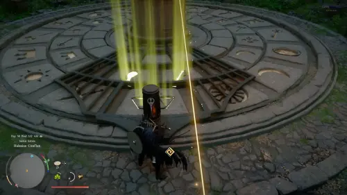 Ориентиром на карте служит зона, отмеченная знаком Таинственной энергии. Прибыв на место вы увидите алтарь с металлическим механизмом и каменными колоннами. Именно здесь начинается головоломка.