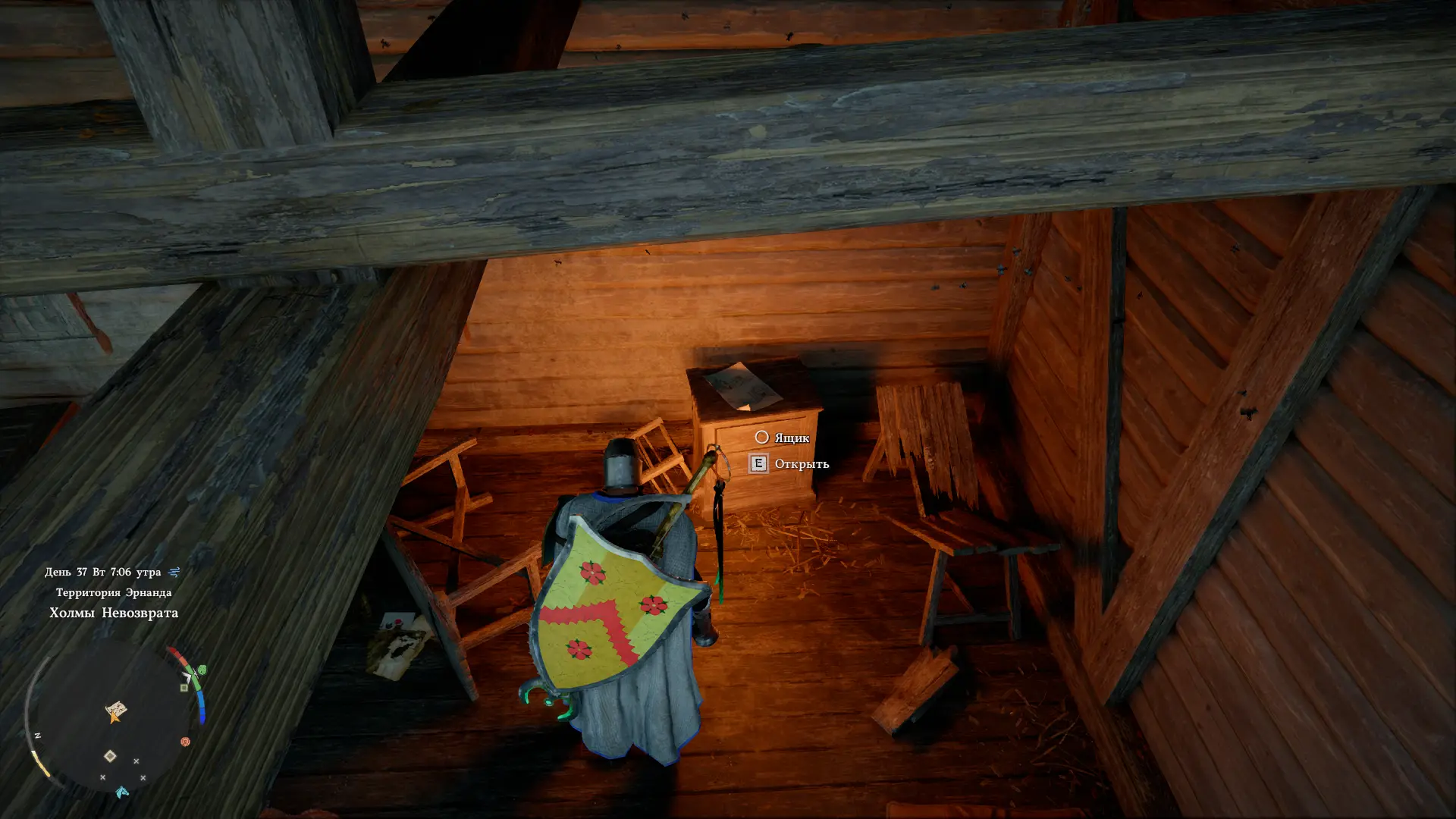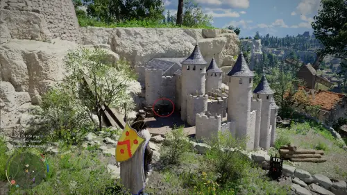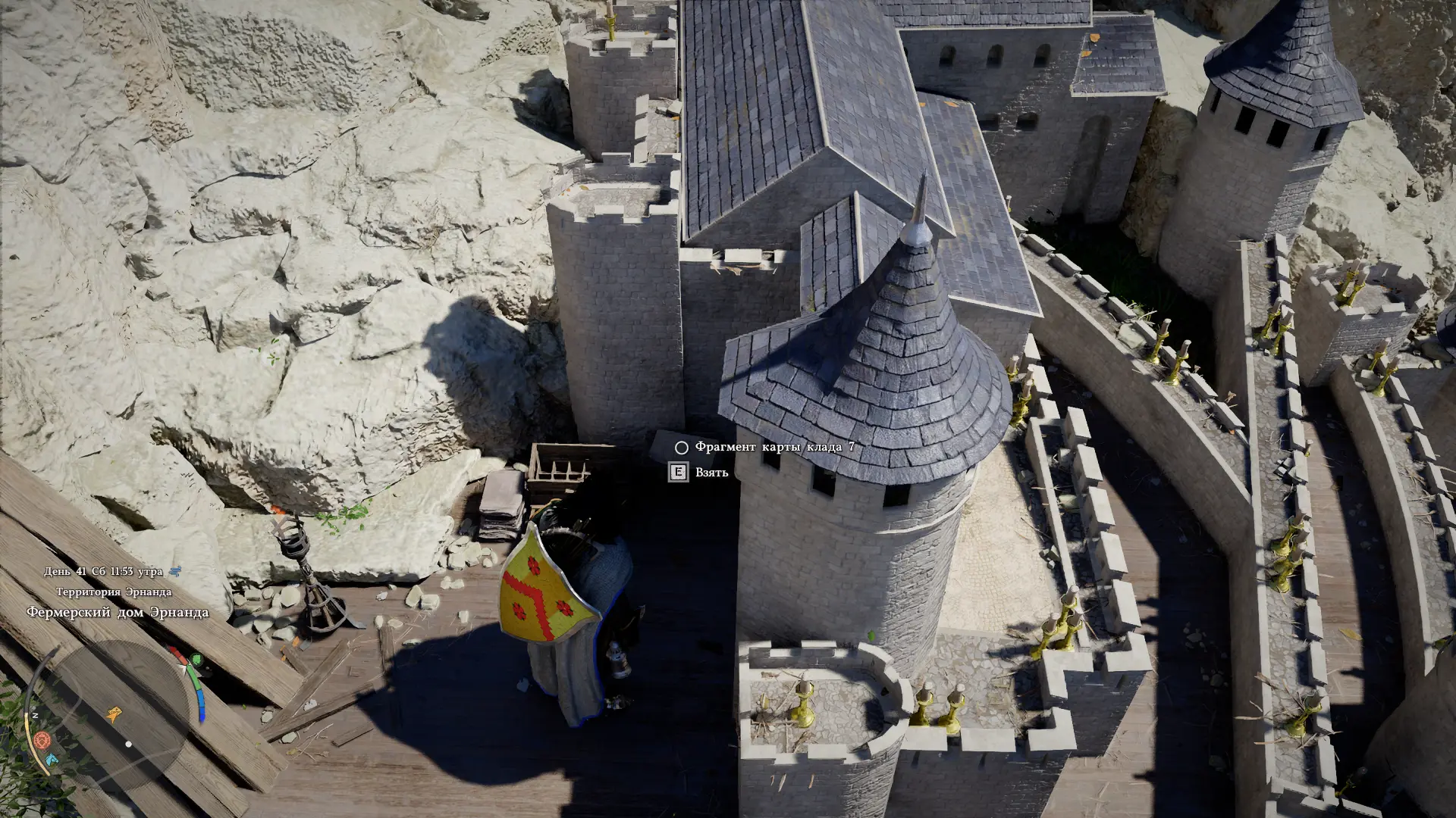 Если же вы решили в первую очередь получить карту, отправляйтесь за стены родного Эрнанда. Фрагмент карты находится справа от главных ворот. Спуститесь немного ниже по основной дороге к миниатюре замка. Там на стуле и будет лежать седьмой фрагмент карты клада. Расположение клада указано в нашем отдельном гайде.