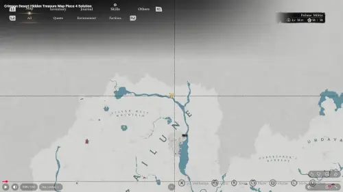Чтобы найти второй фрагмент карты, необходимо отправиться в северо-западный регион Деменисса – к Руинам Врат истины. В качестве ориентира используйте горную речку. Поднимайтесь по ее берегу вверх, а затем идите в сторону левого ответвления. В начале этого ответвления находится лестница, которая ведет к открытому саркофагу. Внутри него и находится фрагмент карты. Расположение клада указано в нашем отдельном гайде.